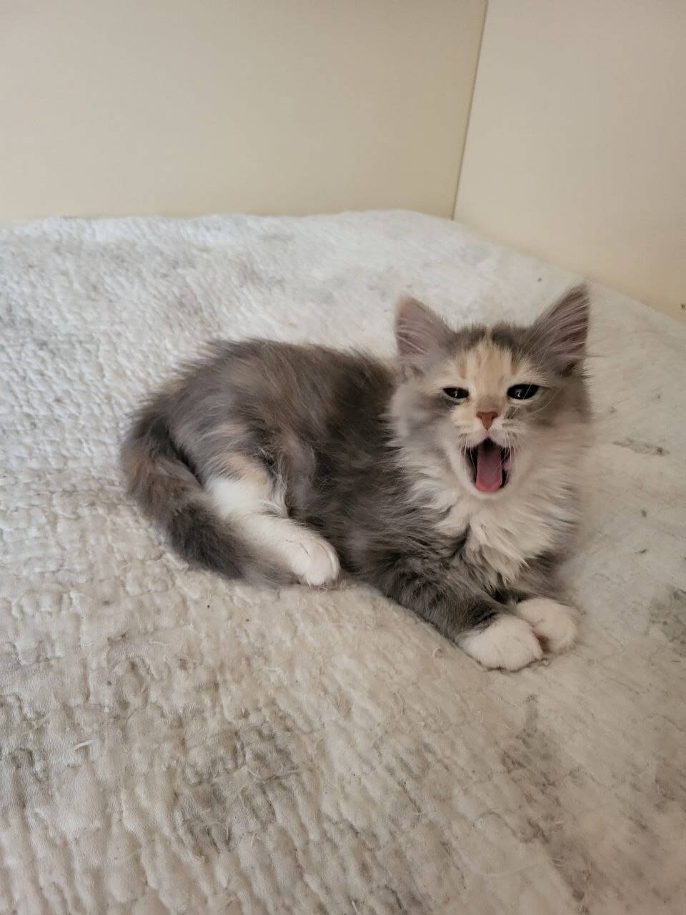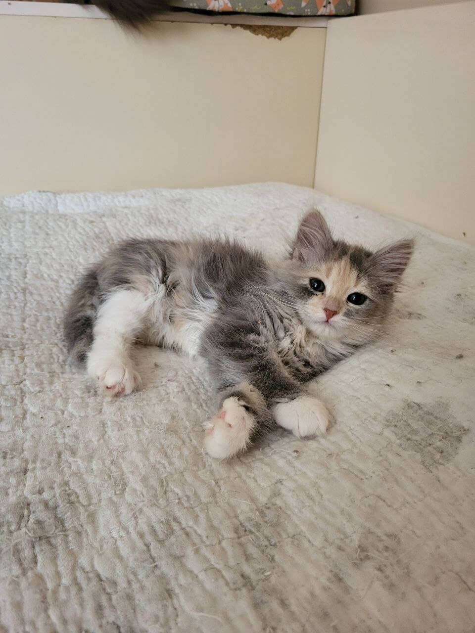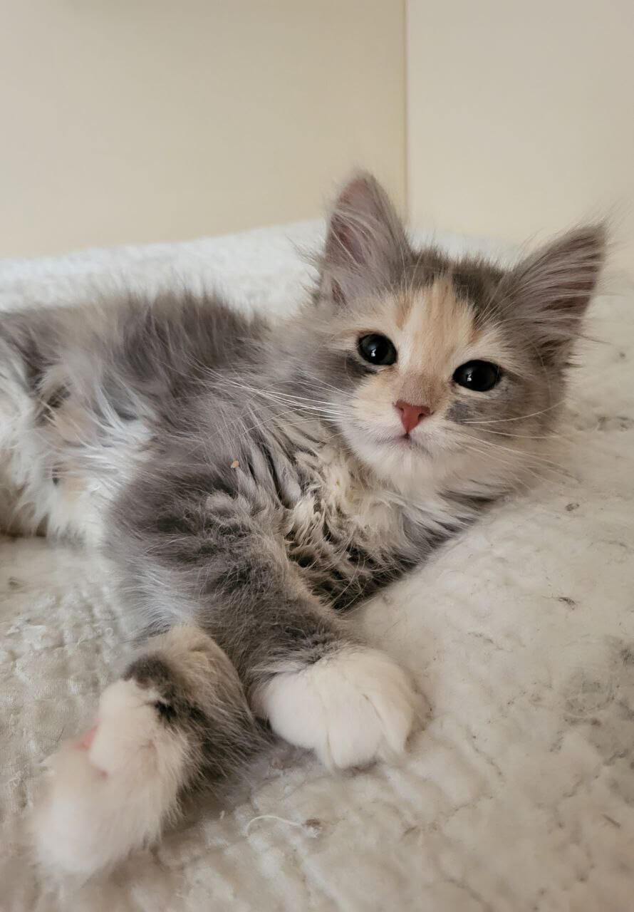 Meet Erin – a gentle dream wrapped in the softest blue tortie tabby fur, adorned with sparkling yellow eyes that shimmer with affection. The moment she nestles into your arms and begins her soothing purr, you’ll sense just how special she is—a comforting presence, ready to fill your days with warmth and sweet, playful magic.