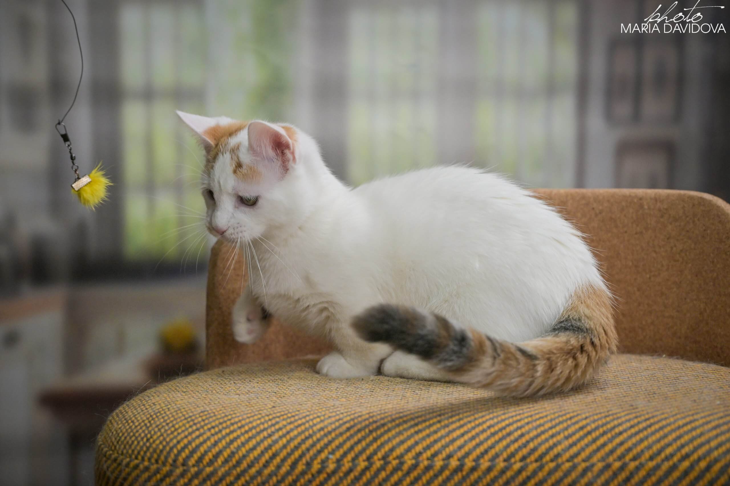 The moment you gaze into Esmina’s golden-yellow eyes, you’ll feel a gentle warmth bloom inside—she’s pure heart wrapped in a plush calico coat. This enchanting little lady is all about love and play: she dances on her dainty Munchkin paws, never missing a moment to curl in your lap, filling the room with her quiet purrs and comforting presence.