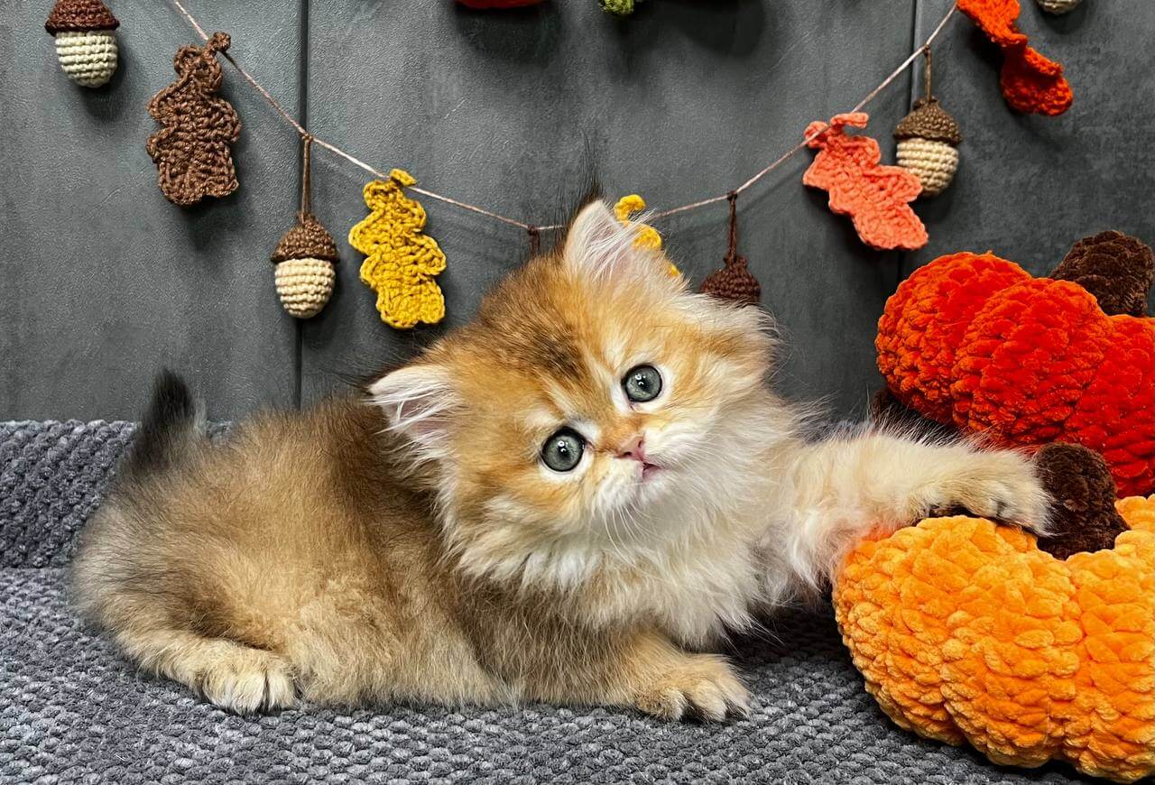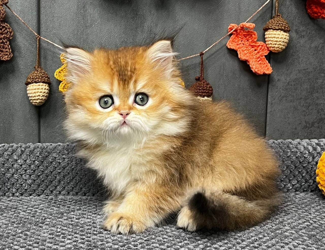 Meet Eva – your soon-to-be heart-stealer with an irresistible velvet-soft coat and luminous green eyes that promise to melt even the coldest day. This Scottish Fold girl is pure golden harmony: a black golden tabby ticked beauty who’ll curl into your arms, purring blissfully with every gentle touch.