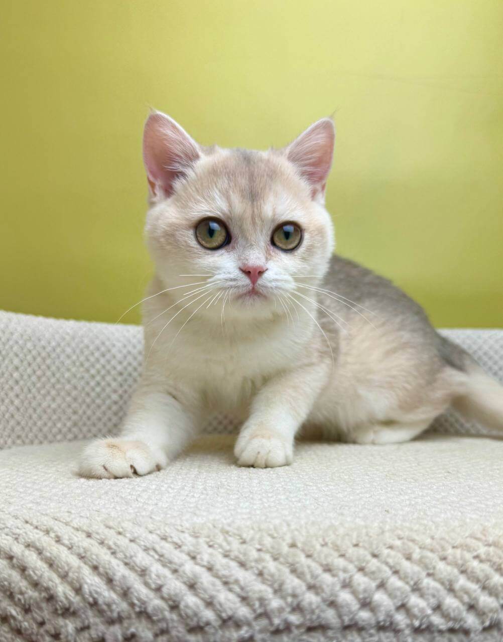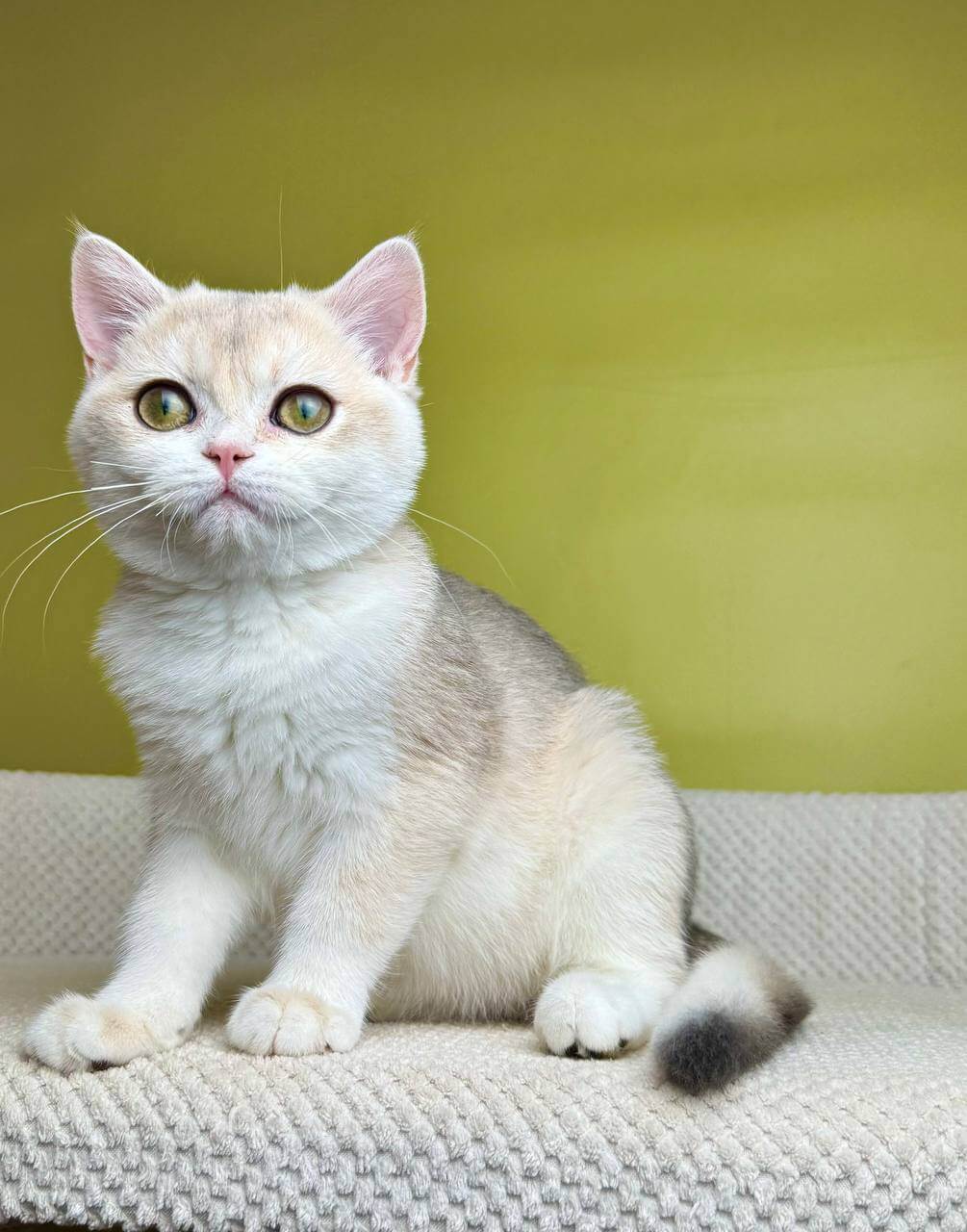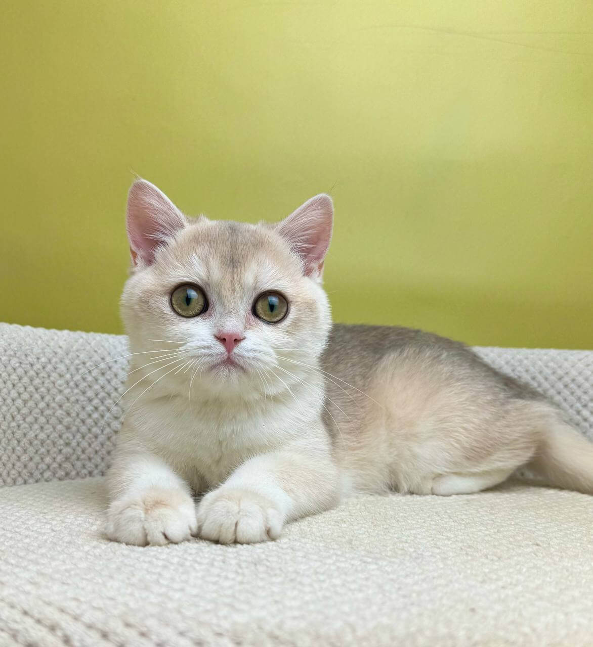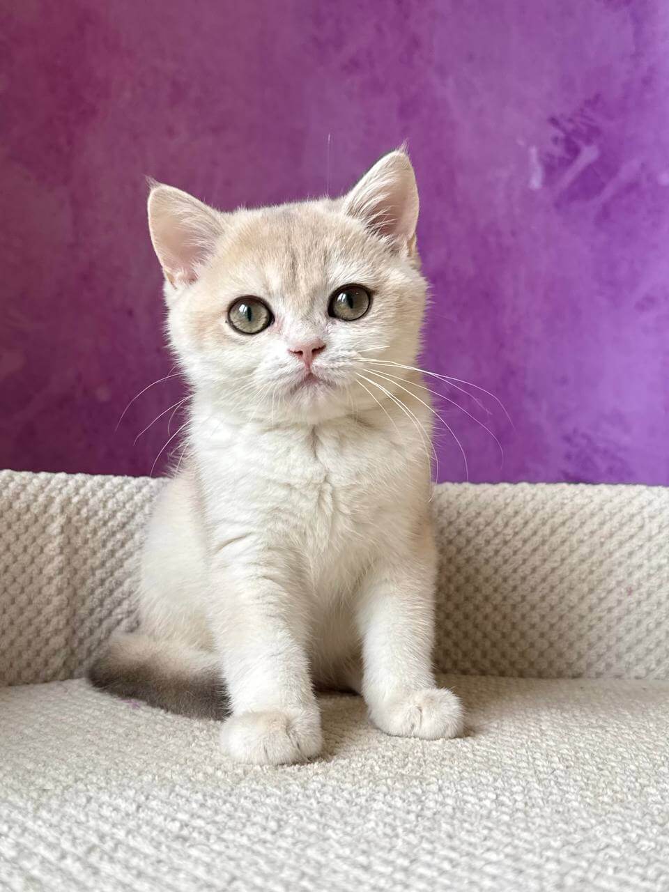 Meet Fabbi, a charming female British Shorthair with an exquisite blue golden shell coat and striking green eyes. Born on April 13, 2025, Fabbi boasts champion bloodlines and is of show quality, making her a perfect addition for those seeking a top-notch feline companion. She will be ready to leave her breeder’s care by August 13, 2025, and is located in Europe, with availability in the USA through reservation on our website.