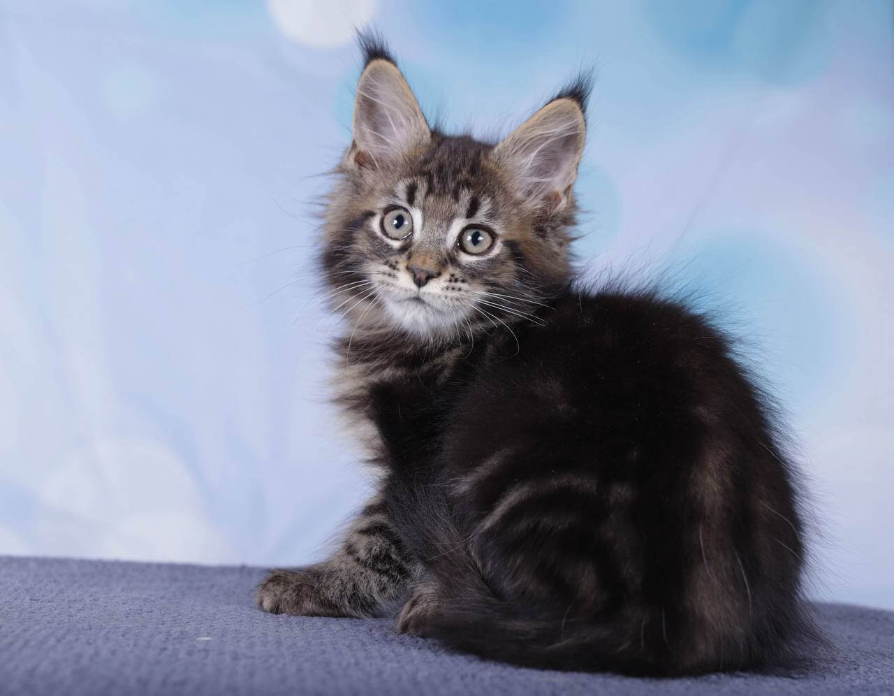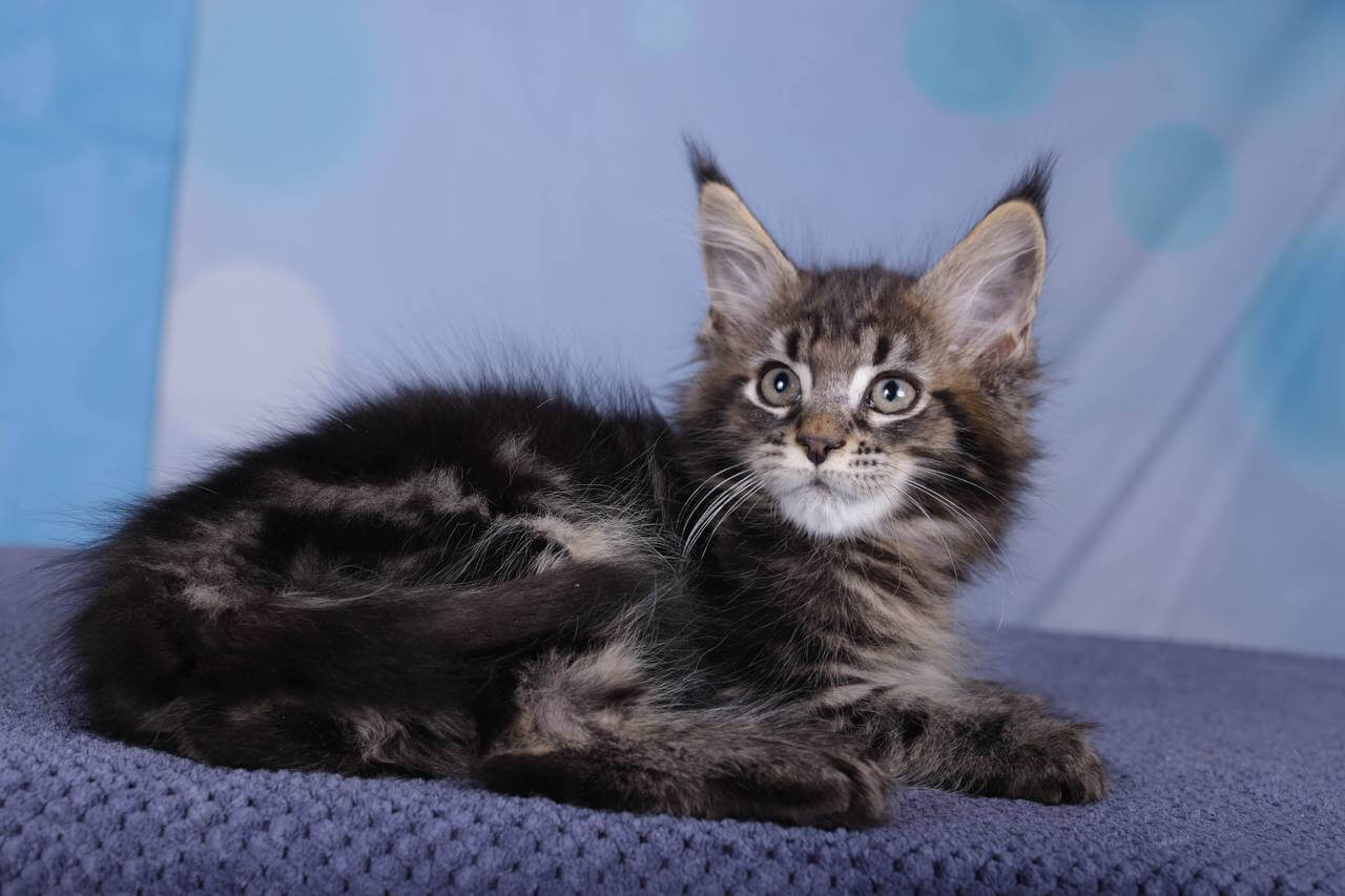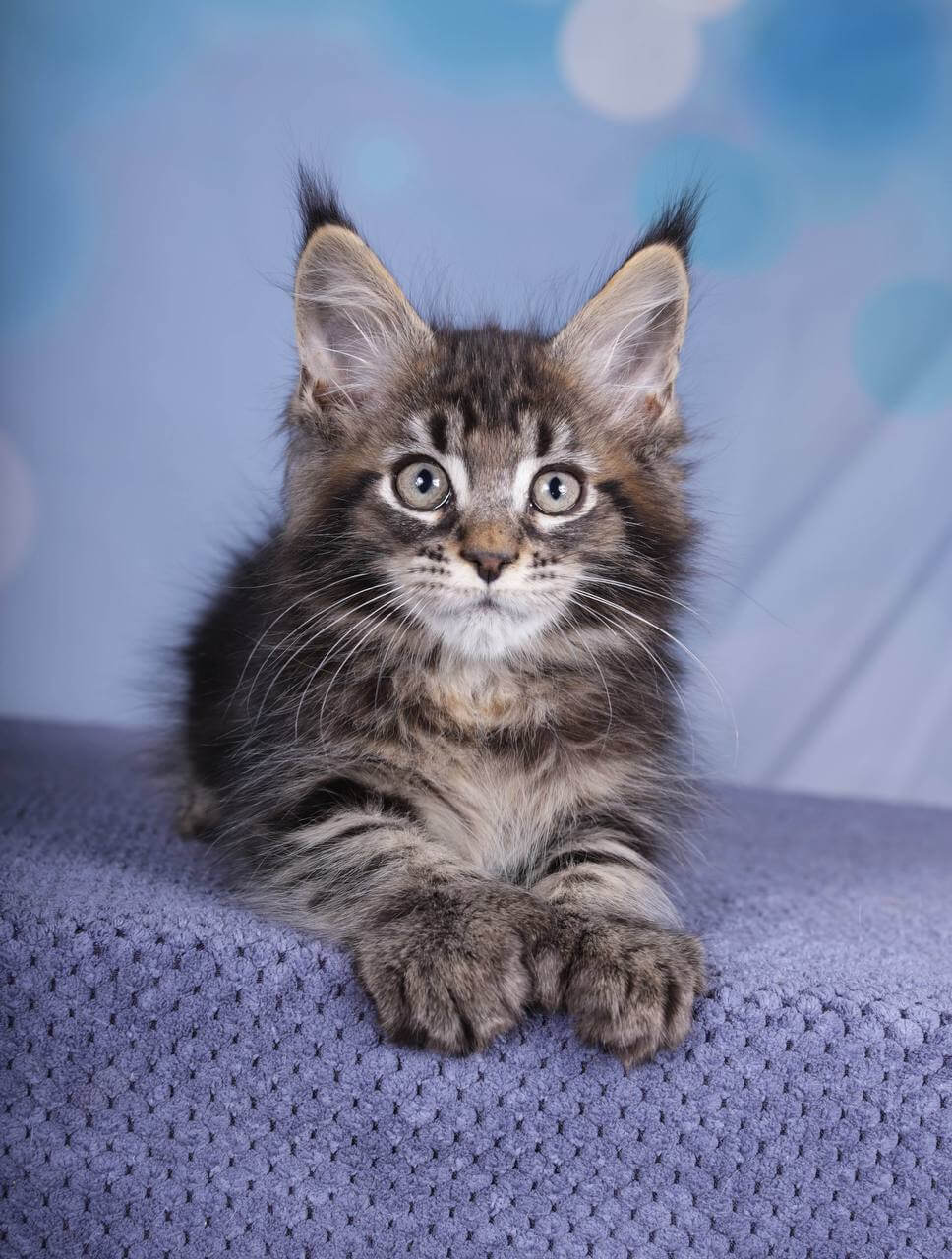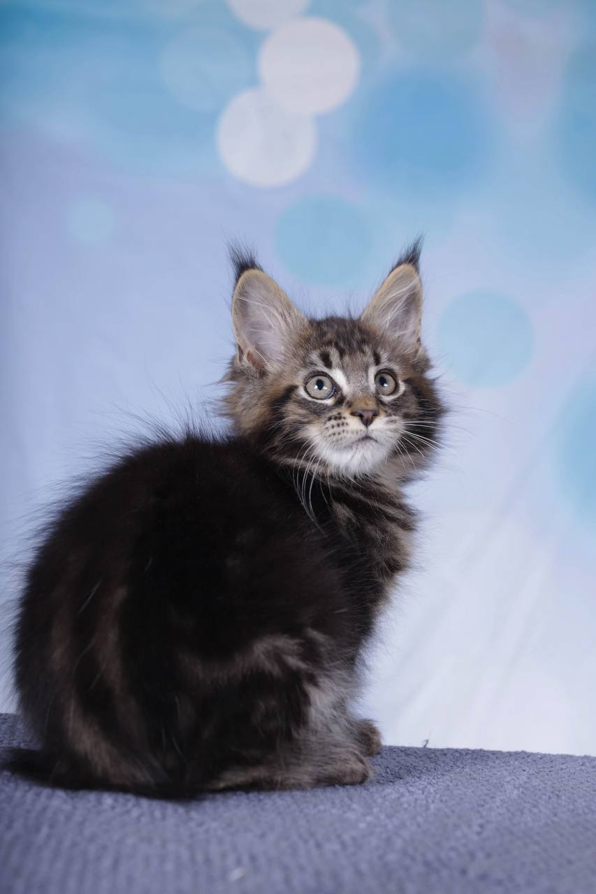 Meet Fabian, a stunning male Maine Coon with striking black tabby blotched markings and captivating yellow eyes. Born on August 22, 2025, Fabian is a show-quality kitten boasting champion bloodlines, perfect for those seeking an extraordinary feline companion. He is registered and available in Europe, and can be reserved for homes in the USA. Fabian will be ready to leave his breeder on December 22, 2025, and can be picked up at our Wood Dale, USA location, with delivery options available from Chicago to other states.