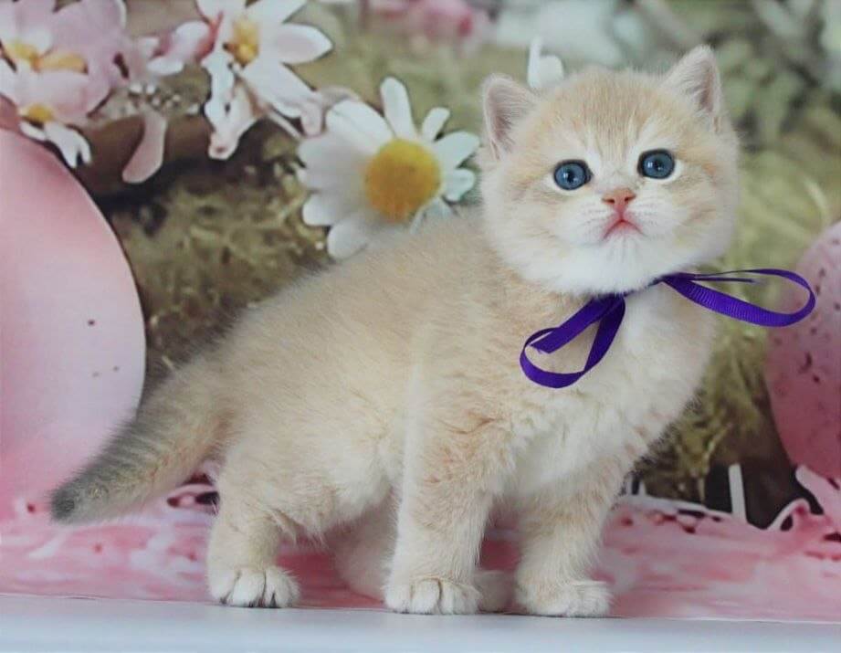 Faraon is a Blue Golden Shell British Shorthair kitten whose plush, silken coat glimmers under your touch, casting shades of pale gold over his sturdy frame. His vivid green eyes meet yours with gentle curiosity, their color deepening when sunlight filters through. Pick him up and you’ll feel the reassuring, velvety heft British Shorthairs are adored for.