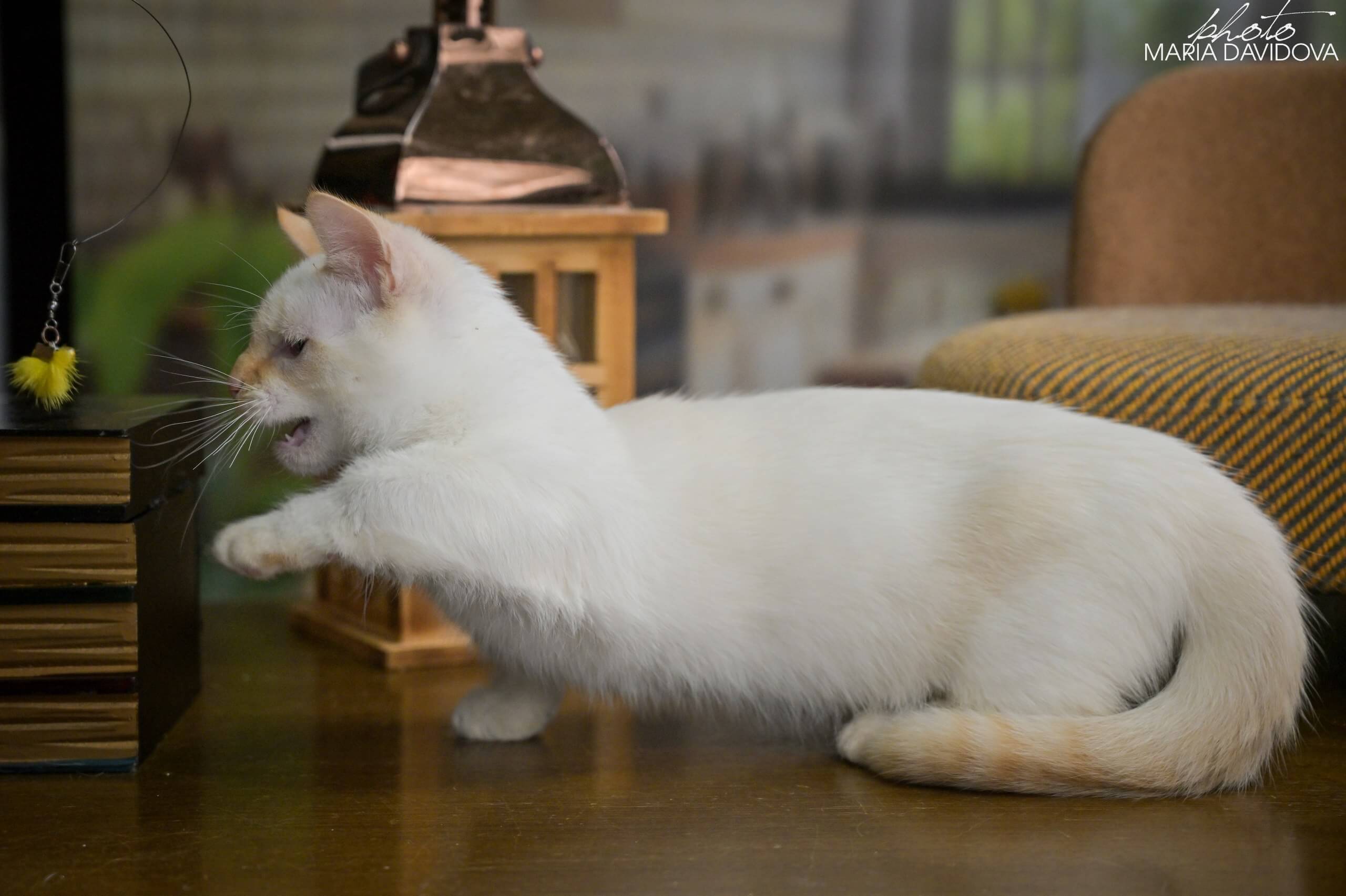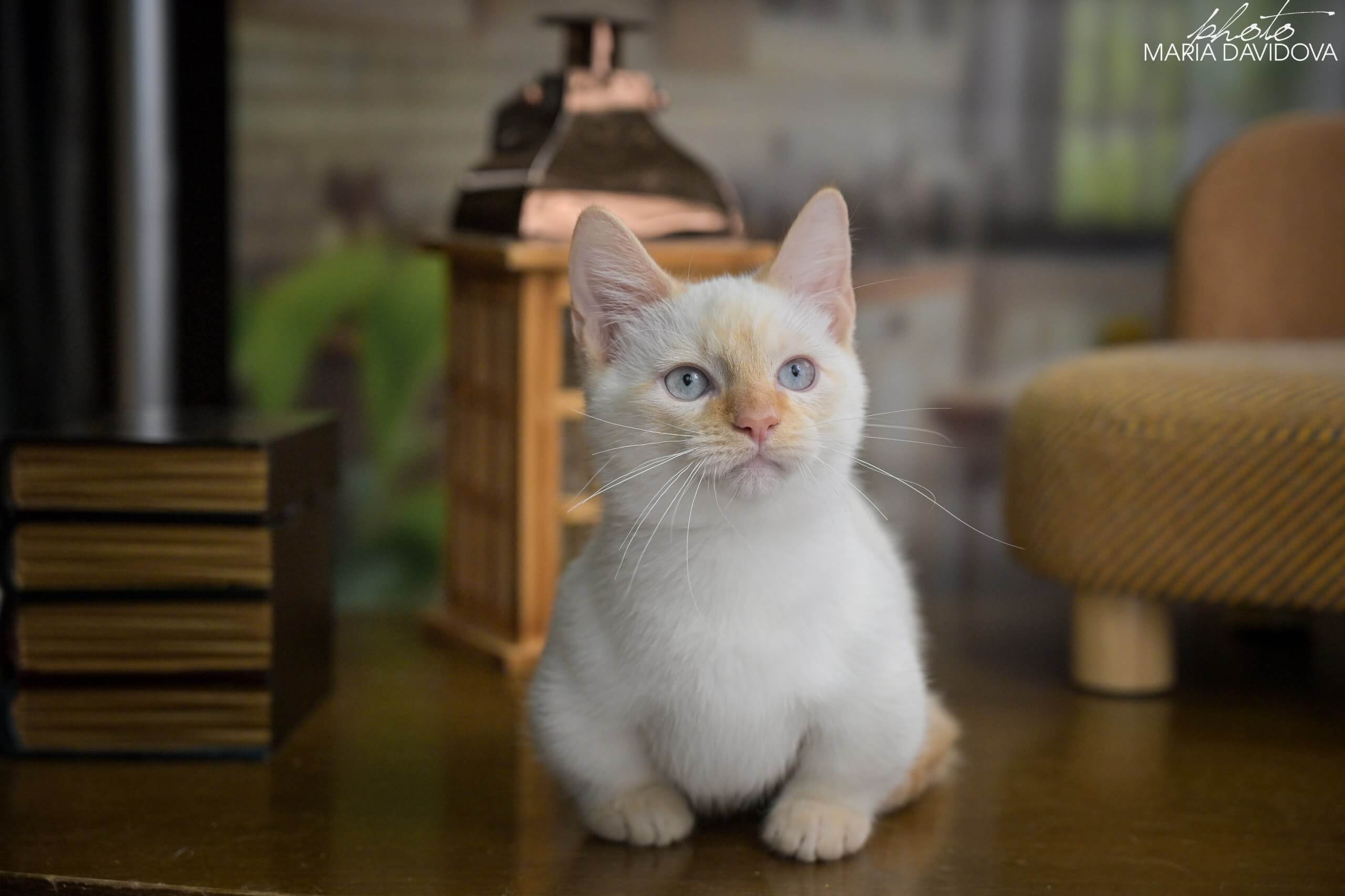 Farhad’s eyes, a mesmerizing shade of sky blue, sparkle with curiosity and warmth. He’s a gentle, playful spirit: quick to explore a sunbeam or nuzzle into your hand, happiest when being cradled close. Farhad’s champion bloodlines shine through in his elegant look and confident, loving temperament—this boy is destined for show-stopping beauty and a lifetime of devotion.