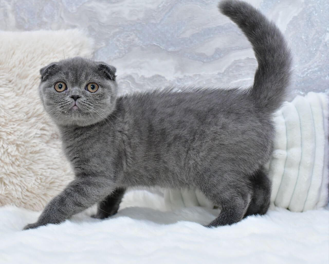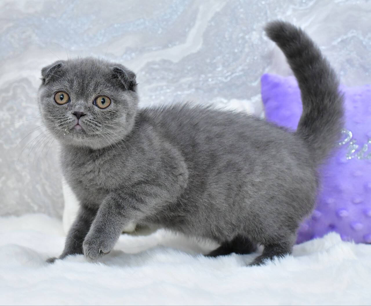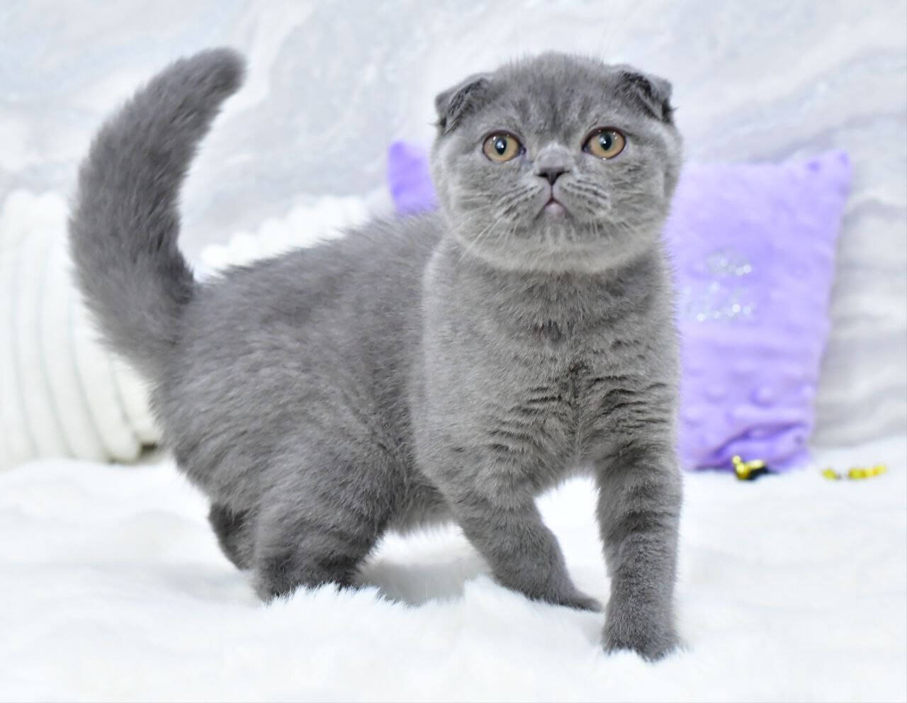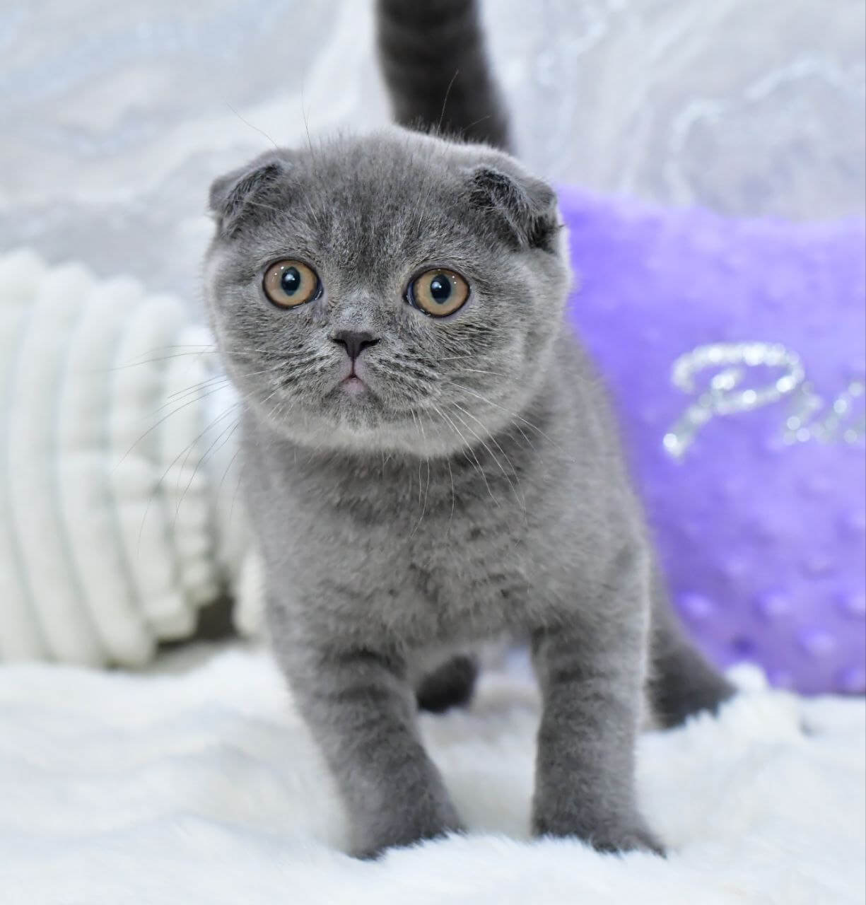 Meet Farik, an adorable male Scottish Fold with an enchanting blue coat and striking yellow eyes. Born on July 5, 2025, this show-quality kitten boasts champion bloodlines and is ready to become a beloved member of your family on November 5, 2025. Available by reservation on our website, Farik can be picked up at our location in Wood Dale, USA, or delivered to other states from Chicago.