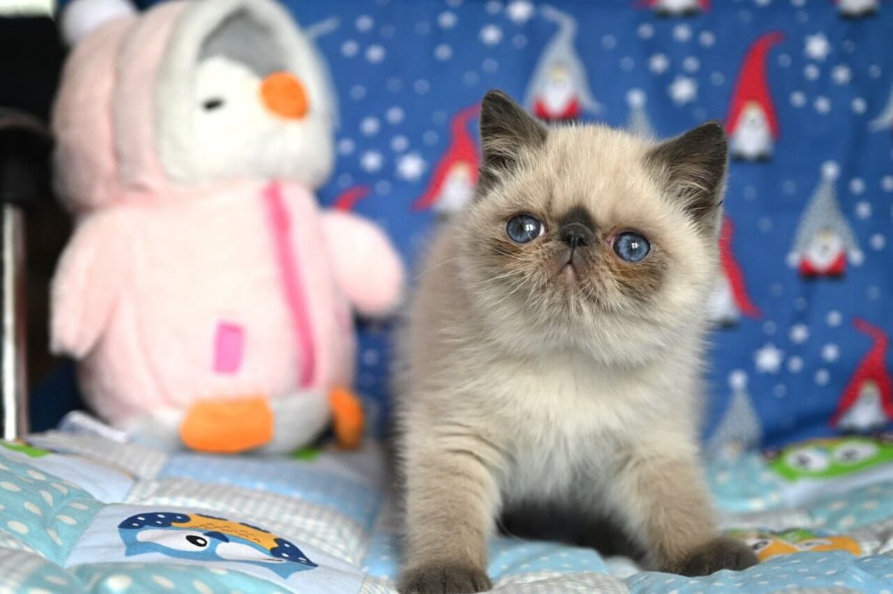 Meet Fester – a plush, blue-eyed wonder waiting to warm your world with his gentle purrs and soft snuggles. One look into his dreamy sapphire eyes and you’ll find your heart instantly captivated by his sweet charm and velvety Blue Point coat.