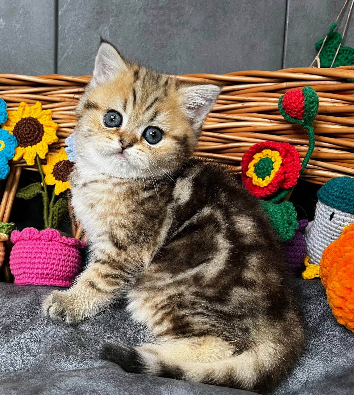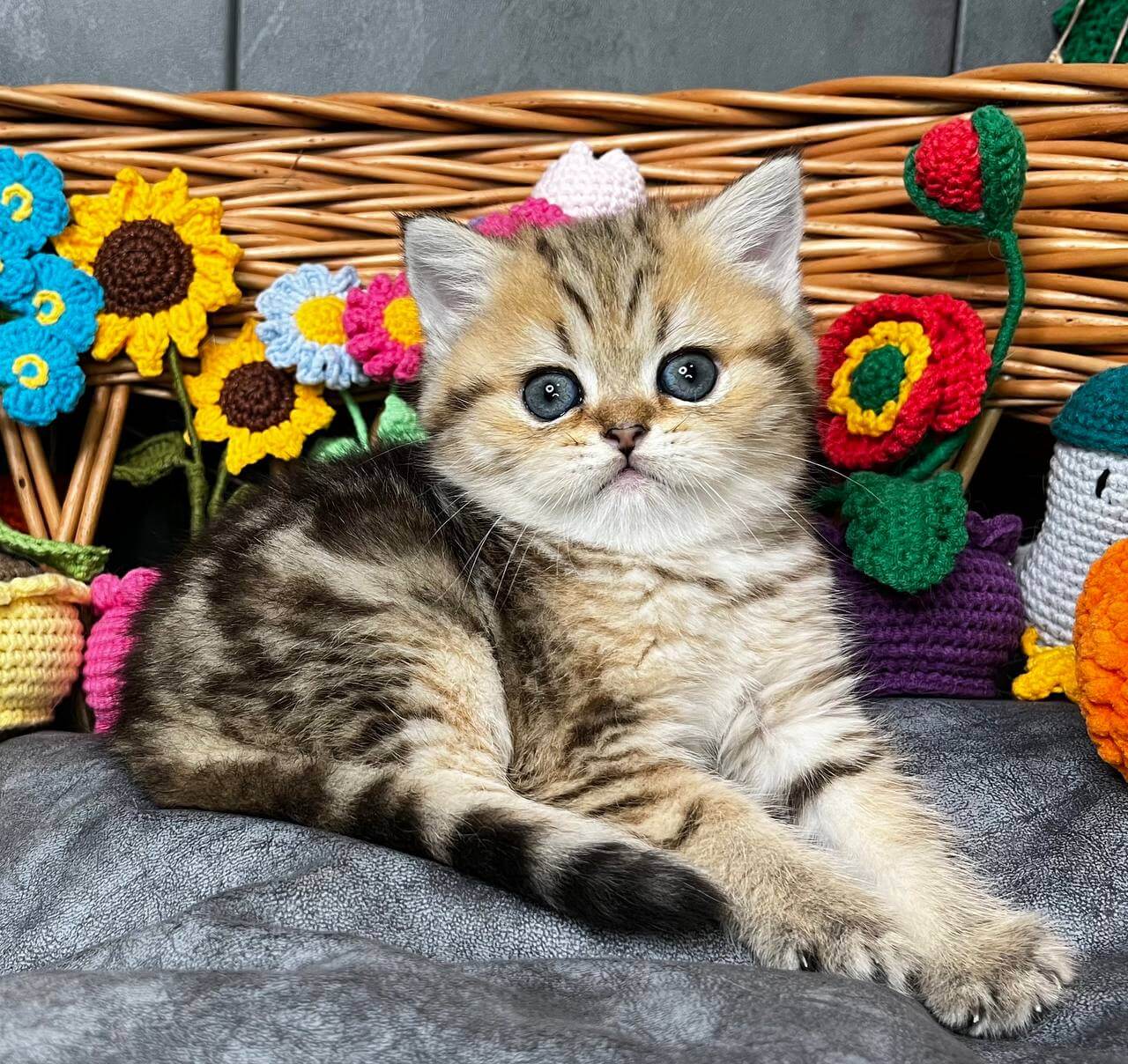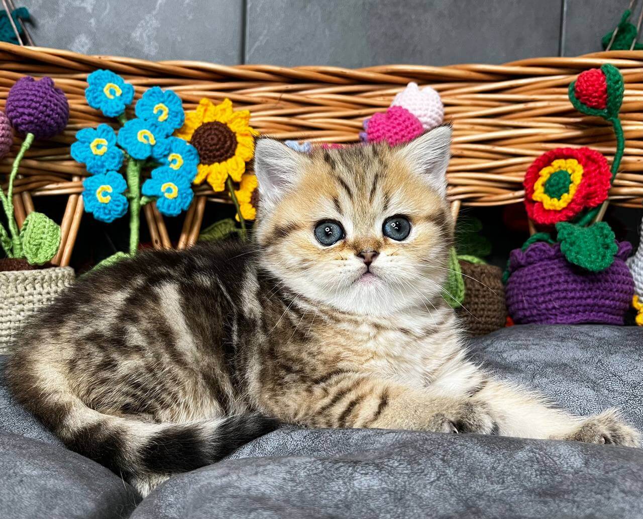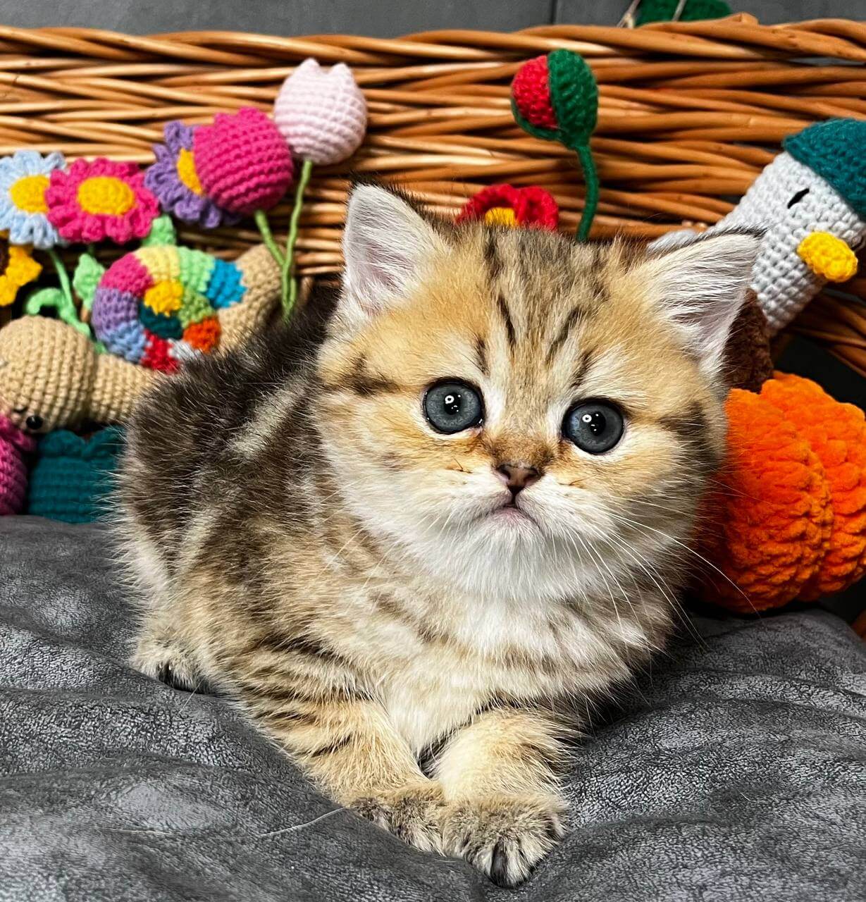 Meet Fiona, our enchanting Scottish Fold princess, looking for her forever home—a cuddle waiting to happen from the moment you meet her. Fiona’s fur is a mesmerizing black golden tabby blotched, while her gentle, round green eyes seem to promise every purr will be for you alone.