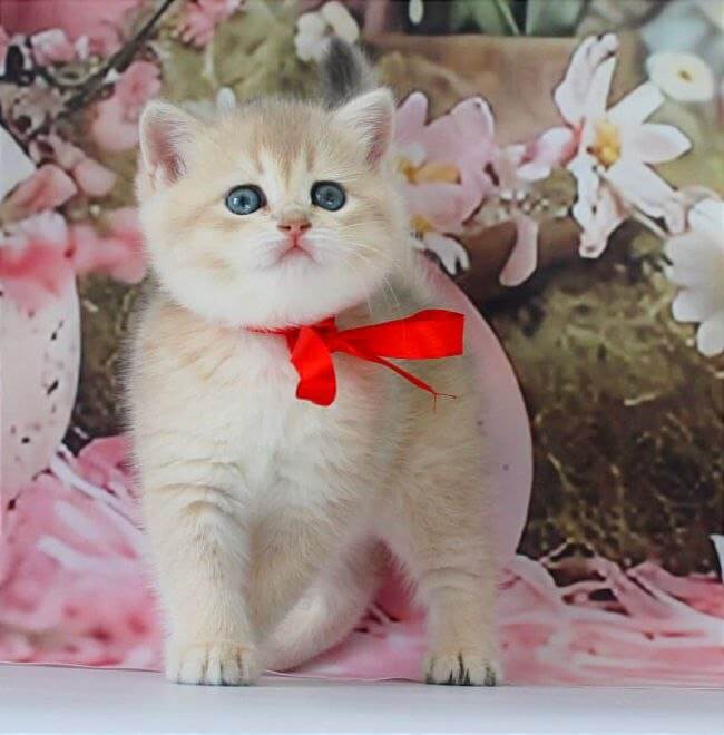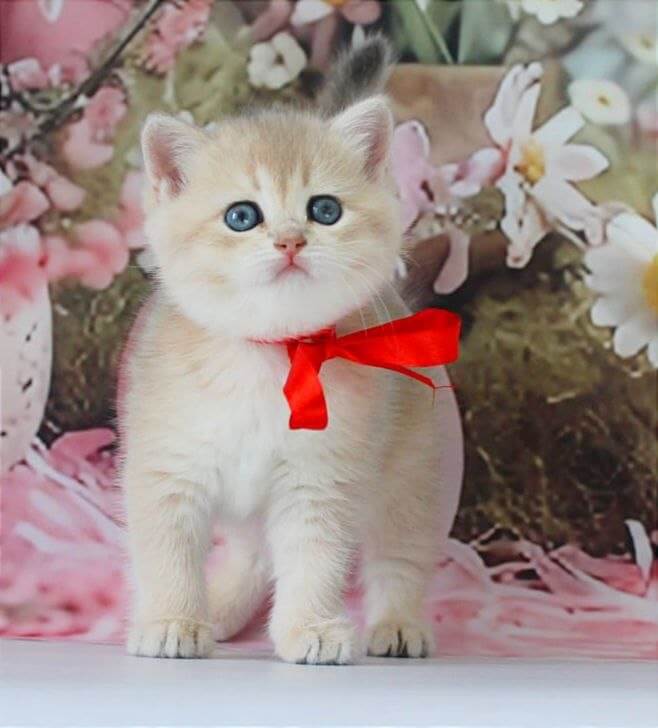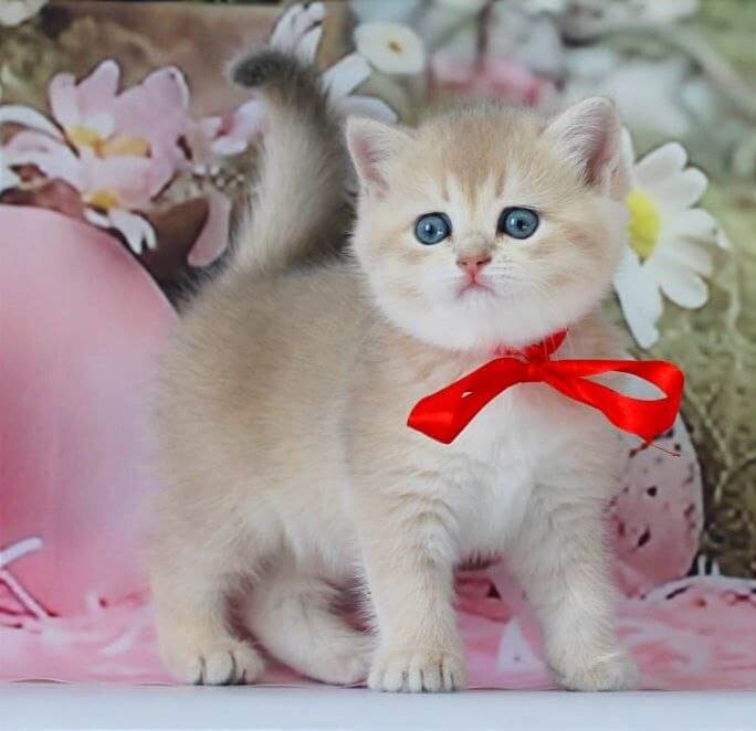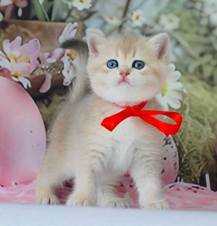 Cradling Flora, a Blue Golden Shaded British Shorthair kitten, is an experience you’ll never forget—her plush, silken coat wraps softly around your fingers while her vivid green eyes shimmer with gentle affection. The delicate gold dusting on her fur glows in the sunlight, and she presses her curious nose into your palm as if asking for one more stroke.