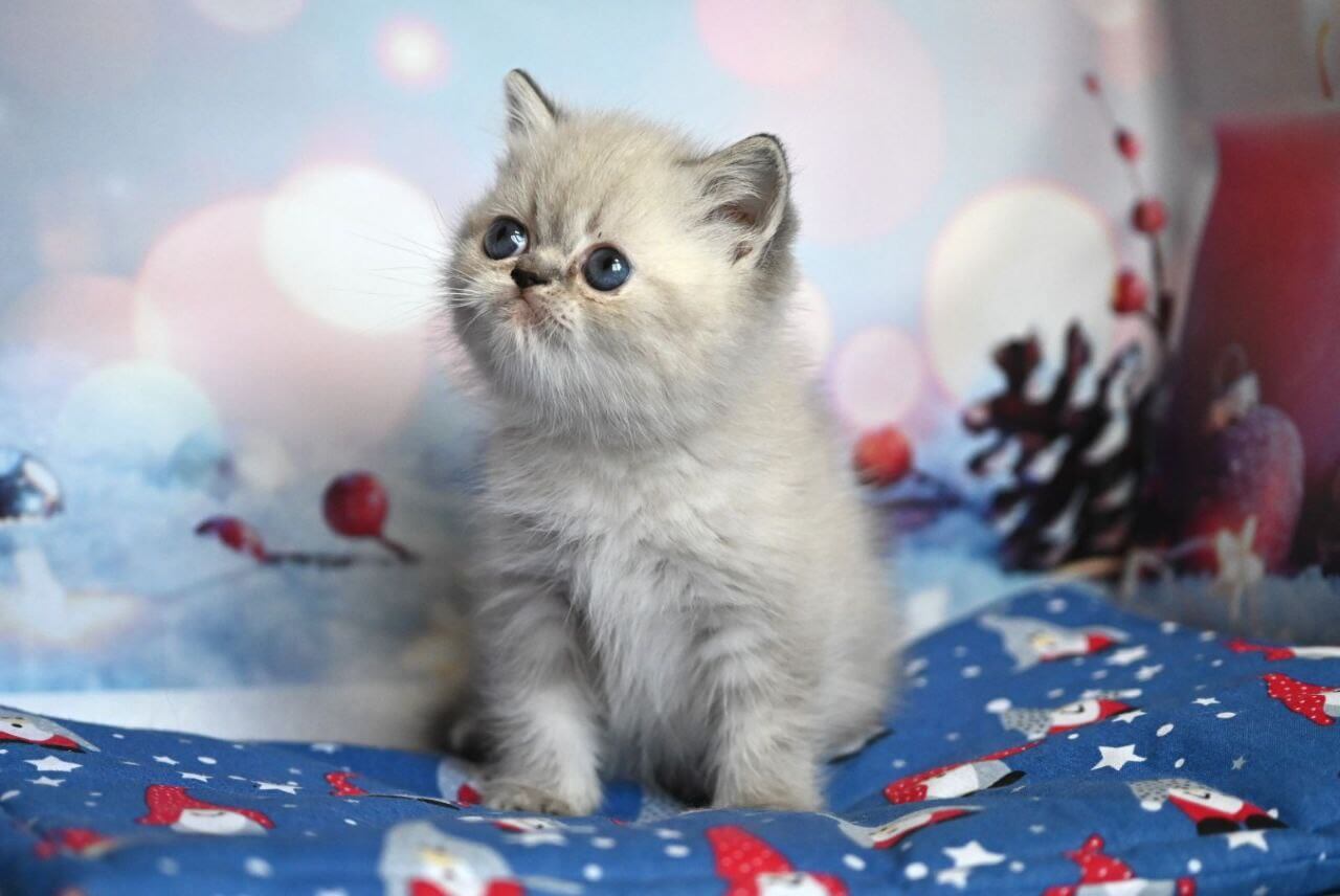 From the moment Fred sets his gentle blue eyes on you, he wraps your heart in a wave of warmth and quiet joy. This charming boy is a pure delight—playful yet composed, with a coat as soft as a loving caress and the sort of purr that soothes your soul after a long day.