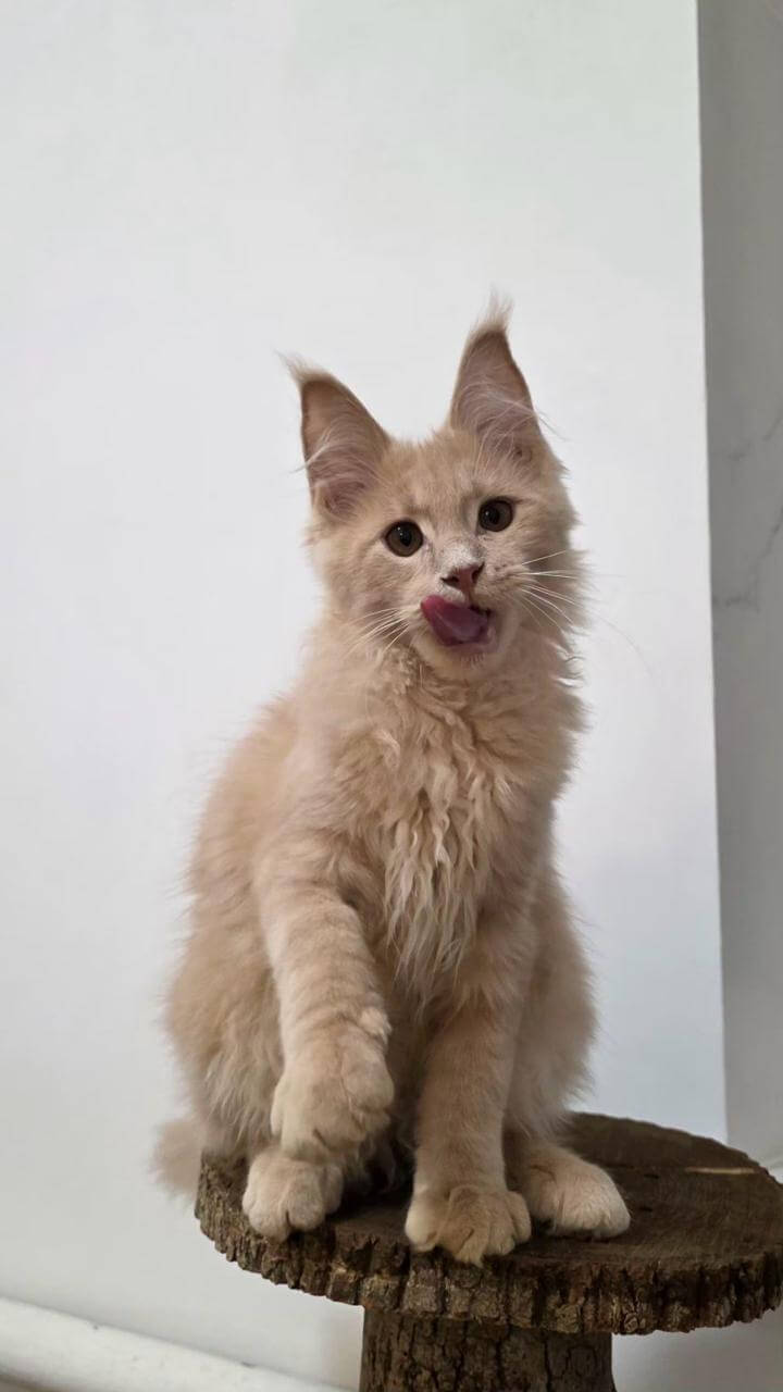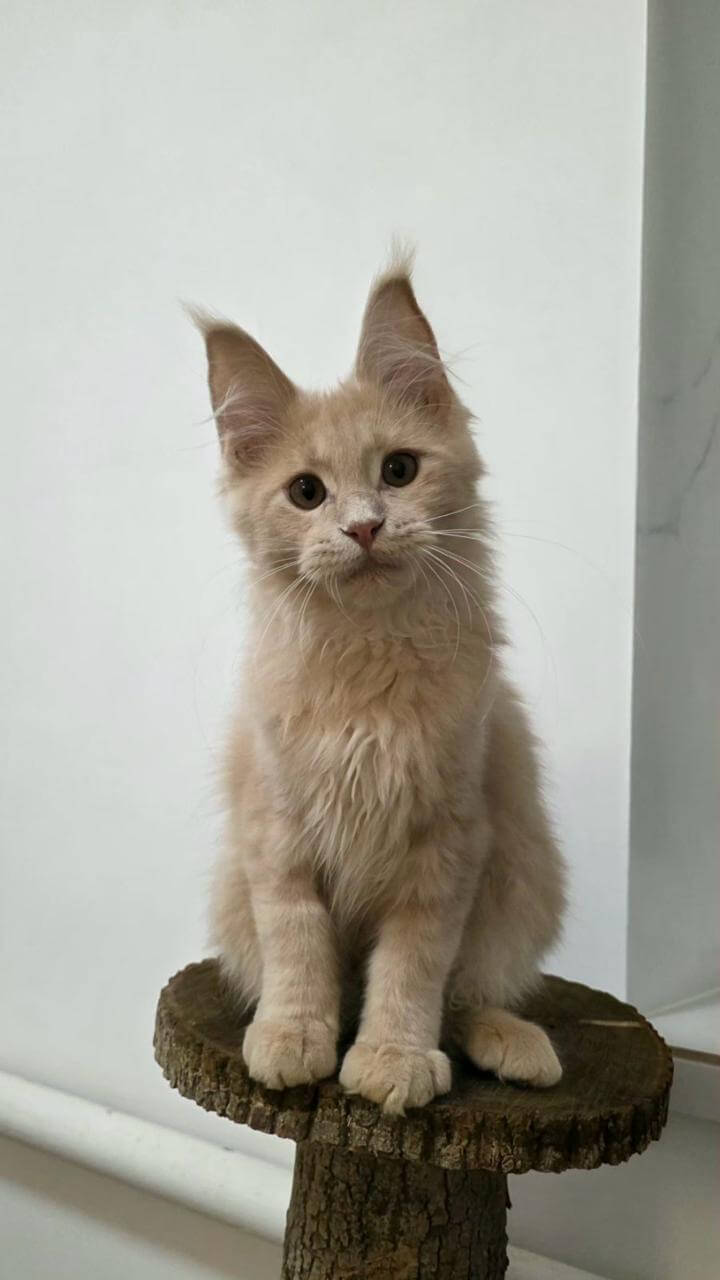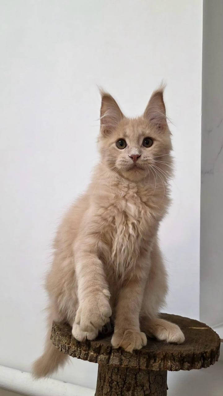 As a show quality Cream Maine Coon with champion bloodlines, Fred is WCF registered and raised with extraordinary attention. He’s fully socialized, vet-checked, and vaccinated, so you’ll have peace of mind from day one. Fred is already accustomed to wood pellet litter, making adoption seamless. Meowoff.com offers 7-day support to ensure Fred’s transition into your family is as gentle as his touch.