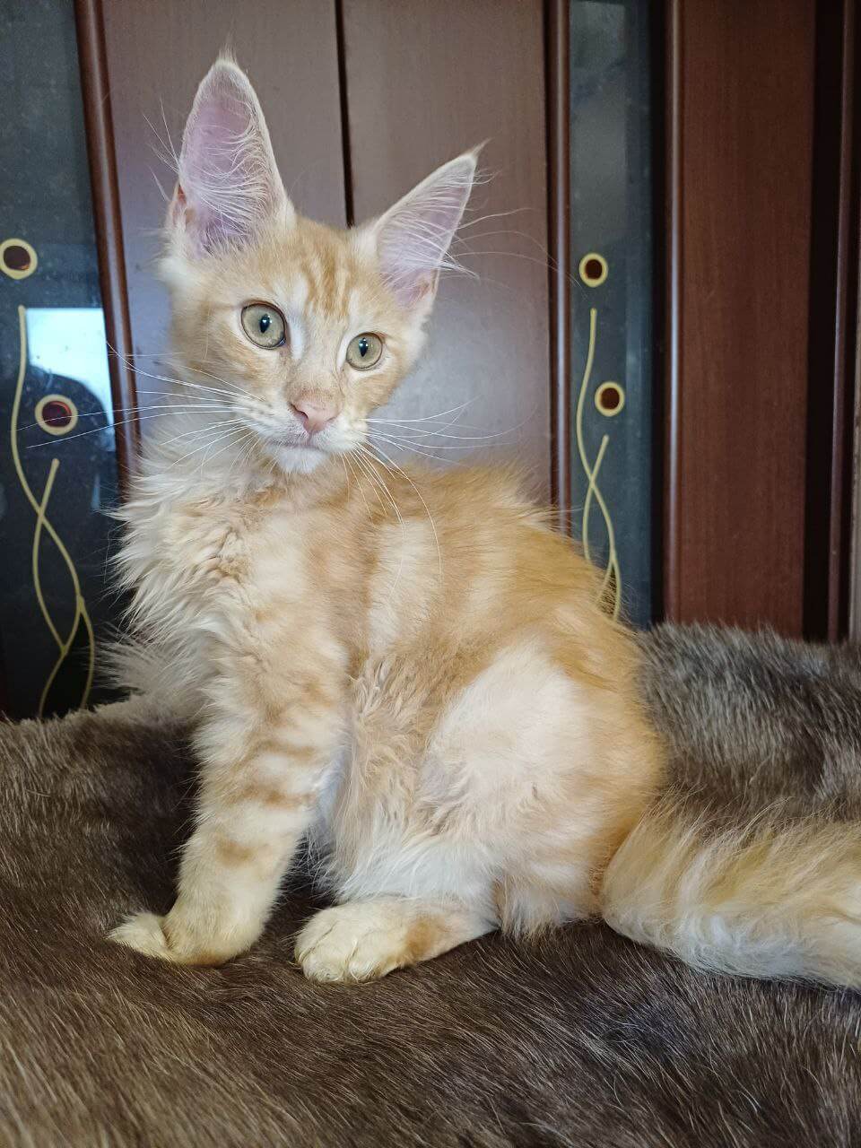 Meet Garfild, a captivating red Maine Coon boy whose golden-yellow eyes promise endless warmth and wonder. From the first gentle brush of his silky fur to his bright, inquisitive gaze, Garfild wraps you in comfort and affection—ready to purr beside you through every quiet moment at home.