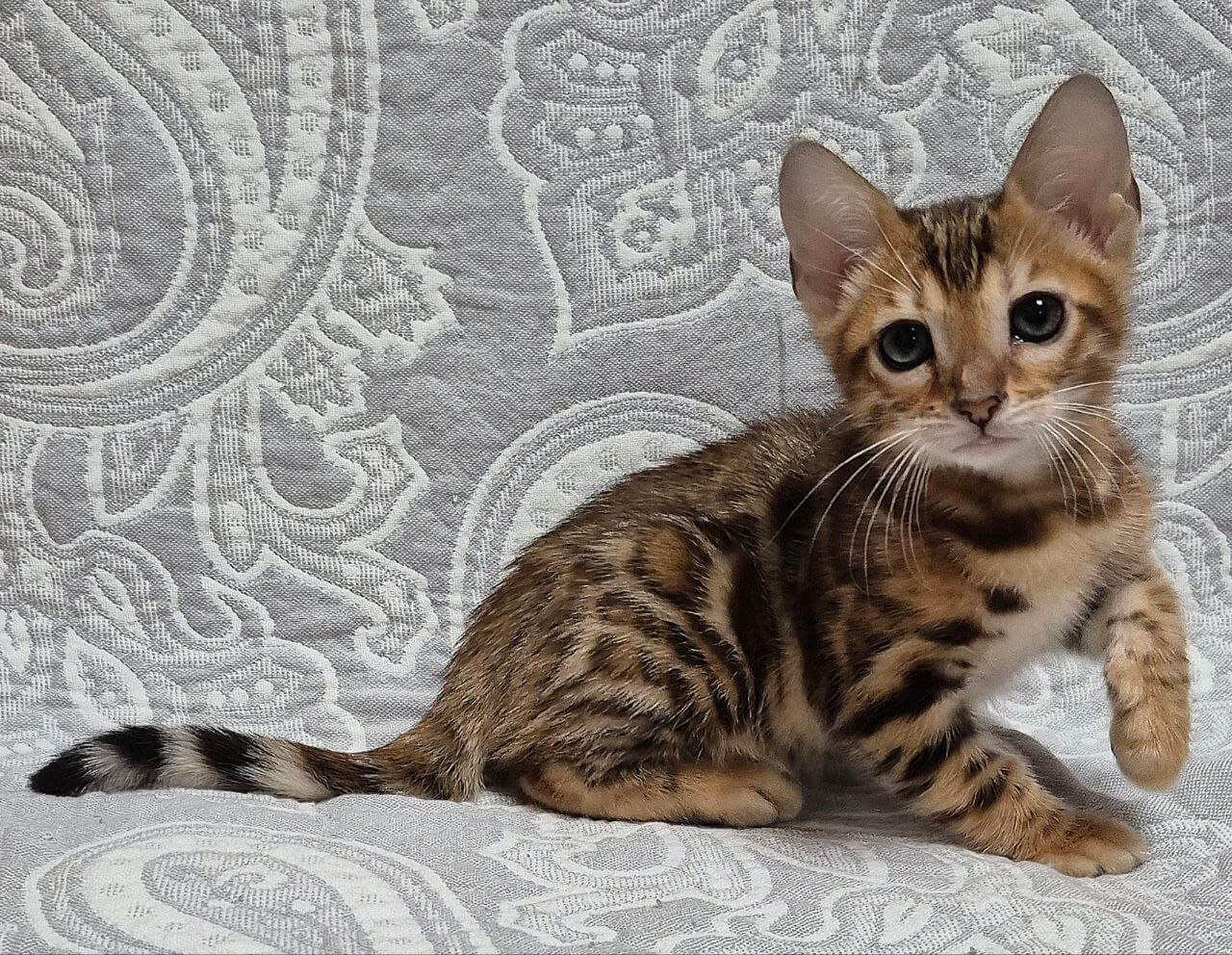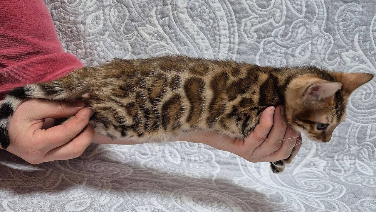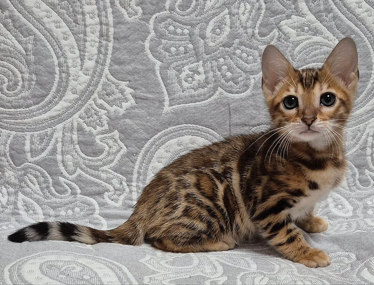 Meet Gina – the black-spotted beauty who will instantly capture your heart with her loving purrs and luminous golden eyes. Her soft, velvety fur is as enchanting as her gentle temperament: playful, smart, and ready to curl up in the crook of your arm for cozy, peaceful naps.
