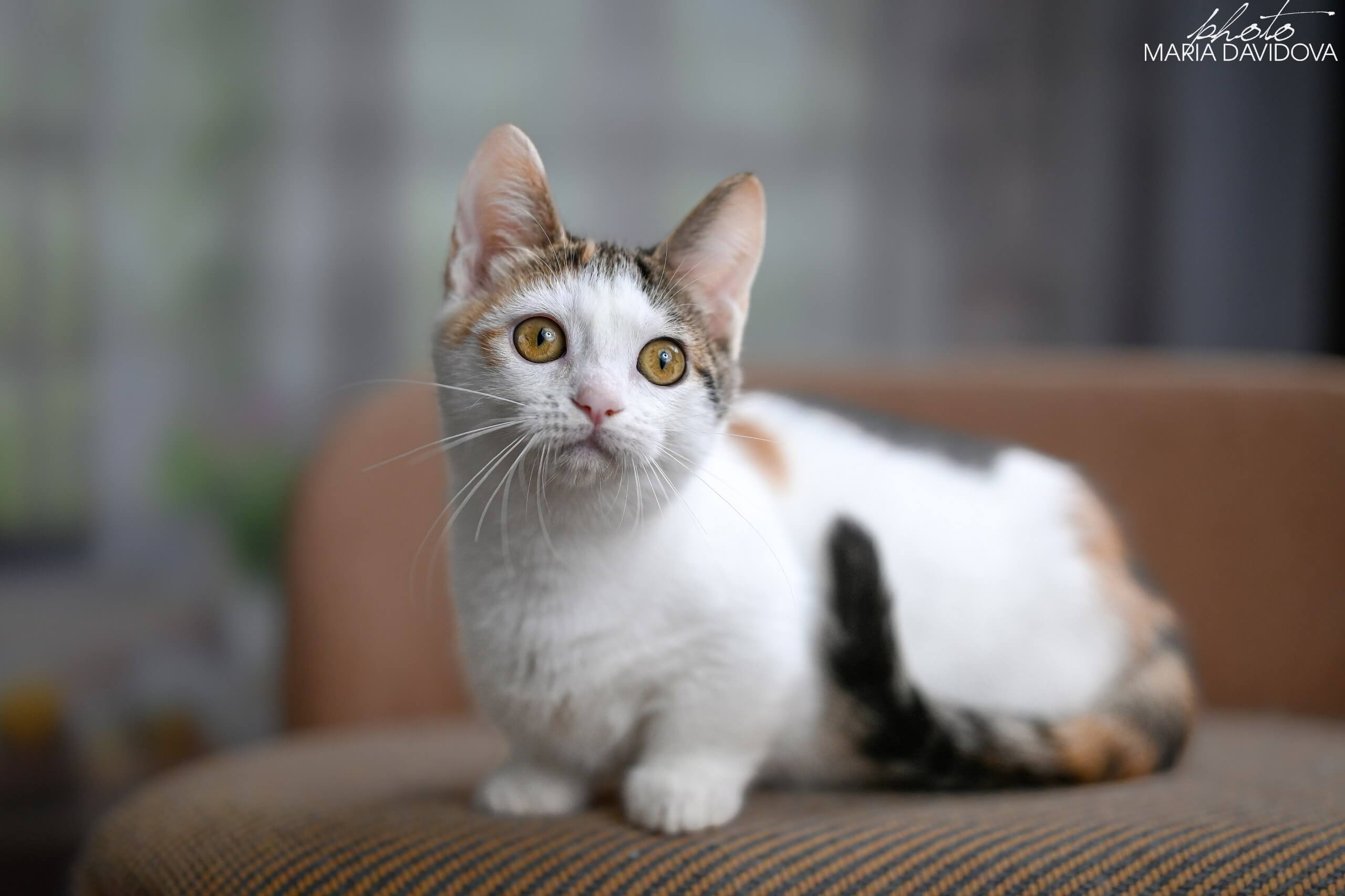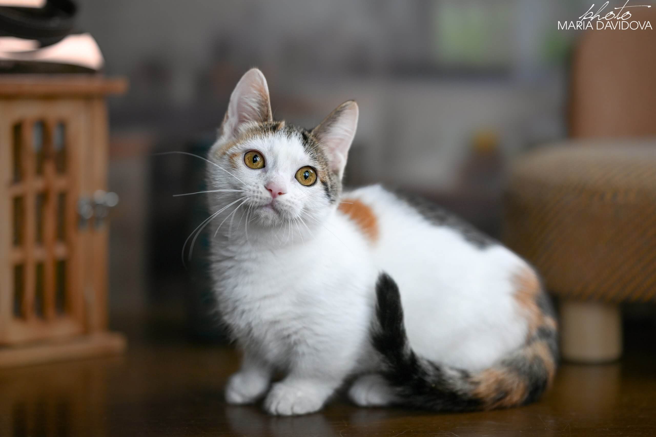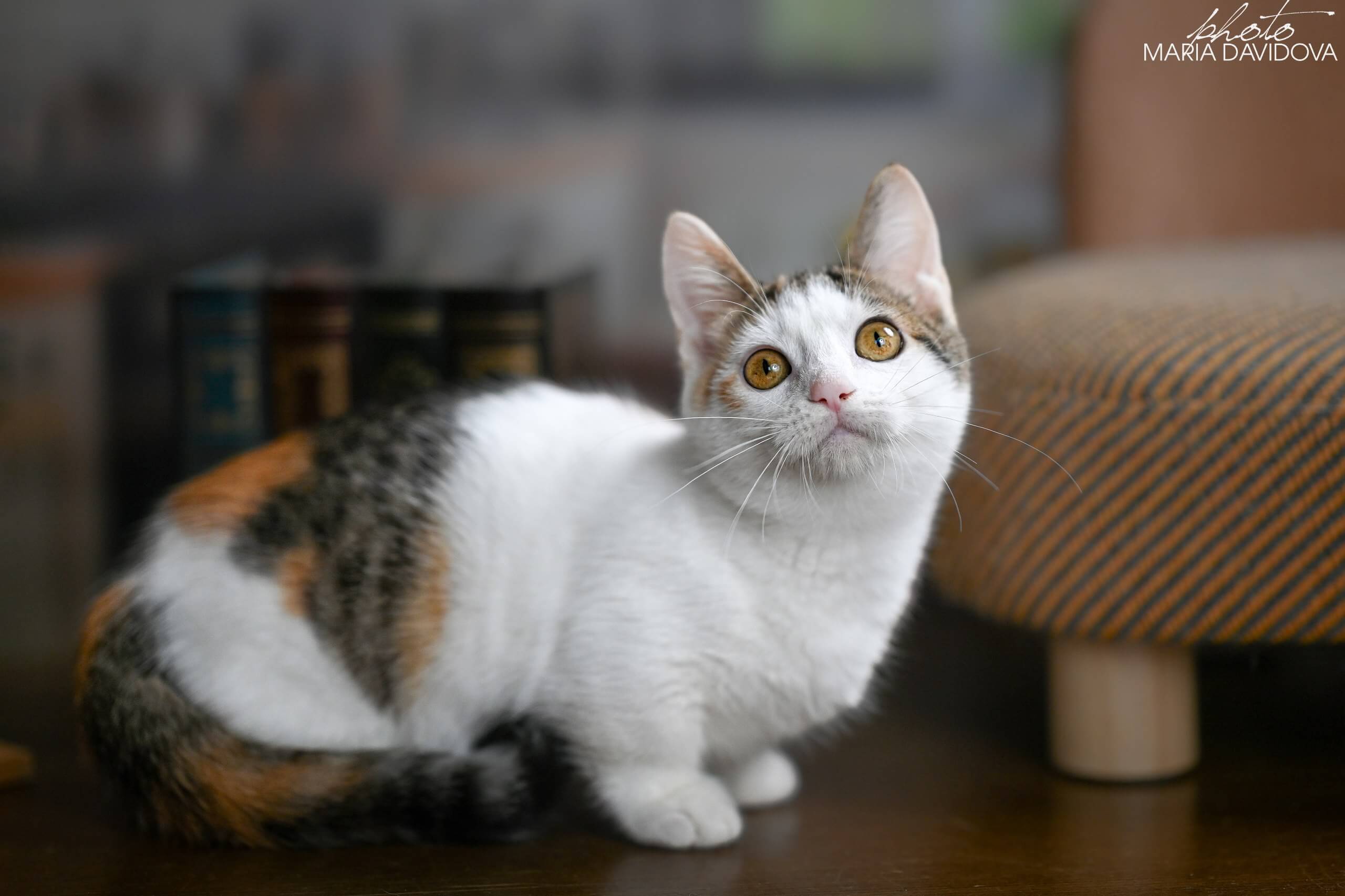 Meet Glasha — a melt-your-heart tabby calico Munchkin girl with dazzling orange eyes and a spirit full of sunshine. Imagine gentle paws tiptoeing softly into your arms, her sweet purr sending waves of warmth straight to your soul. Glasha is more than just a kitten; she’s a soft companion and a purring bundle of joy, always ready for gentle cuddles and playful adventures.