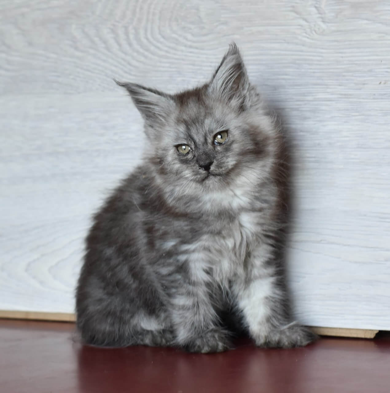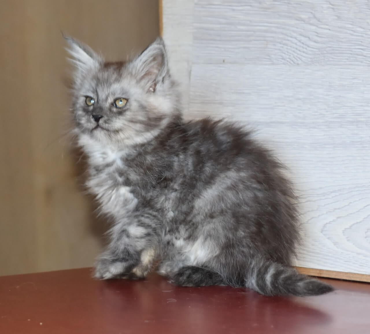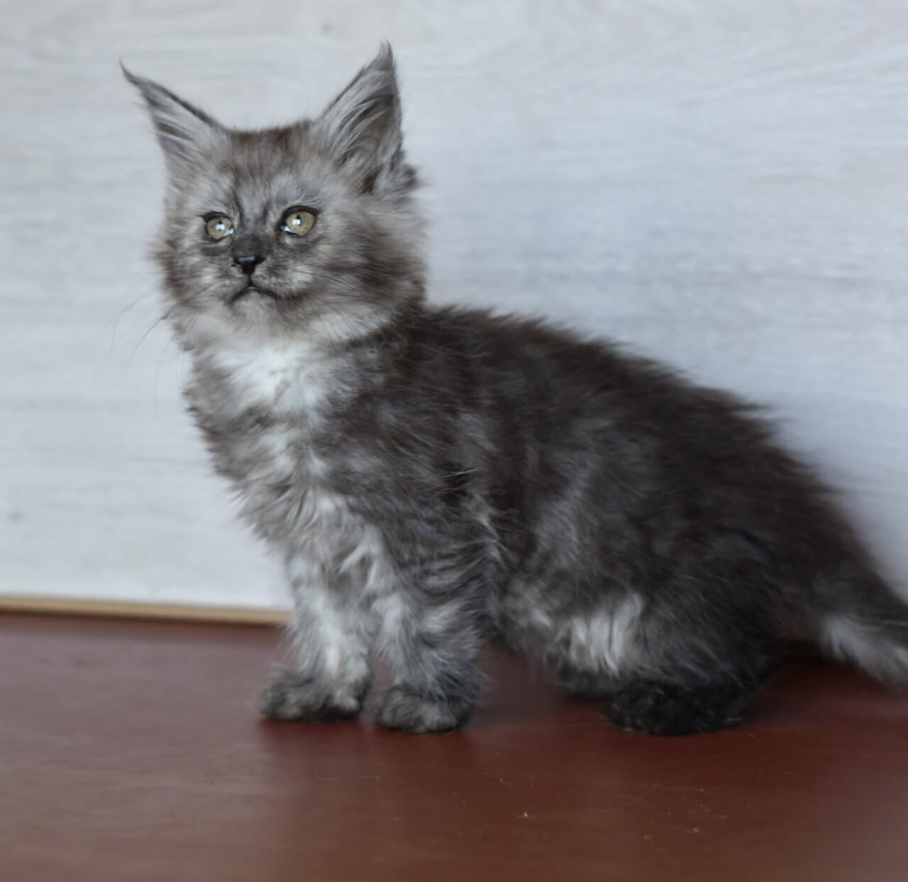 Meet Gretta, a stunning female Maine Coon kitten with enchanting black silver fur and captivating yellow eyes. Born on July 22, 2025, she’s from champion bloodlines and has been registered, ensuring her impressive show quality. Gretta will be ready to join her new home by November 22, 2025, after being spayed. Located in Europe, she is available in the USA by reservation, with pick-up at our Wood Dale location or delivery from Chicago to other states.