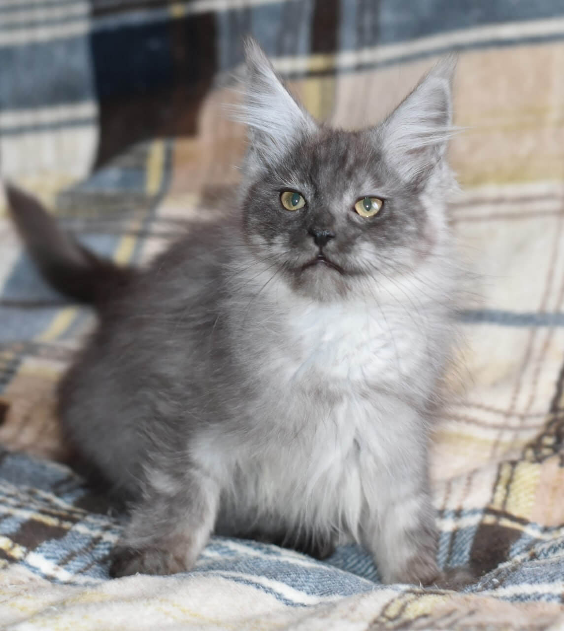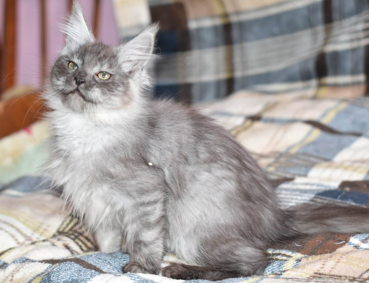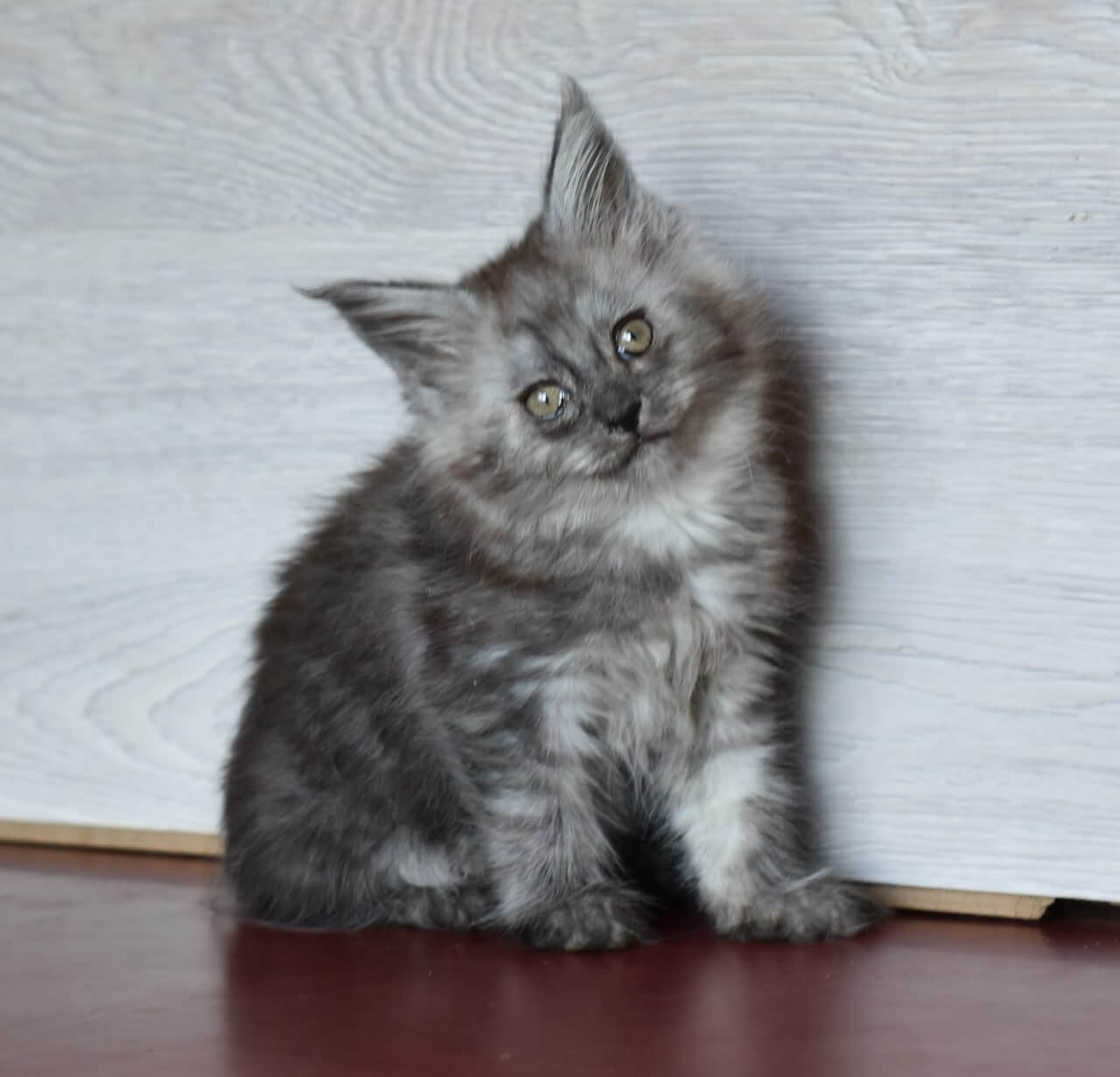 Meet Gretta, a stunning female Maine Coon kitten with enchanting black silver fur and captivating yellow eyes. Born on July 22, 2025, she’s from champion bloodlines and has been registered, ensuring her impressive show quality. Gretta will be ready to join her new home by November 22, 2025, after being spayed. Located in Europe, she is available in the USA by reservation, with pick-up at our Wood Dale location or delivery from Chicago to other states.