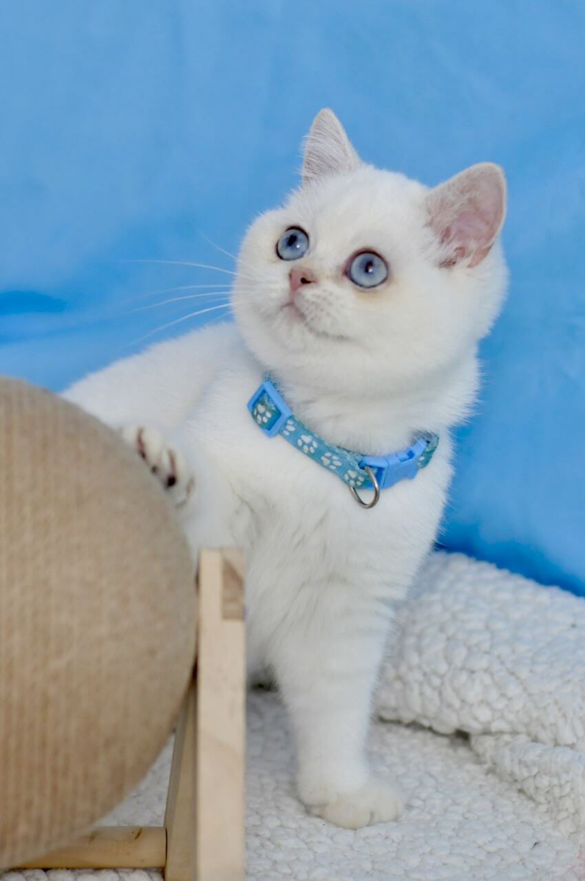 Meet Gucci – an enchanting British Shorthair prince whose golden elegance and soulful blue eyes will melt your heart at first glance. Imagine coming home to velvety, plush cuddles and a gentle companion who loves to greet you with a soft nuzzle and a soothing purr.