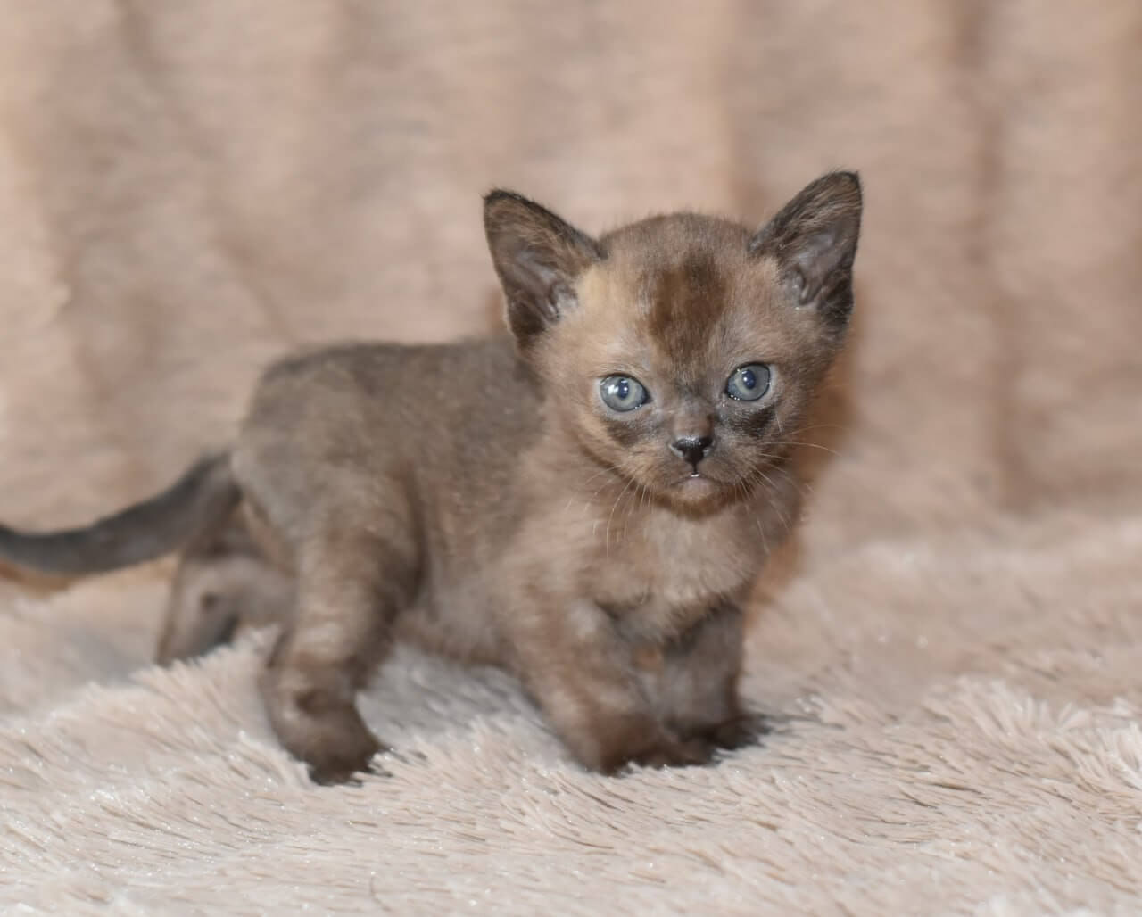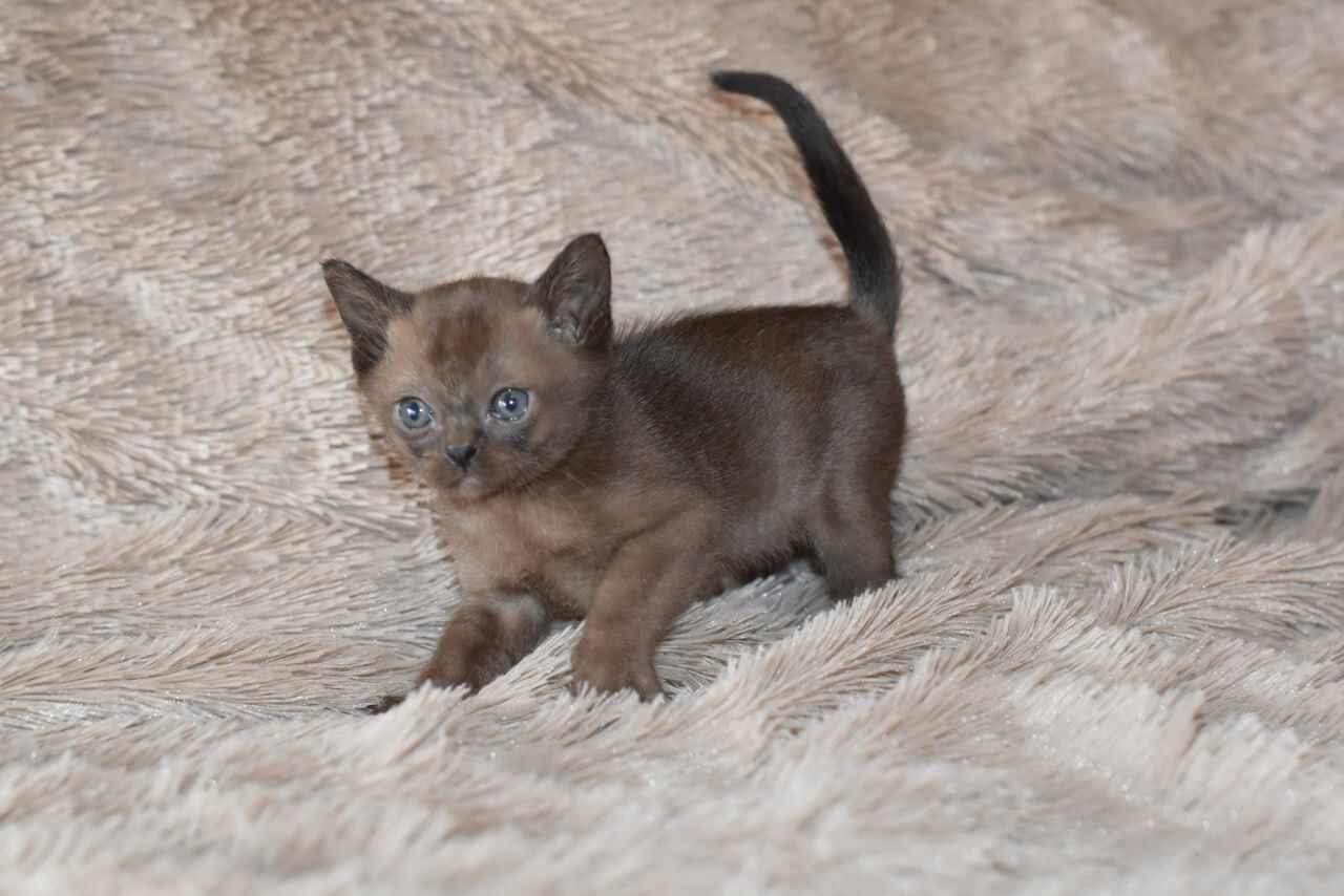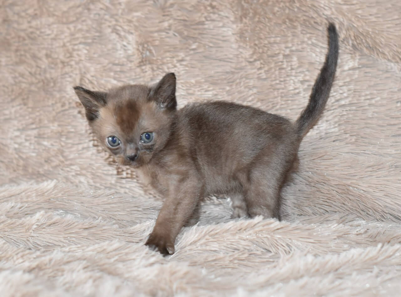 If you enter the room, Han Solo is already halfway to greet you, tail high, soft meow ready. Known for their people-centric personalities, Burmese kittens are true companions, and Han Solo’s playful persistence shines. He loves to chase feather toys, nap curled close against your chest, and instantly seeks your attention with a nudge of his velvet head—he’ll orchestrate entire games just to be near you.