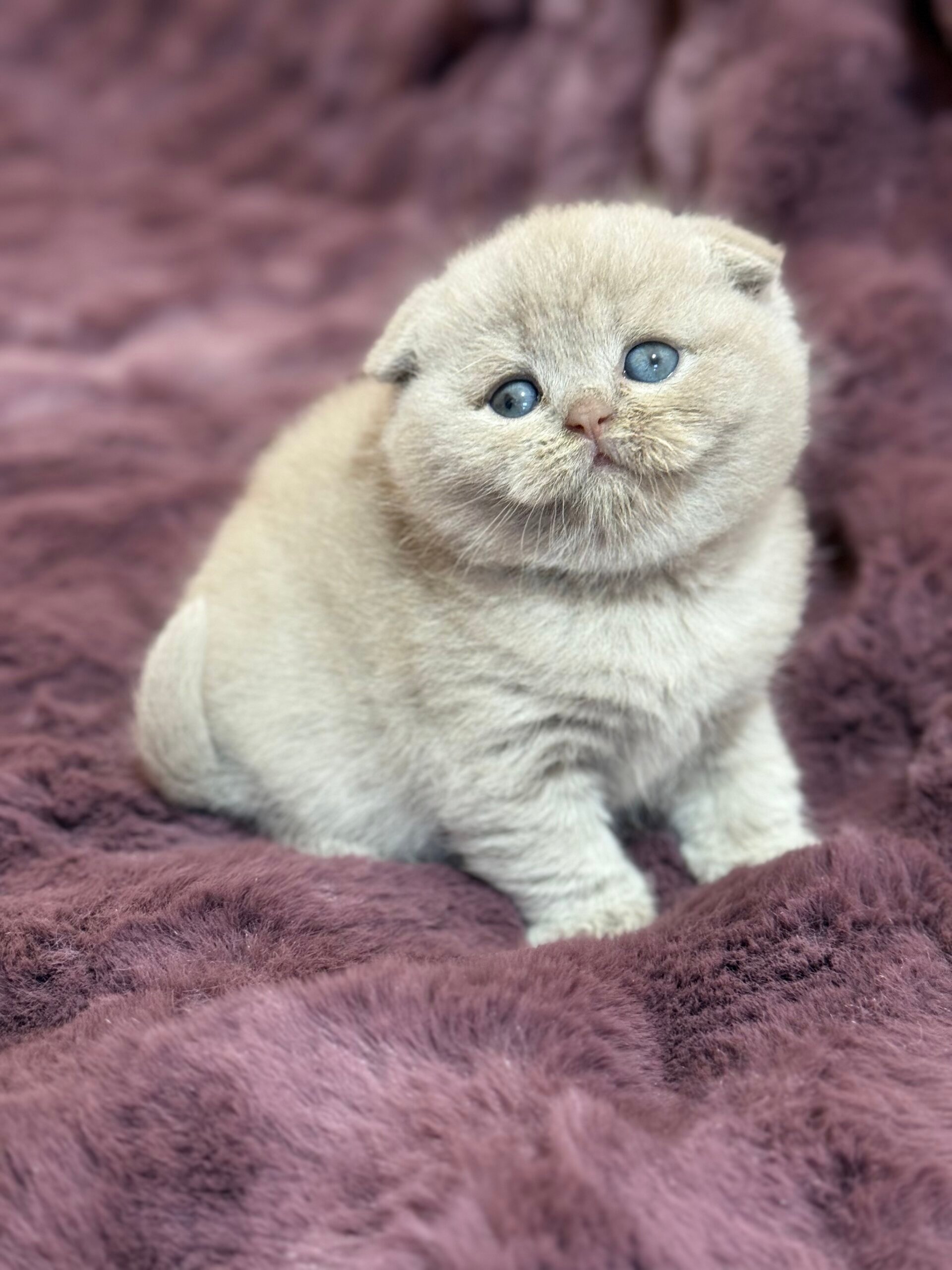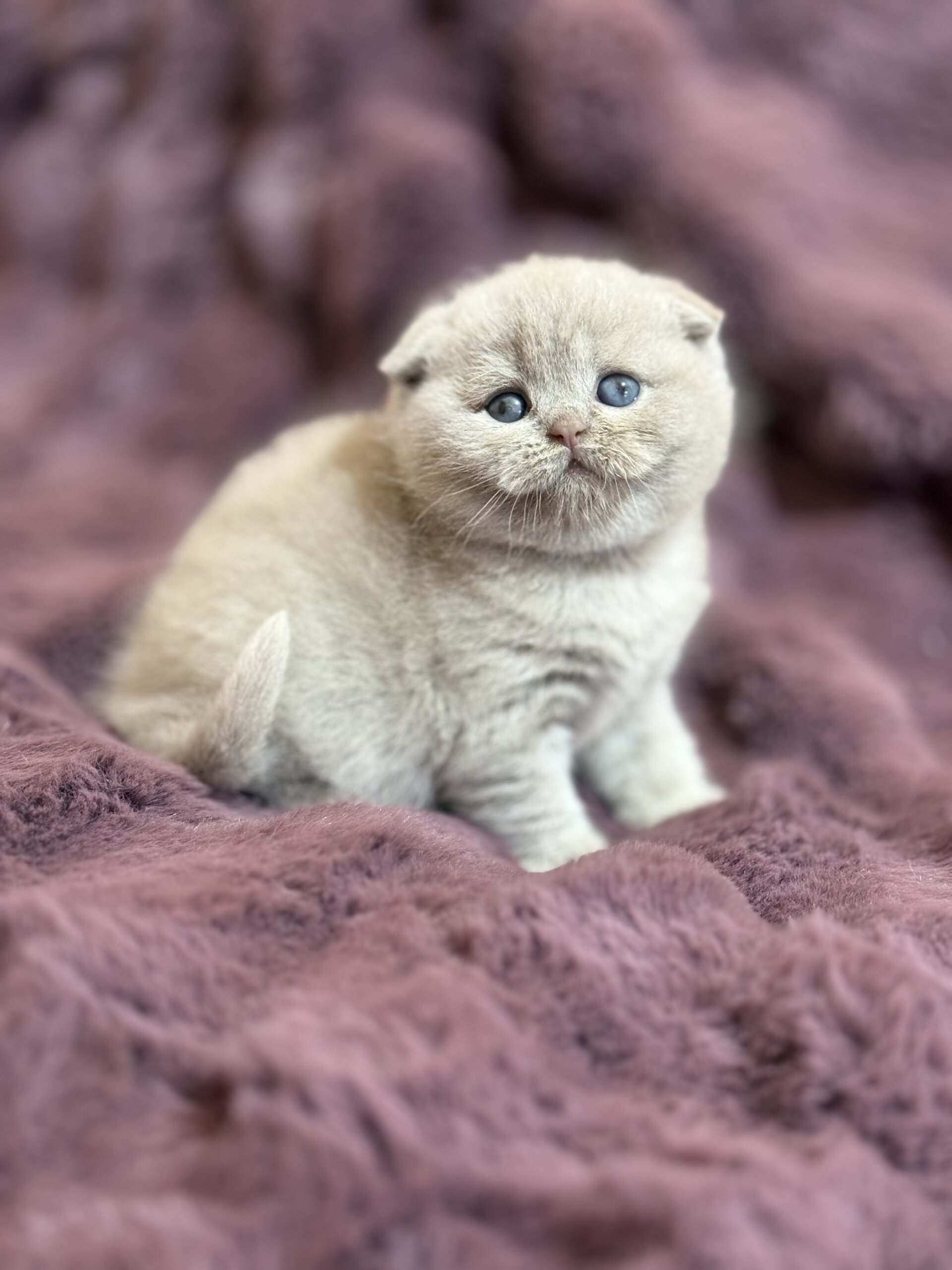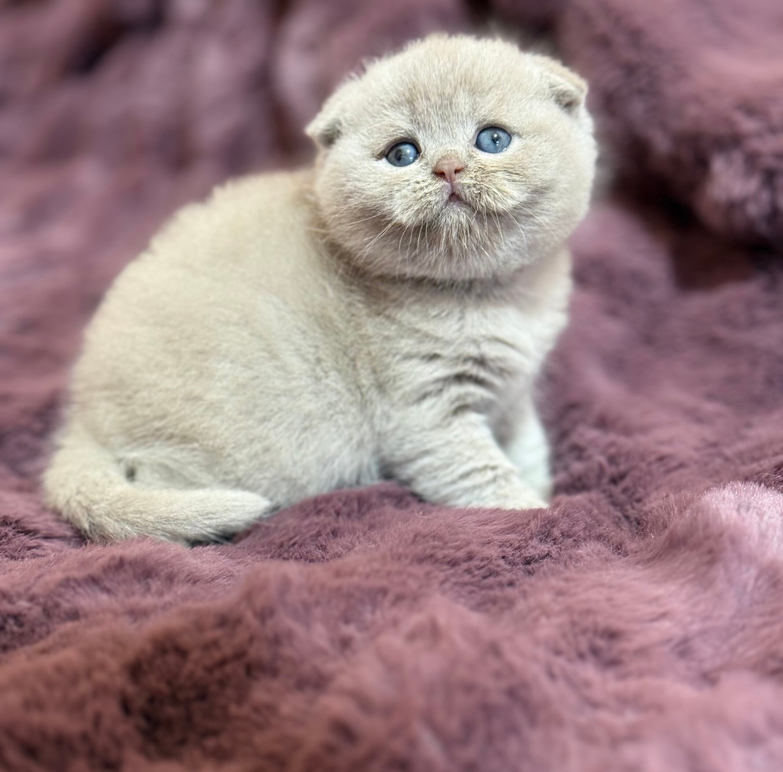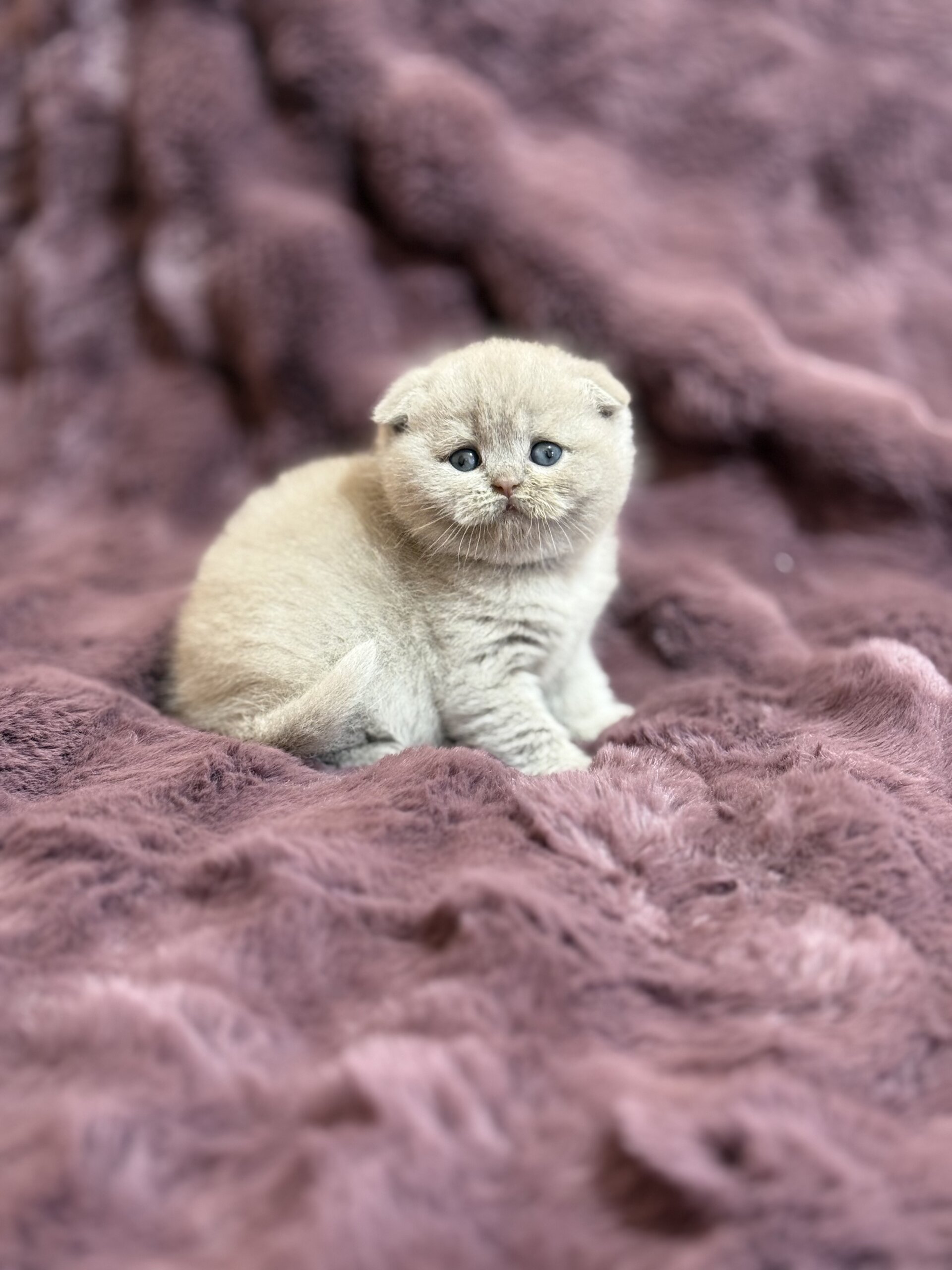 Meet Holly – a gentle fawn Scottish Fold whose golden-yellow eyes promise warmth and endless cuddles. The moment you lay eyes on her, you’ll feel your heart soften—her plush fur and darling folded ears beg to be touched, while her calm, loving spirit fills every room with quiet happiness.