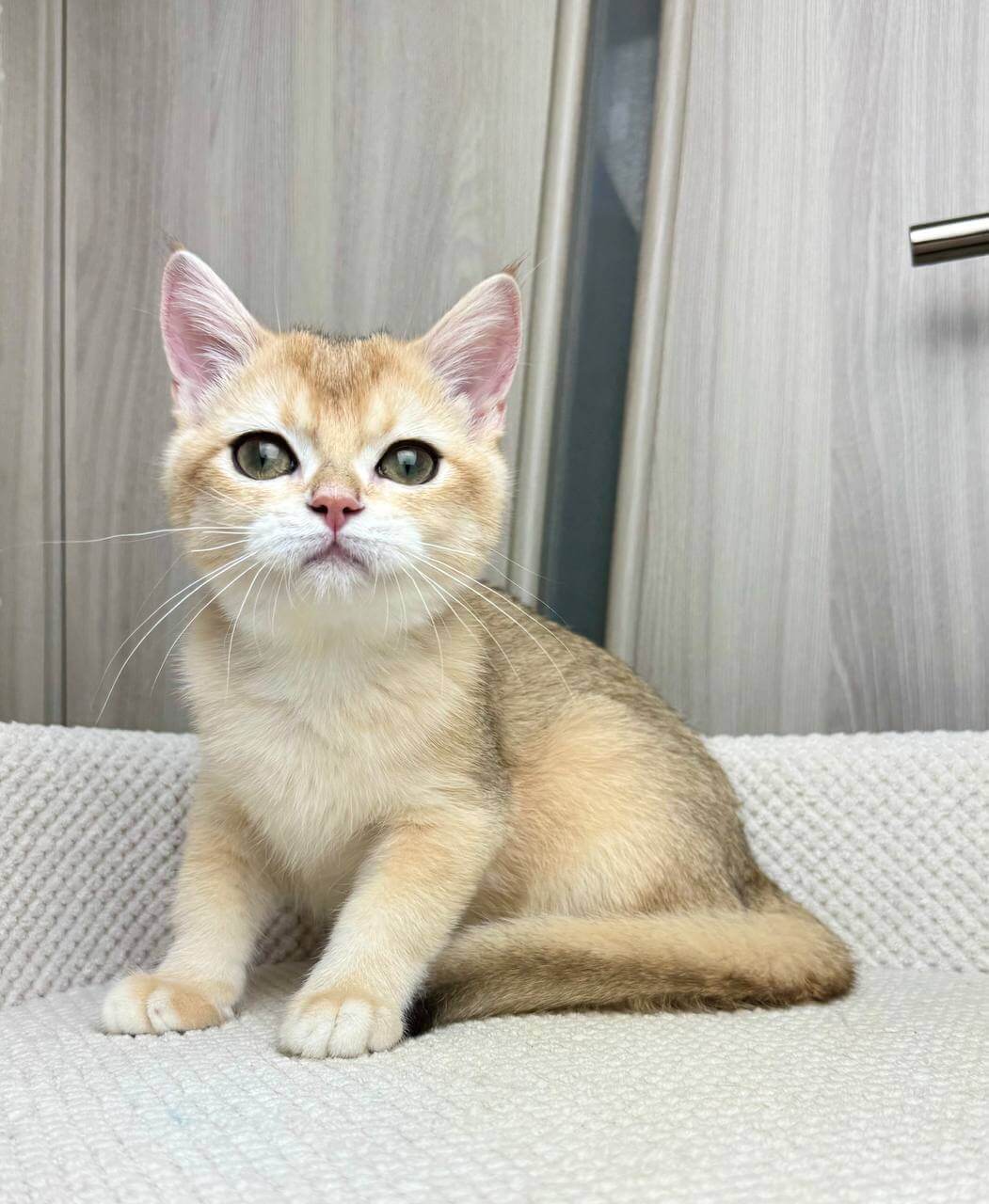 Meet Hunter, a stunning male British Shorthair kitten with a luxurious black golden shaded coat and striking green eyes. Born on May 13, 2025, Hunter comes from champion bloodlines, ensuring he is show quality. He will be ready to join his new home on September 13, 2025, and is available for reservation in the USA through our website, with pickup at our Wood Dale location or delivery to other states from Chicago. He will be neutered/spayed as a pet, but breeding rights are available upon request.