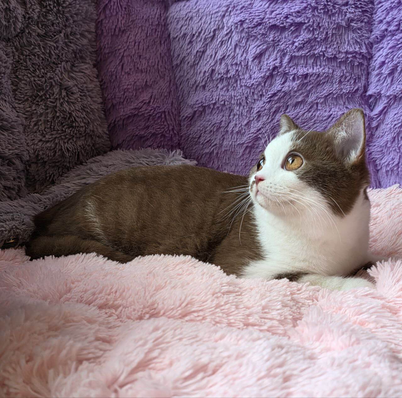 With champion bloodlines, Ilon is the picture of both sophistication and playful spirit. He loves gentle head bumps, following you from room to room, and curling up in your lap as the sun streams in. His adorable cinnamon-white markings make him stand out—a true show-quality companion ready to bring gentle joy into every day.