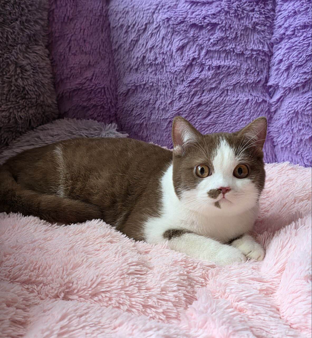 Meet Ilon, your cinnamon-and-cream dream—an irresistibly plush British Shorthair boy whose purr is as golden as his mesmerizing yellow eyes. From the moment you gaze into his warm, gentle face, Ilon’s soft coat and heart-melting cuddles will fill your home with sweetness and comfort.
