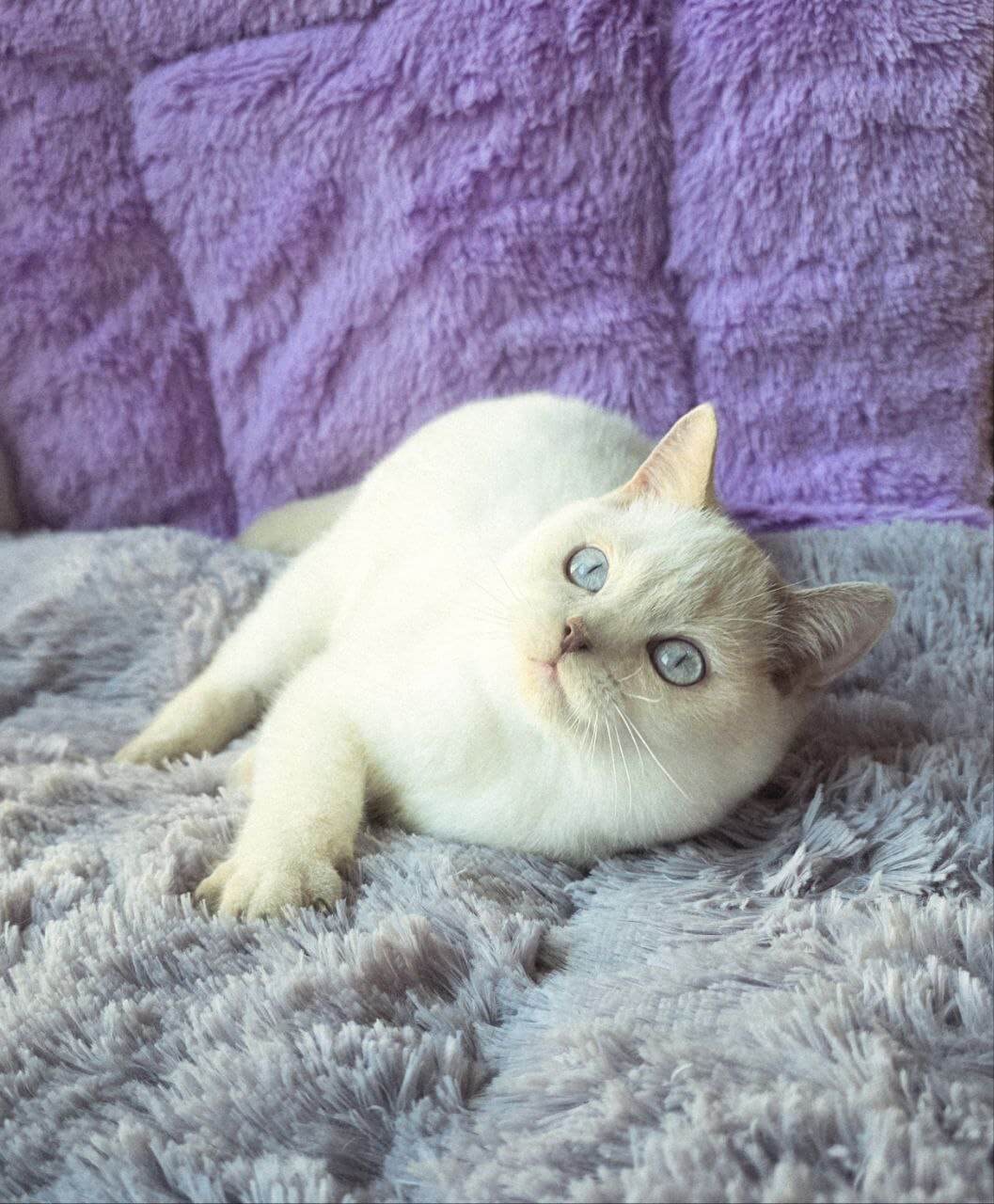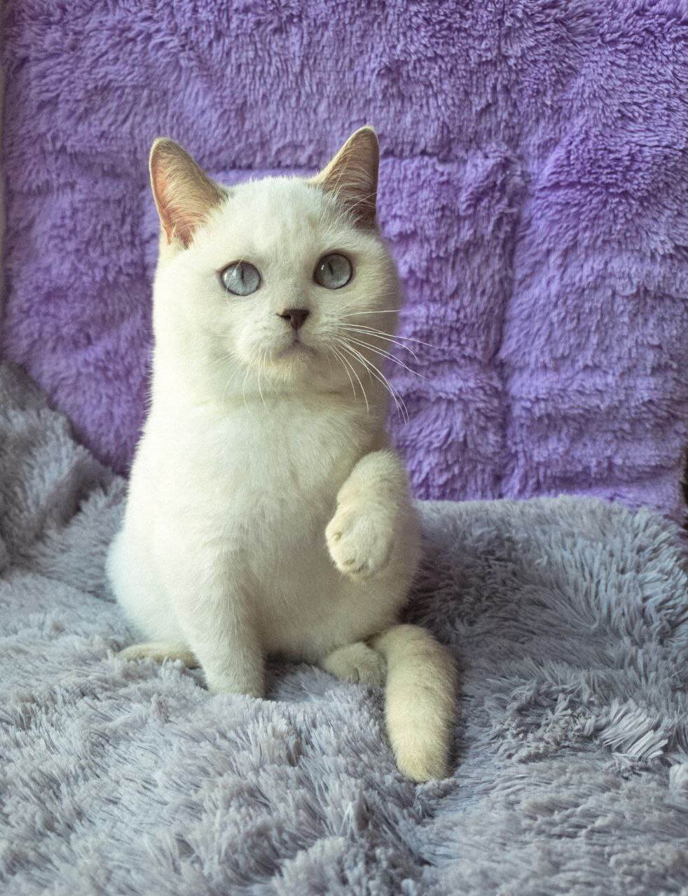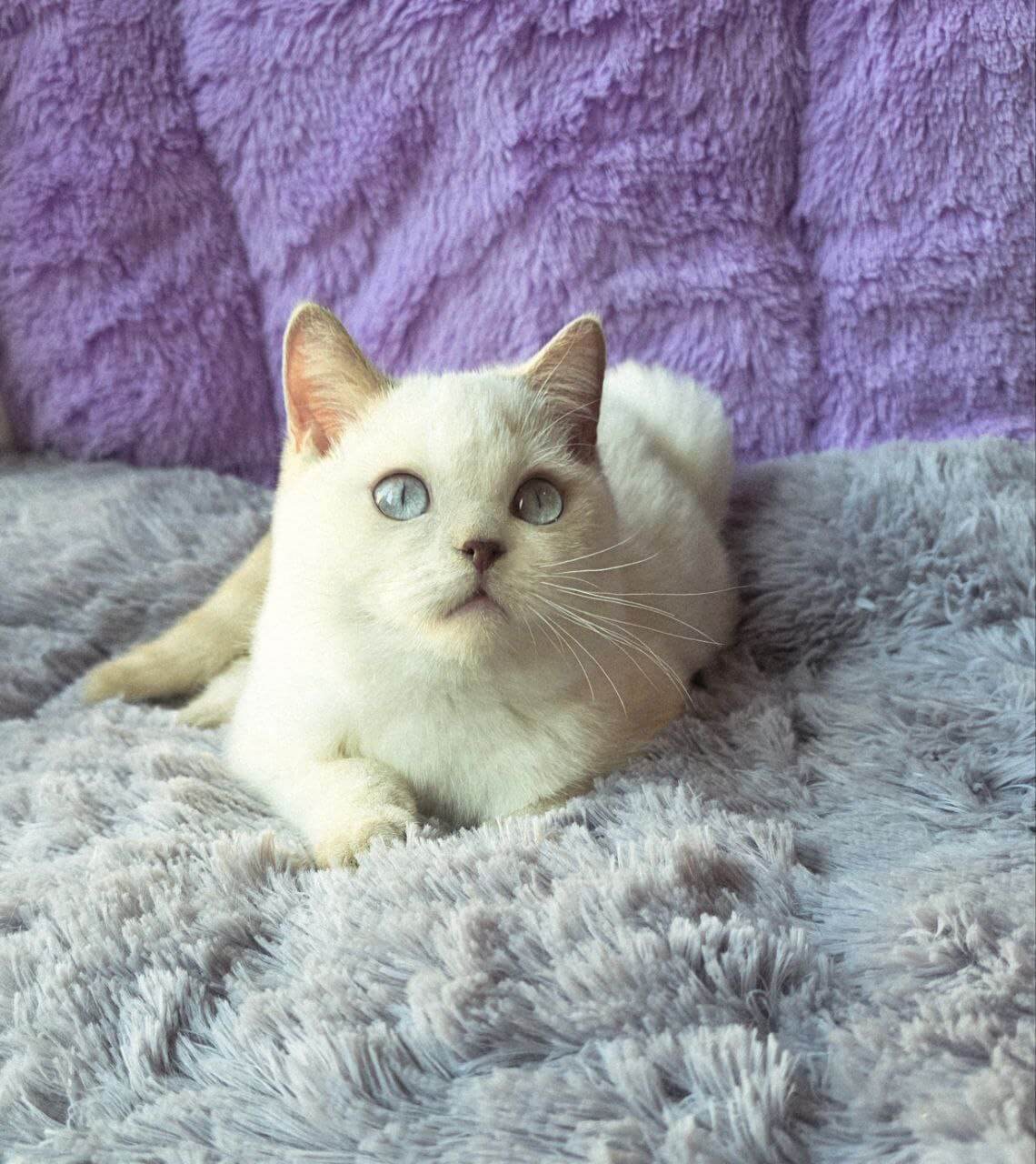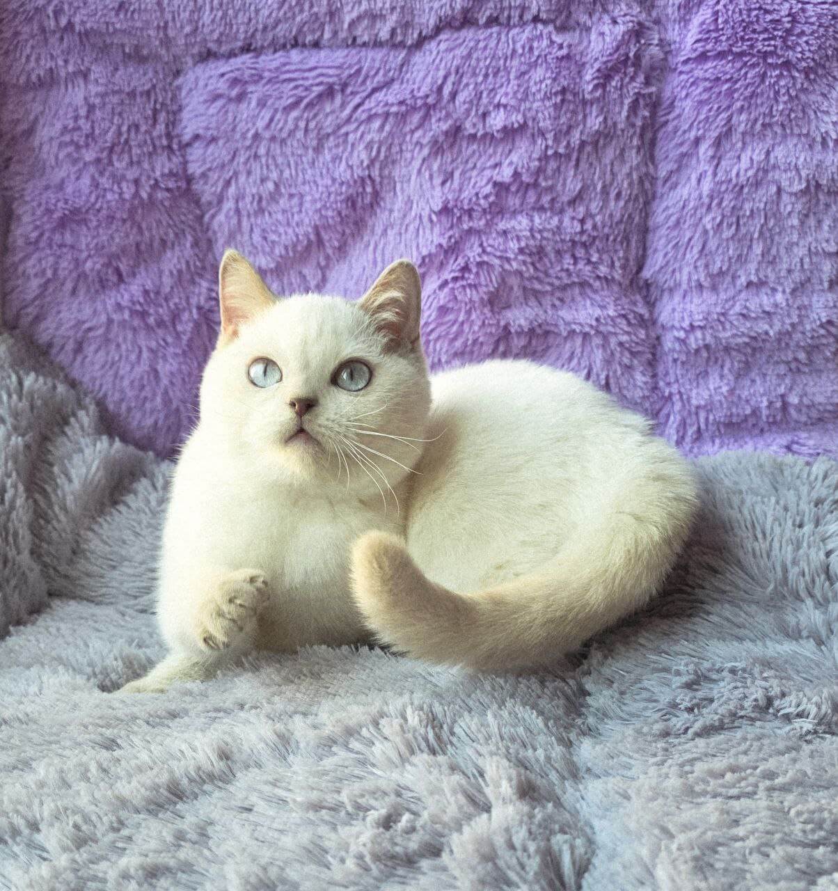 Let your heart melt at first sight: Iris, a rare fawn point British Shorthair kitten, awaits a gentle touch and a lifelong friend. His plush fur is as soft as whispered promises, and his round, sky-blue eyes are pools of warmth that follow you with gentle curiosity.
