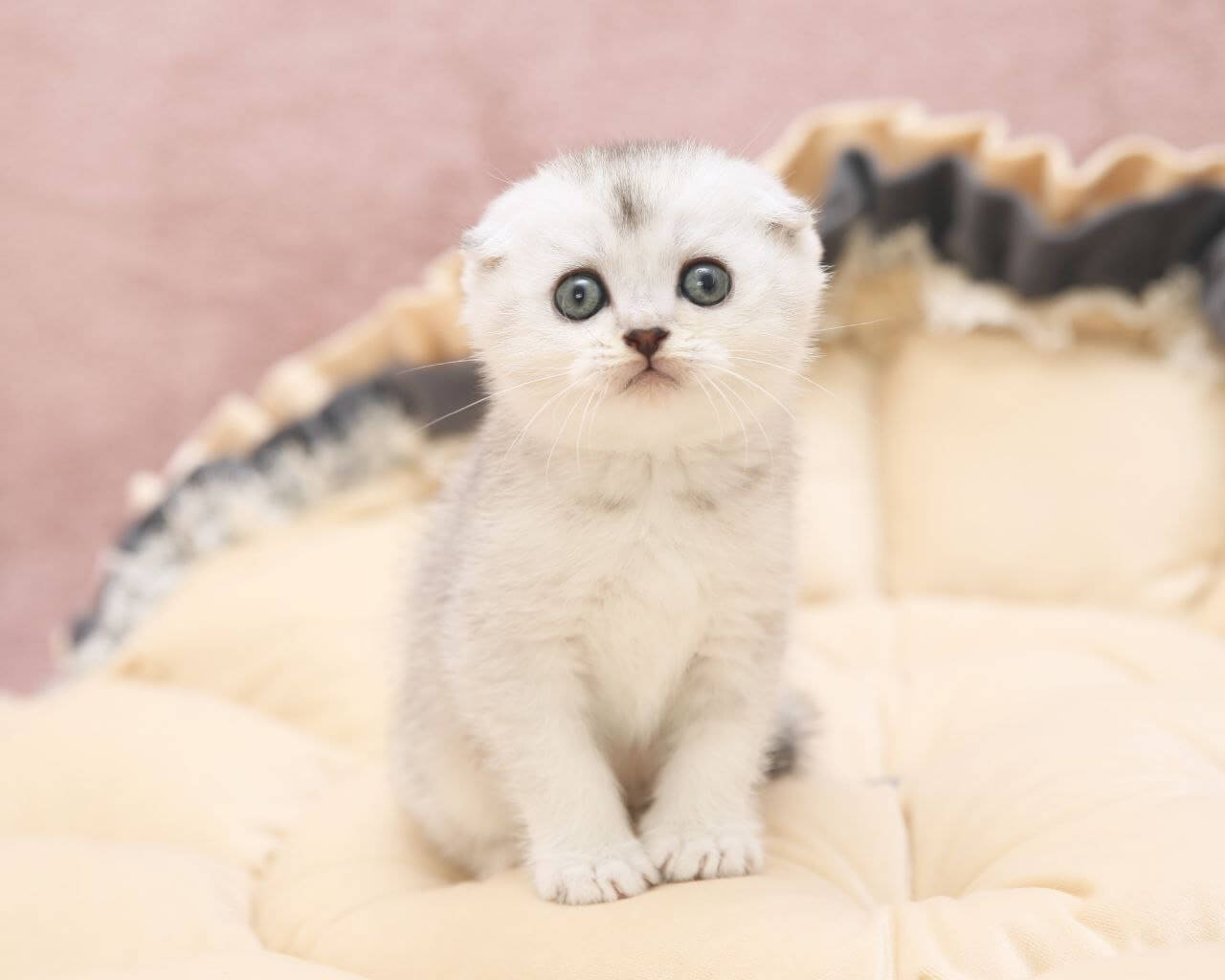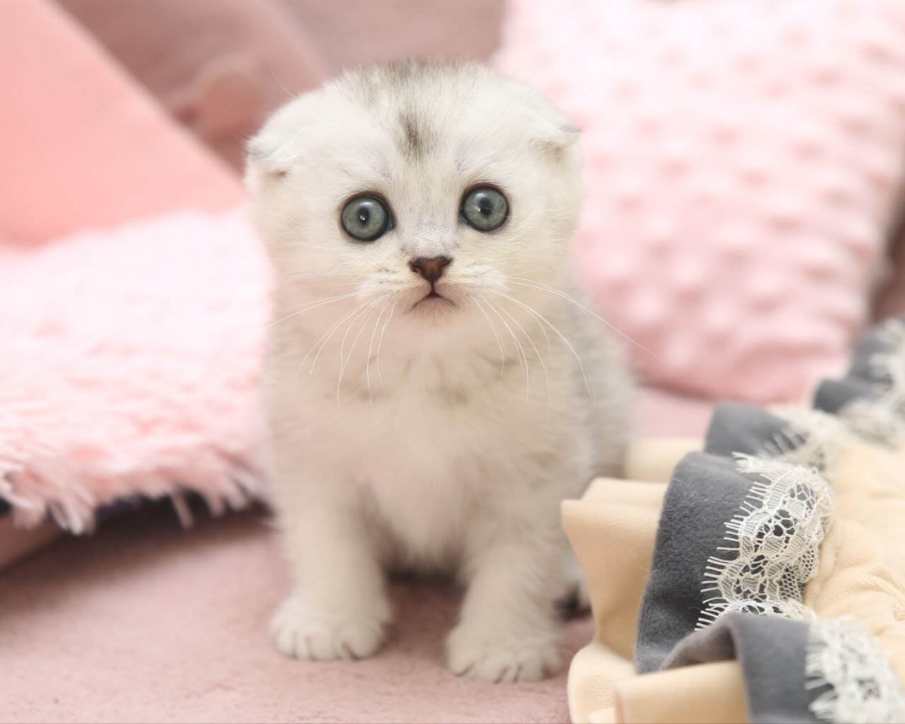 Meet Iron, our enchanting male Scottish Fold with a velvet-soft black silver shaded coat and mesmerizing green eyes that will steal your heart from the very first purr. Iron is a gentle soul, known for his sweet, affectionate nature and irresistible charm—he loves quiet snuggles, warm laps, and exploring the world with endless kitten curiosity.