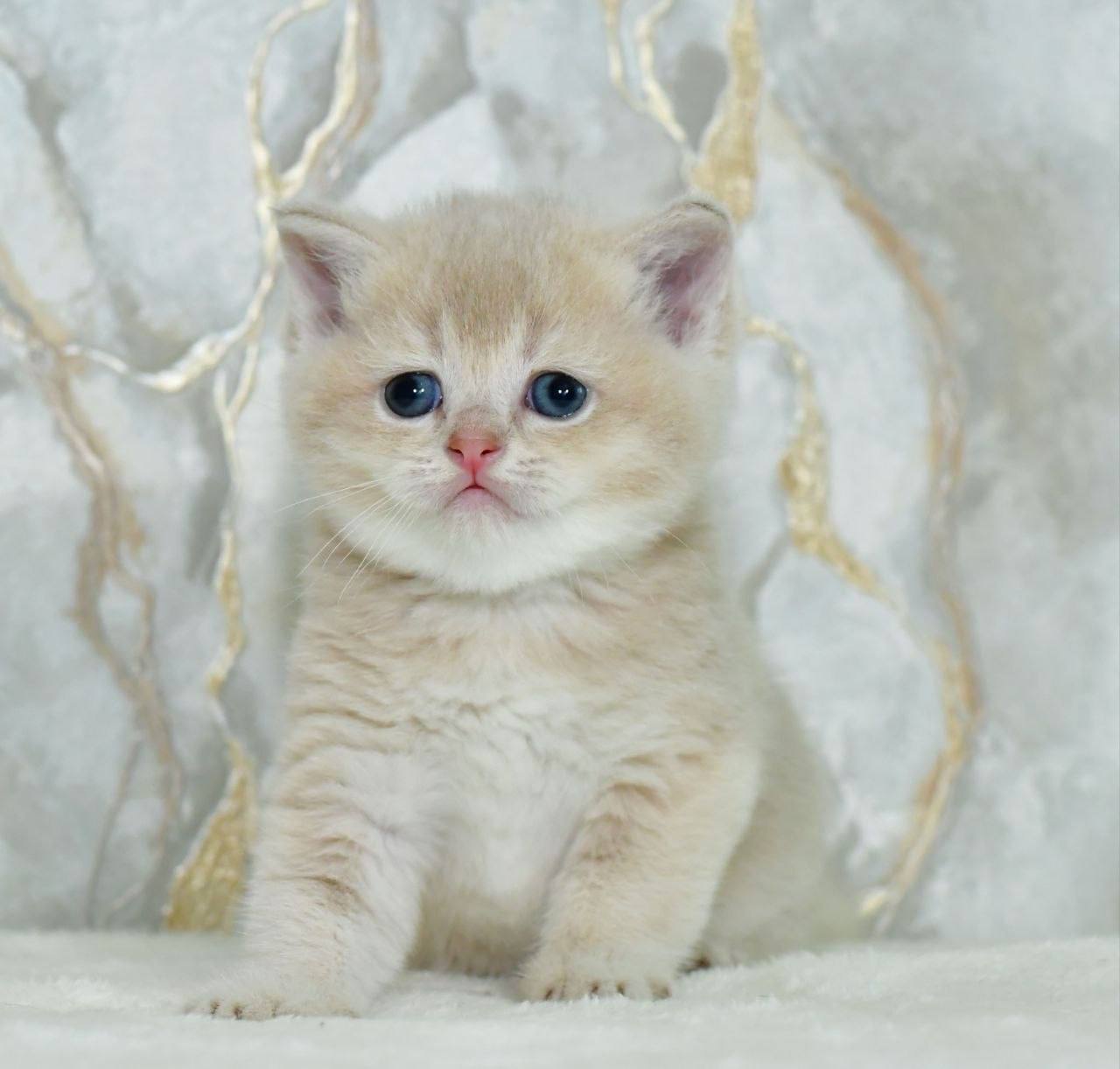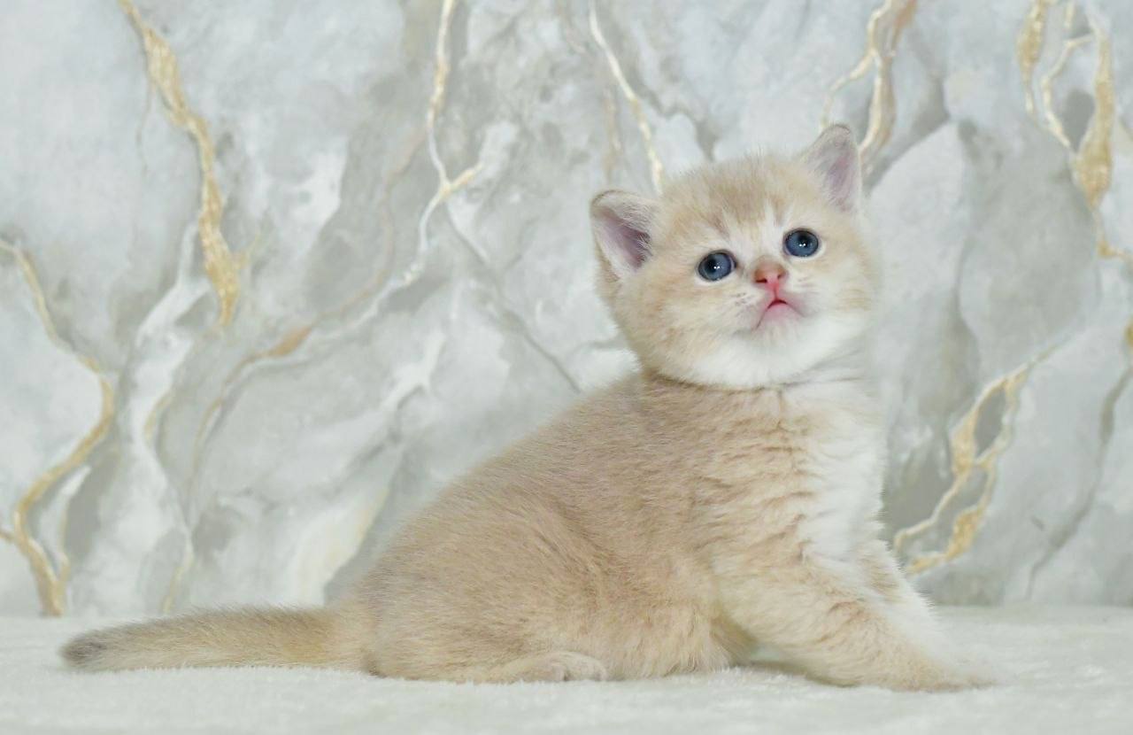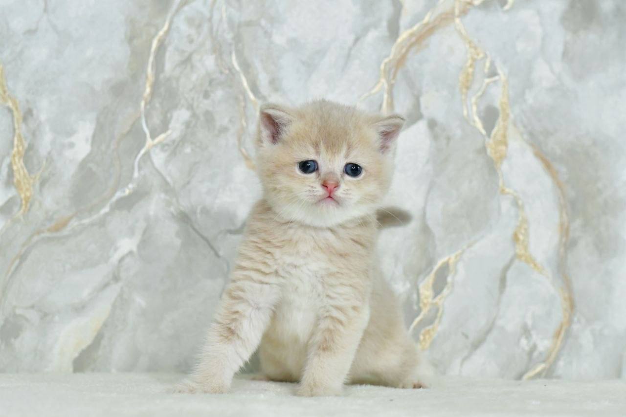 There’s something quietly enchanting about Irvin, a Lilac Golden Shaded Scottish Straight kitten whose downy-soft coat feels like brushed velvet under your fingertips. When he leans into your hand, you’ll notice the subtle shimmer in his fur and the vivid green of his round, wide-set eyes—a gaze that seems to welcome you home.