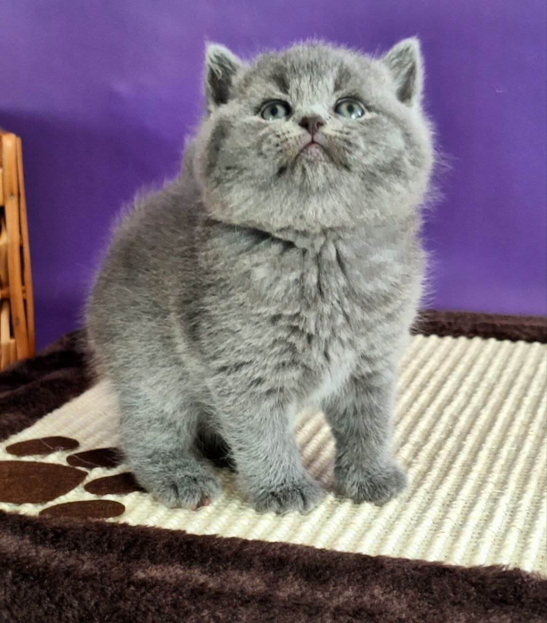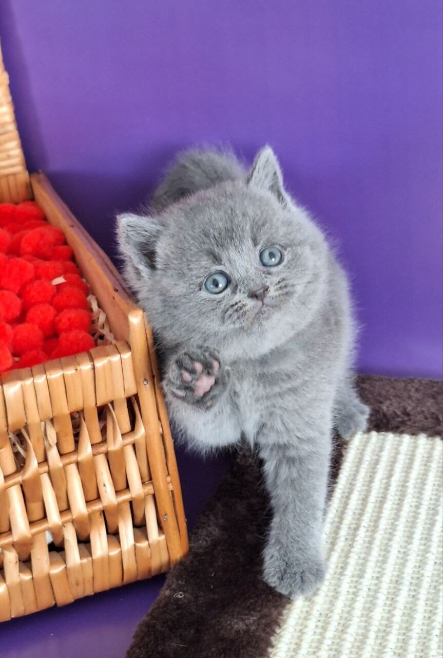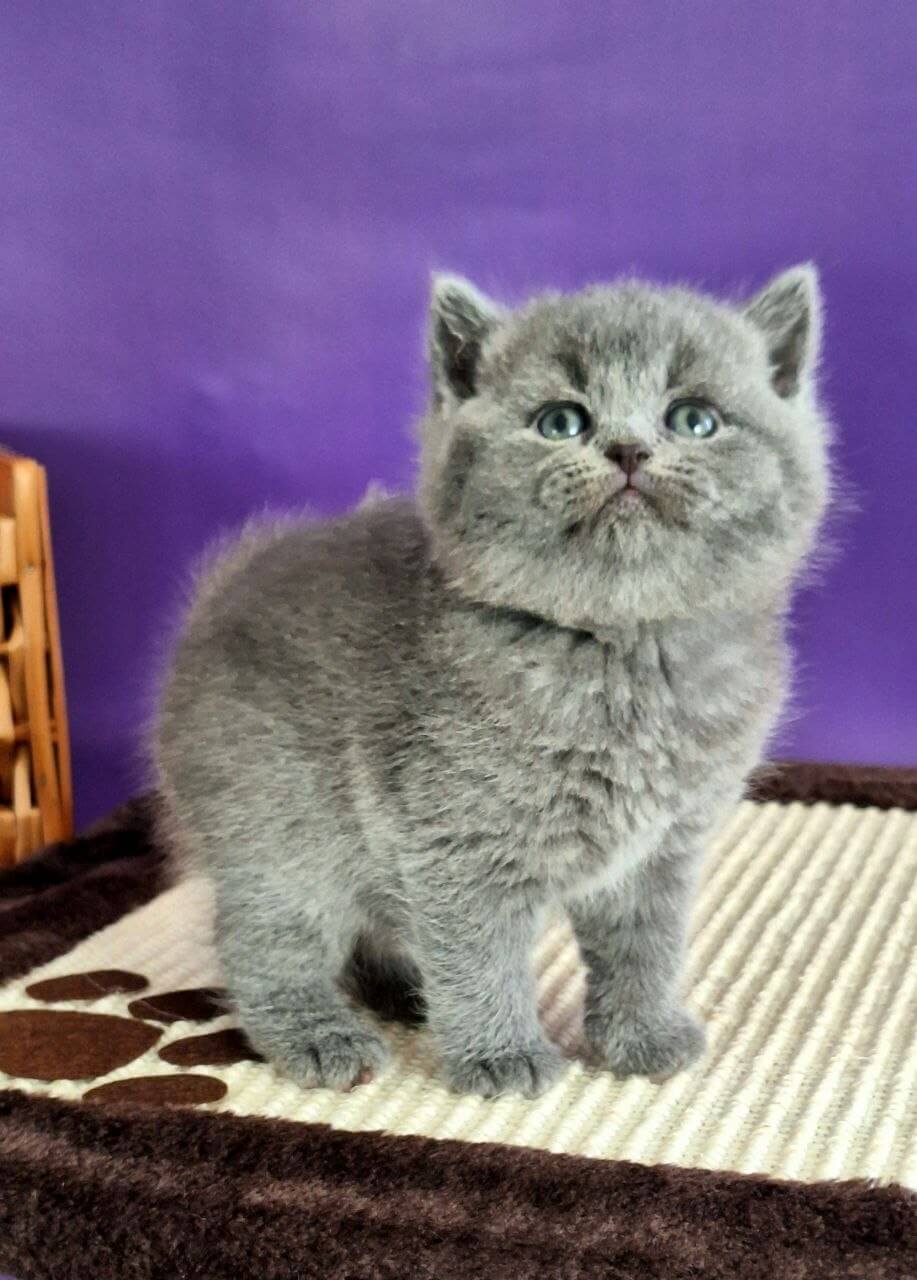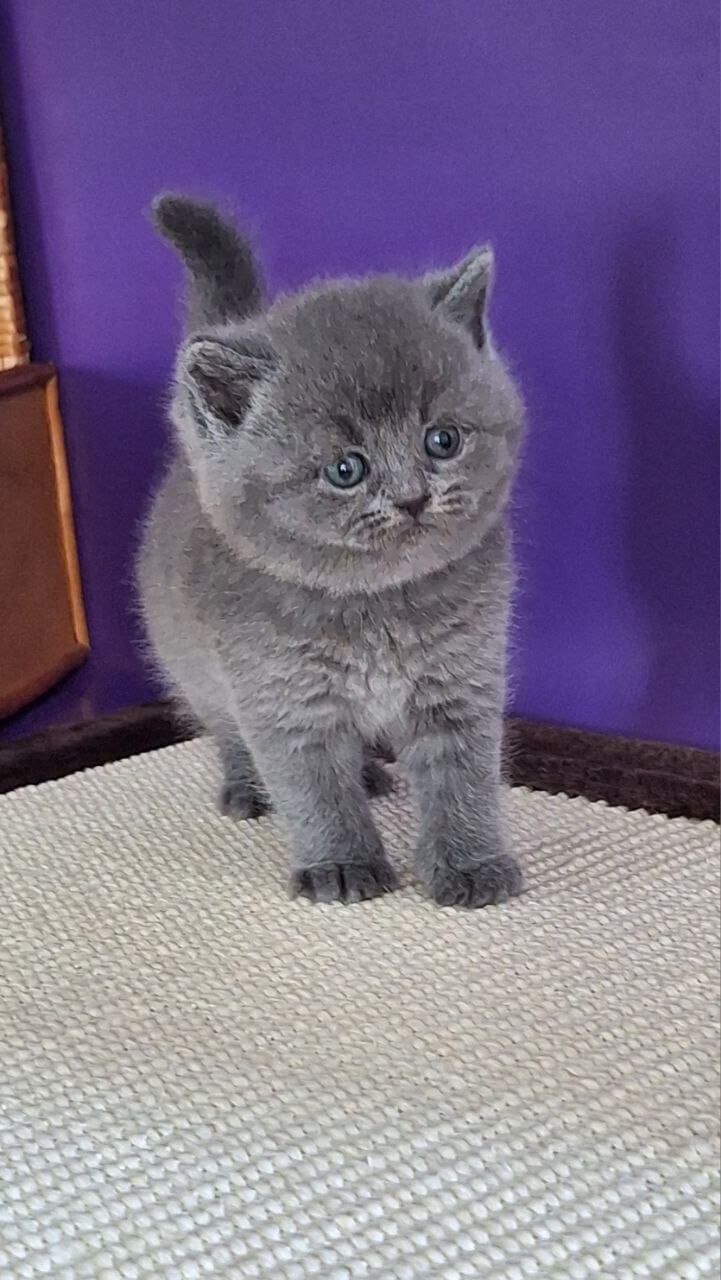 Run your hand along Jamala’s plush blue coat and you’ll feel the unmistakable luxury of a true Blue British Shorthair kitten. Her yellow eyes radiate a golden warmth, sparking to life in the sunlight—curious, brilliant, and always watching you. The gentle weight of her in your lap brings calm, the blue-grey softness inviting endless nuzzles.