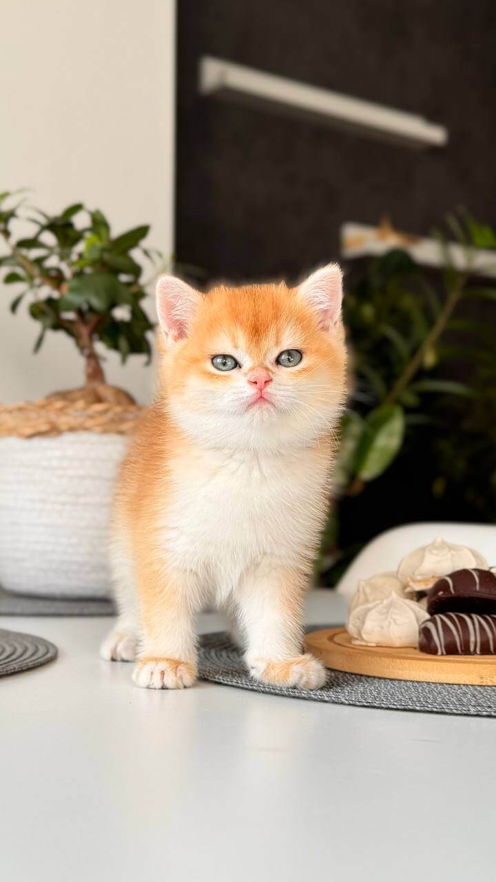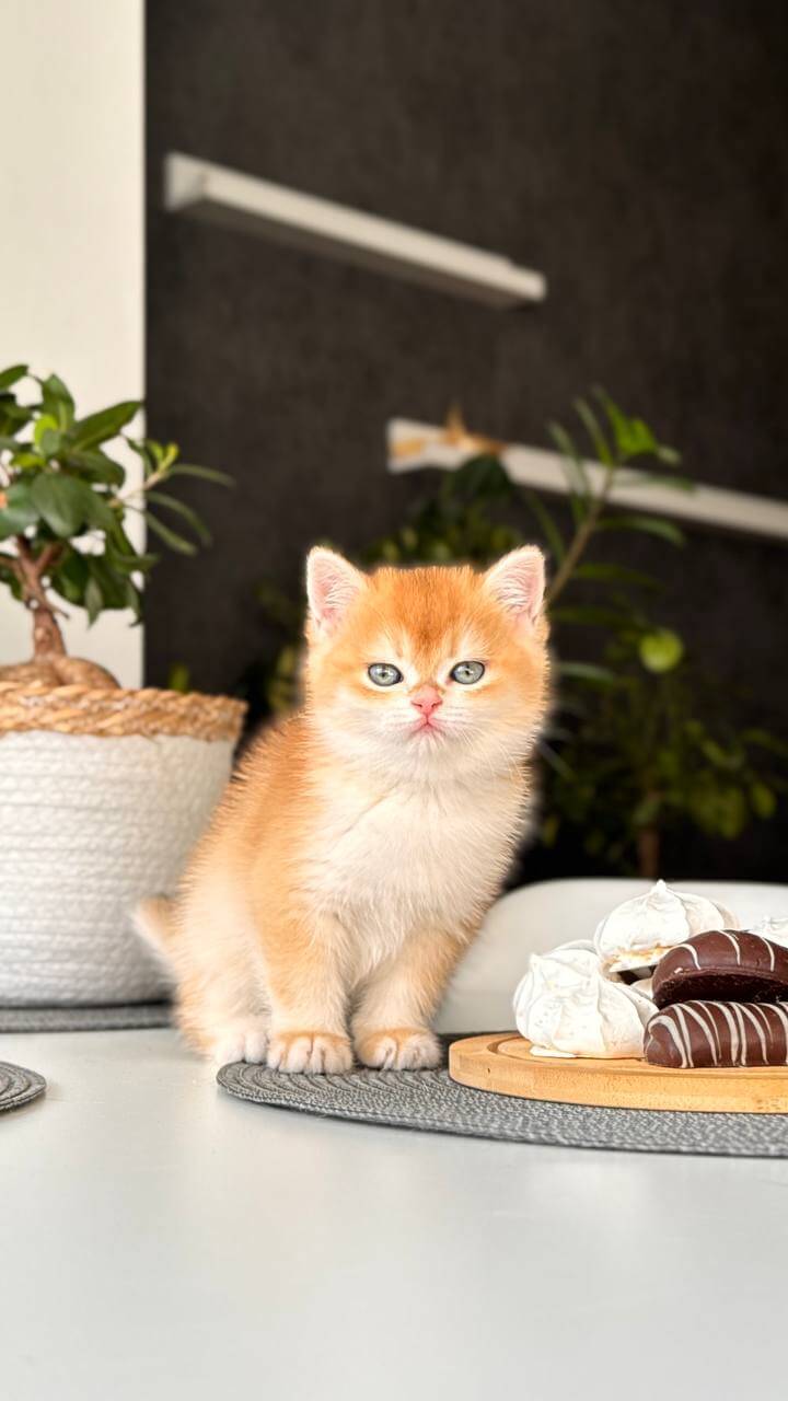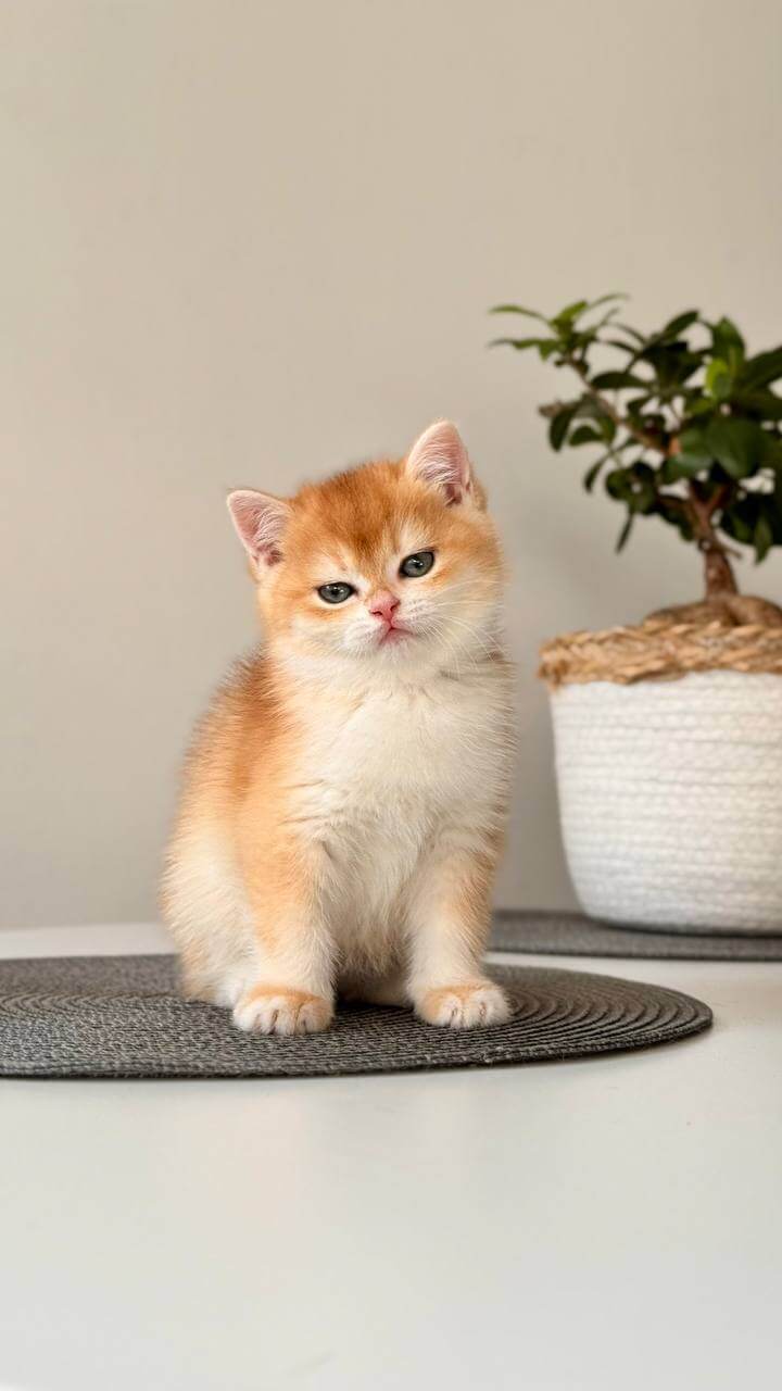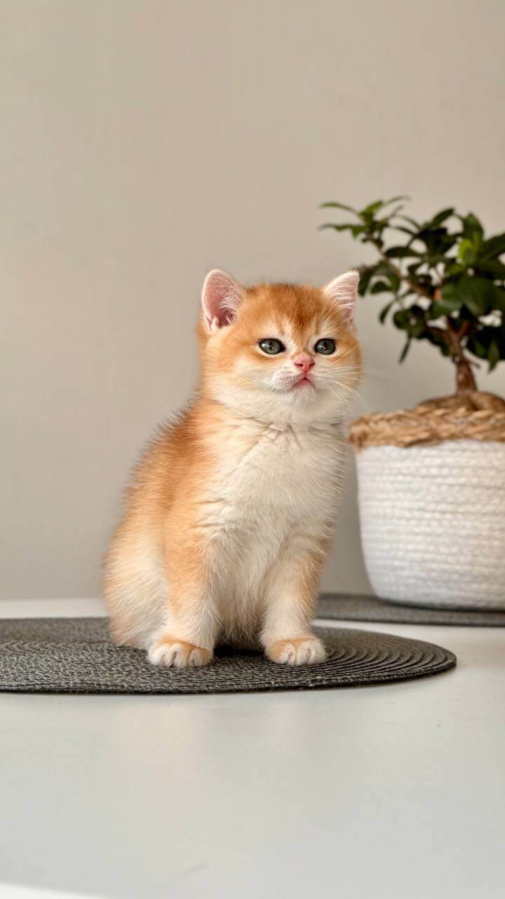 When you first hold Janet, our Black Golden Shell British Shorthair kitten, her plush, golden-black coat will surprise you—short yet incredibly dense, like velvet under your fingertips. Look into her luminous green eyes, swimming with surprise and curiosity, and you’ll feel an instant, comforting warmth wrap around your heart.