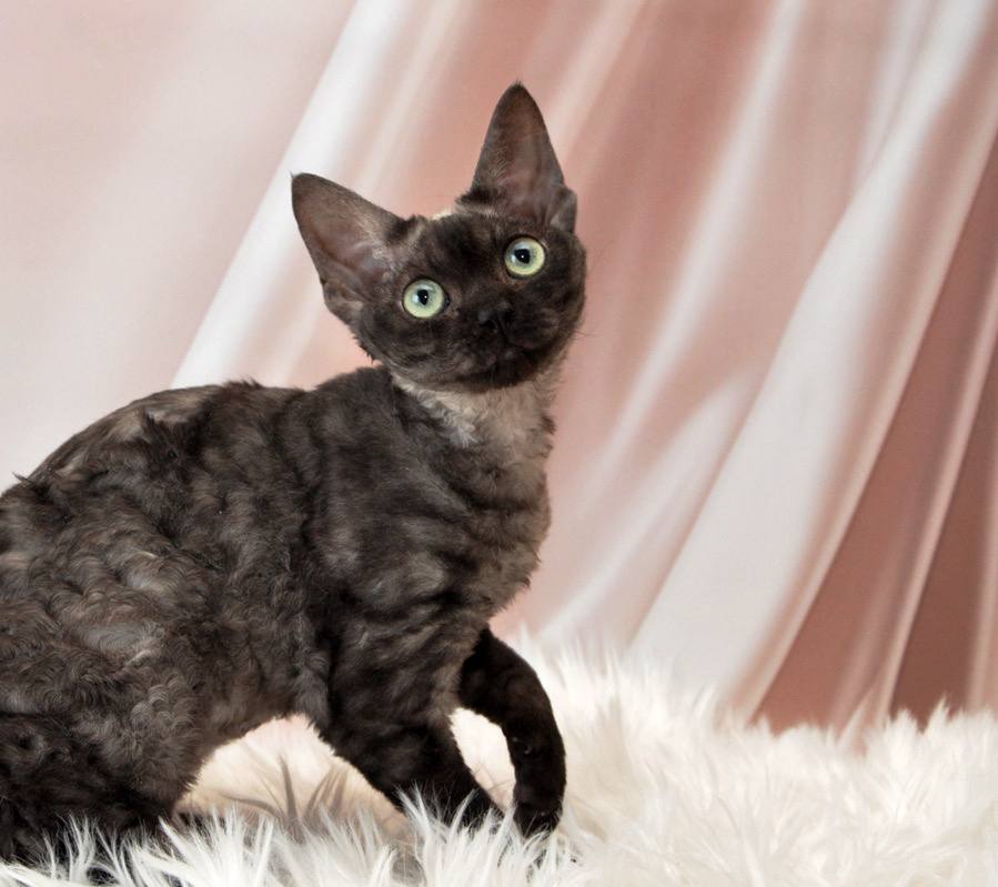 Meet Jasja – a delightful Devon Rex princess whose sparkling green eyes and plush black-silver curls will steal your heart the moment she softly purrs into your palm. Imagine gentle warmth: a velvet paw curling against your neck, a curious, loving gaze meeting yours each morning, and the tiniest, most comforting nuzzles welcoming you home every day.
