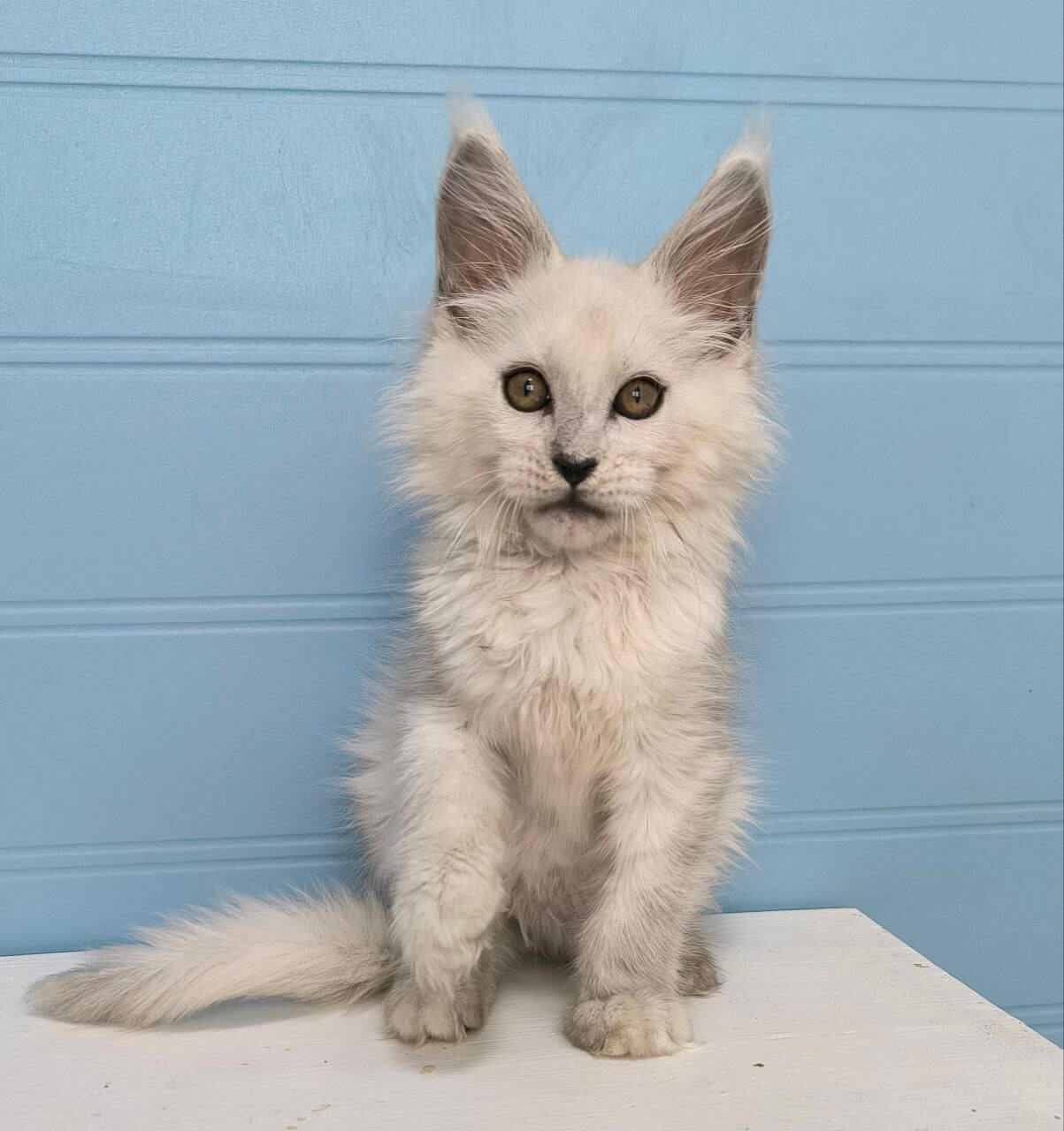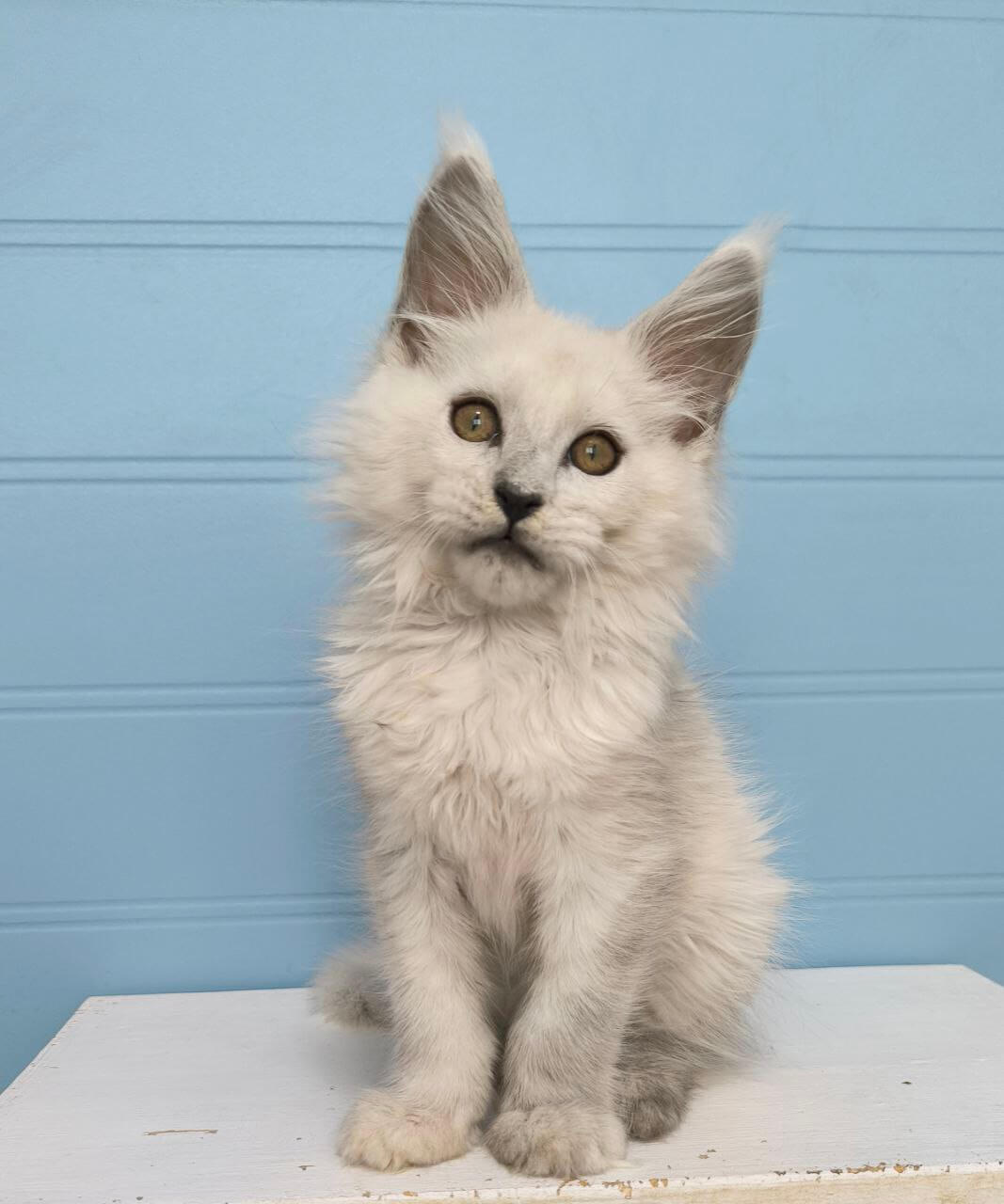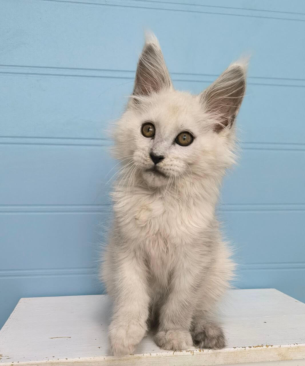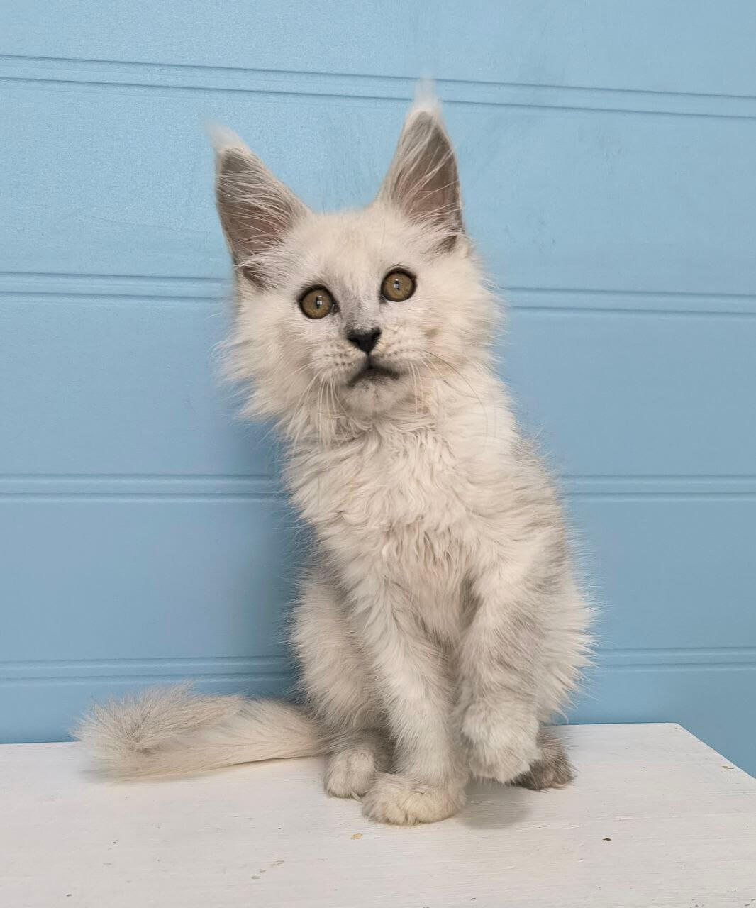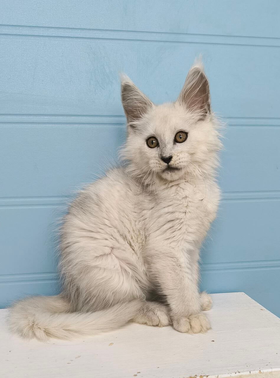 From the very first touch, Jazz captivates with his silky coat, sweet, inquisitive gaze, and loving nature. Born to champion bloodlines, this stunning Maine Coon boy adores gentle cuddles, lap time, and soothing purrs. Playful yet calm, he’ll follow you quietly from room to room, his tufted paws always searching for a cozy spot by your side.