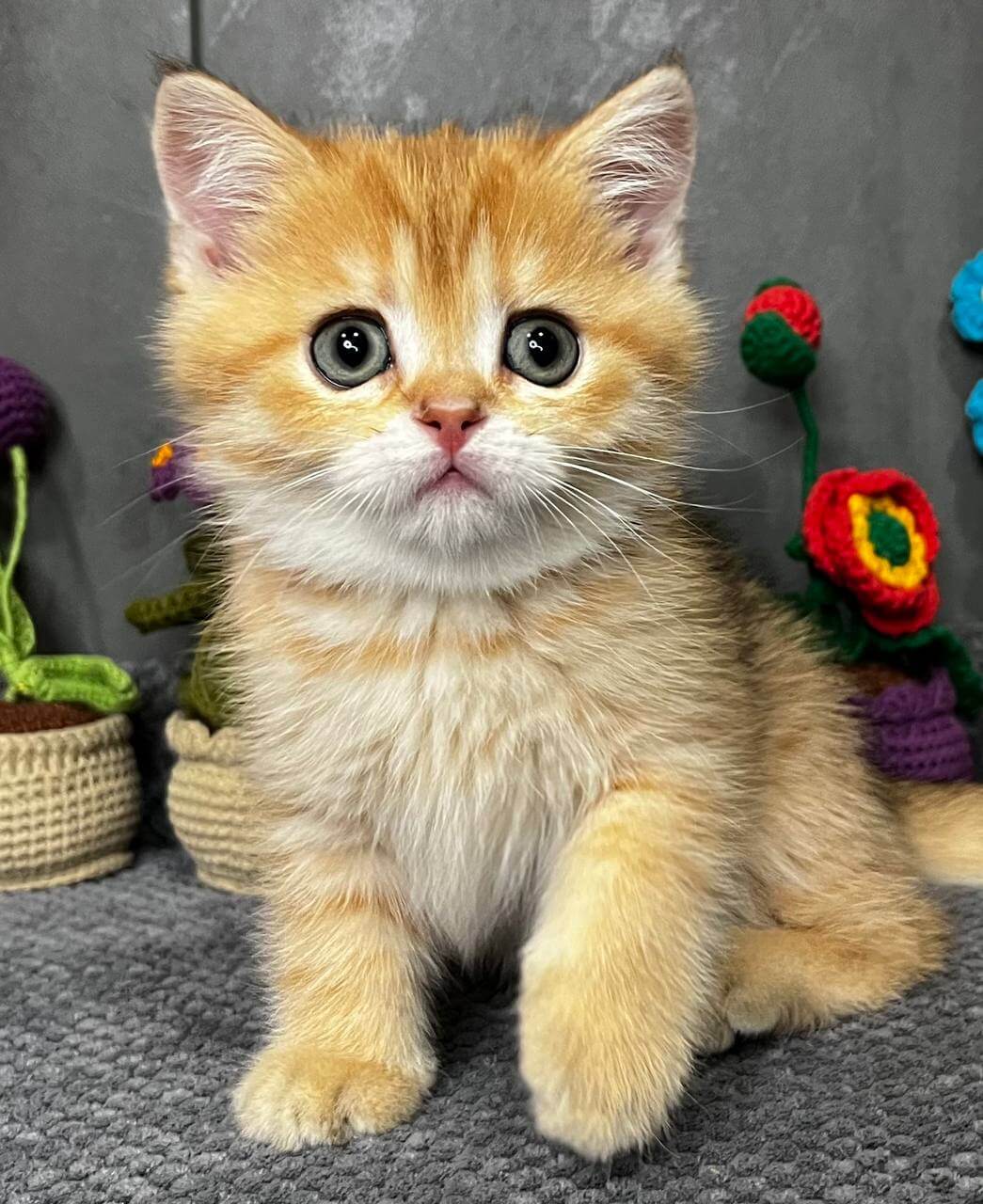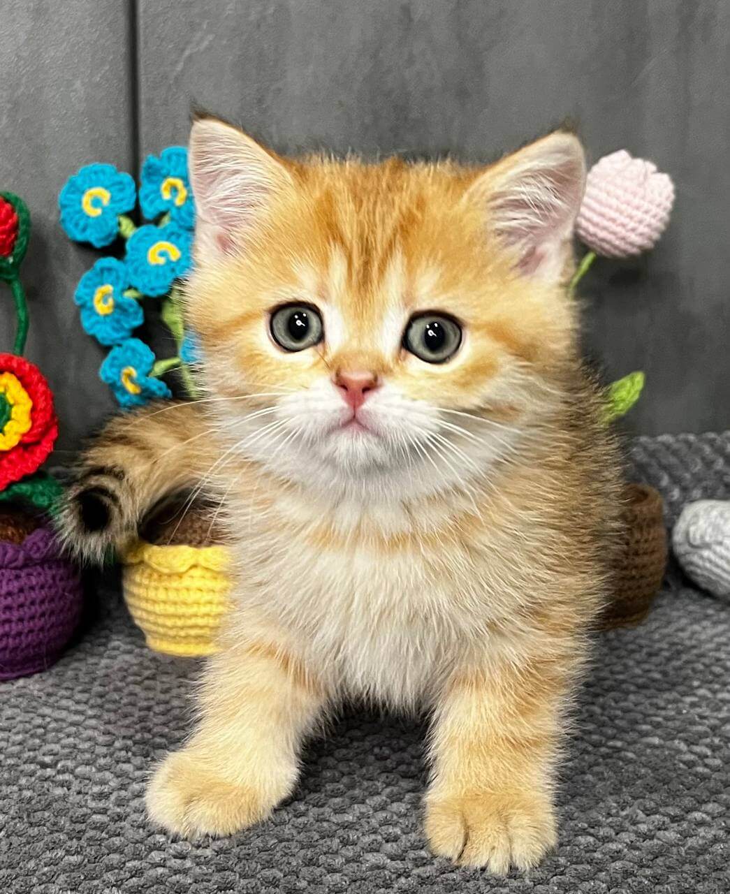From the moment Jenny hears your key in the door, she’s already trotting over on silent paws, tail gently waving in anticipation. Scottish Straights like Jenny form deep bonds—she curls at your feet as you read, yet transforms into a clever shadow, chasing the sunlight or quietly observing from the arm of the couch. Her mornings begin with a curious nuzzle and sweet, chirped conversation.