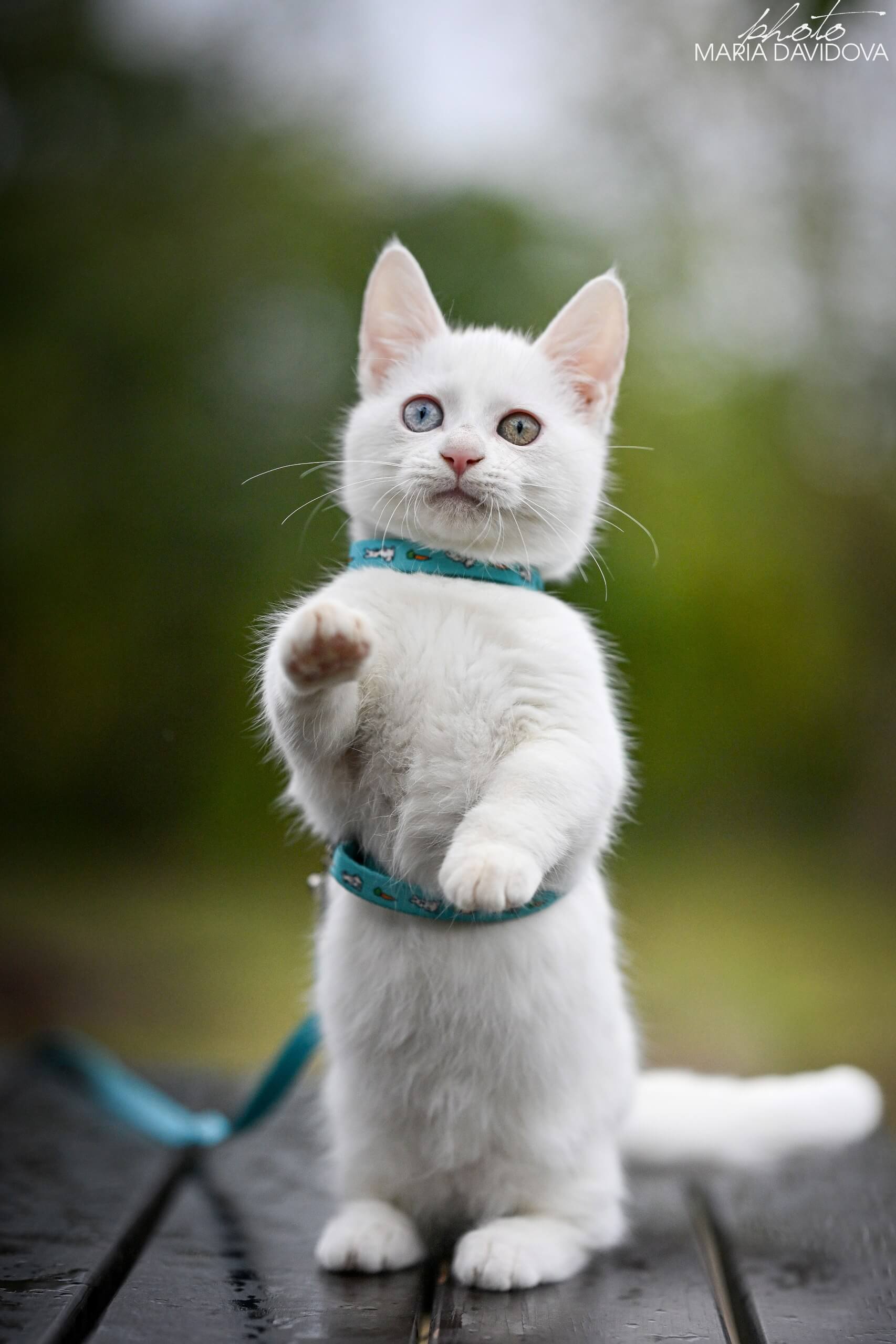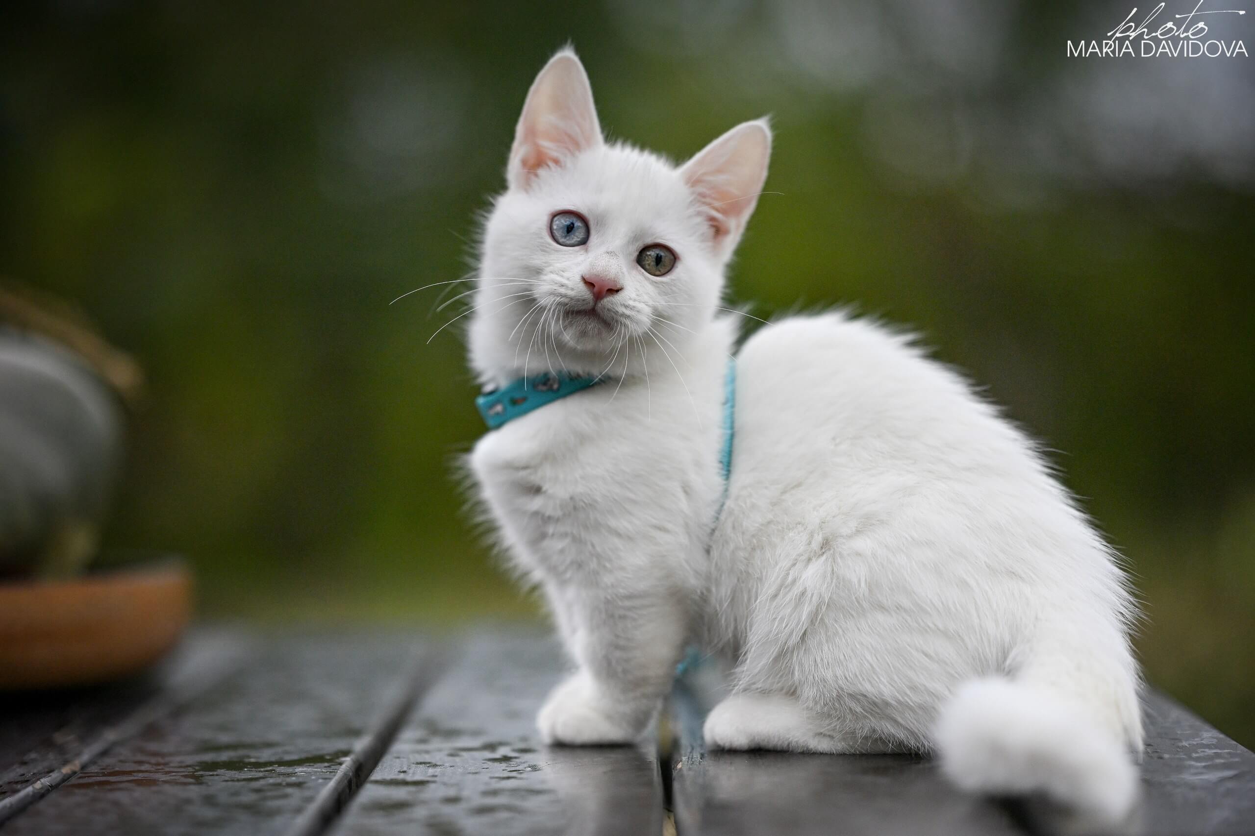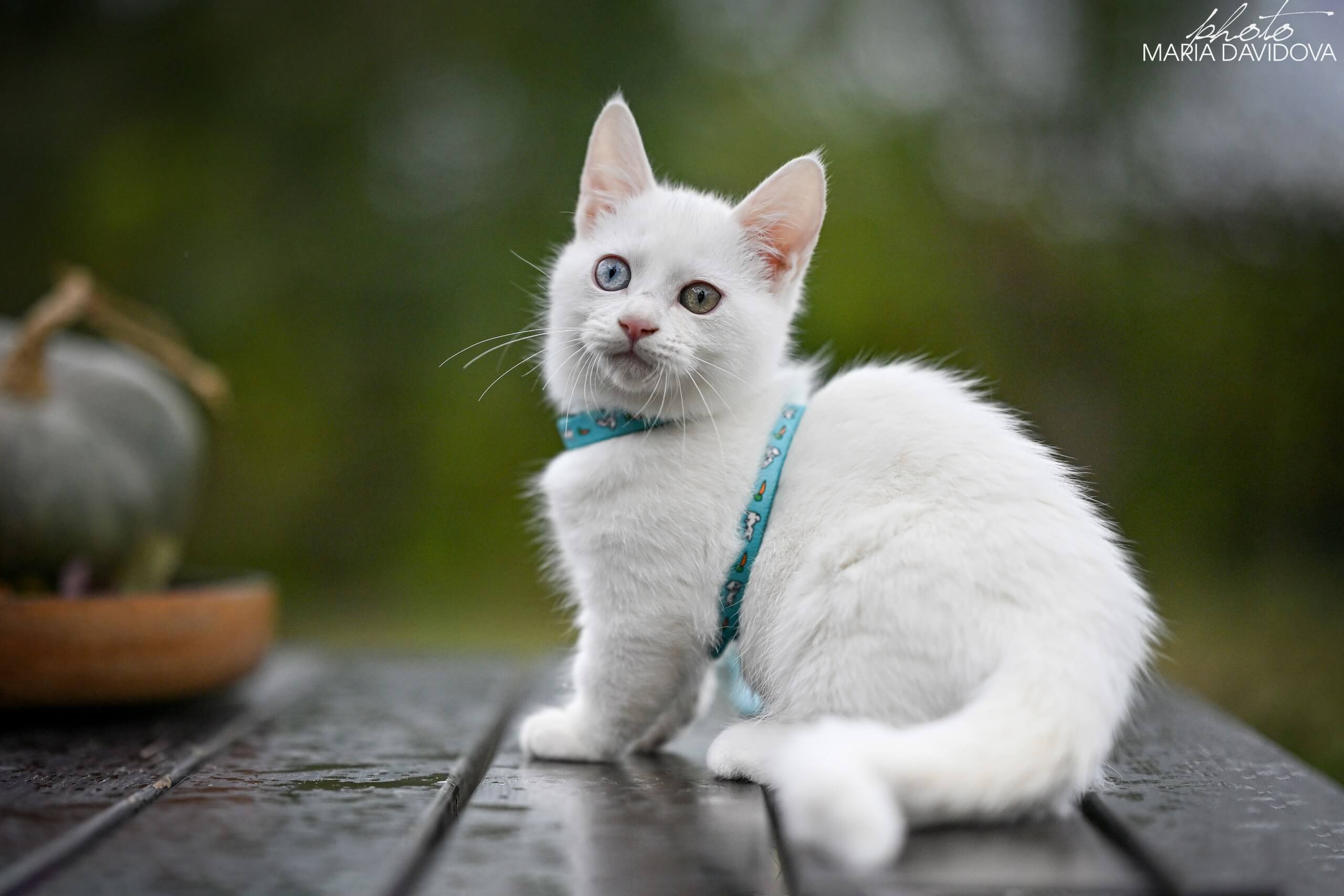 Meet Kalista, our snow-white Munchkin princess with enchanting odd-colored eyes — one sapphire, one amber — that will melt your heart the moment you meet her. She’s a gentle daydreamer who loves to curl up in your arms, her tiny paws kneading your shoulder as she greets you with the softest purrs. With her plush, silky fur and playful Munchkin strut, Kalista brings pure joy and warmth to every moment.