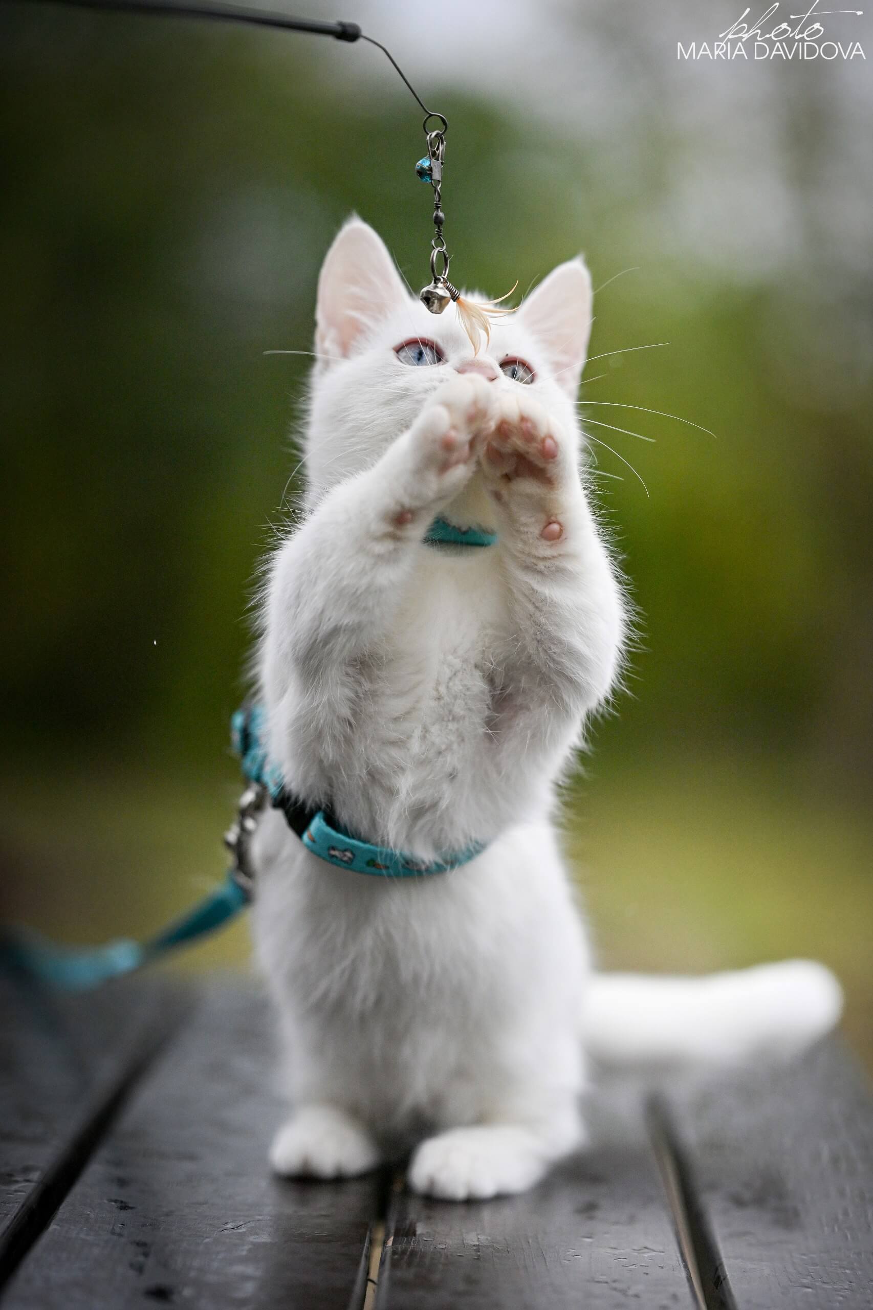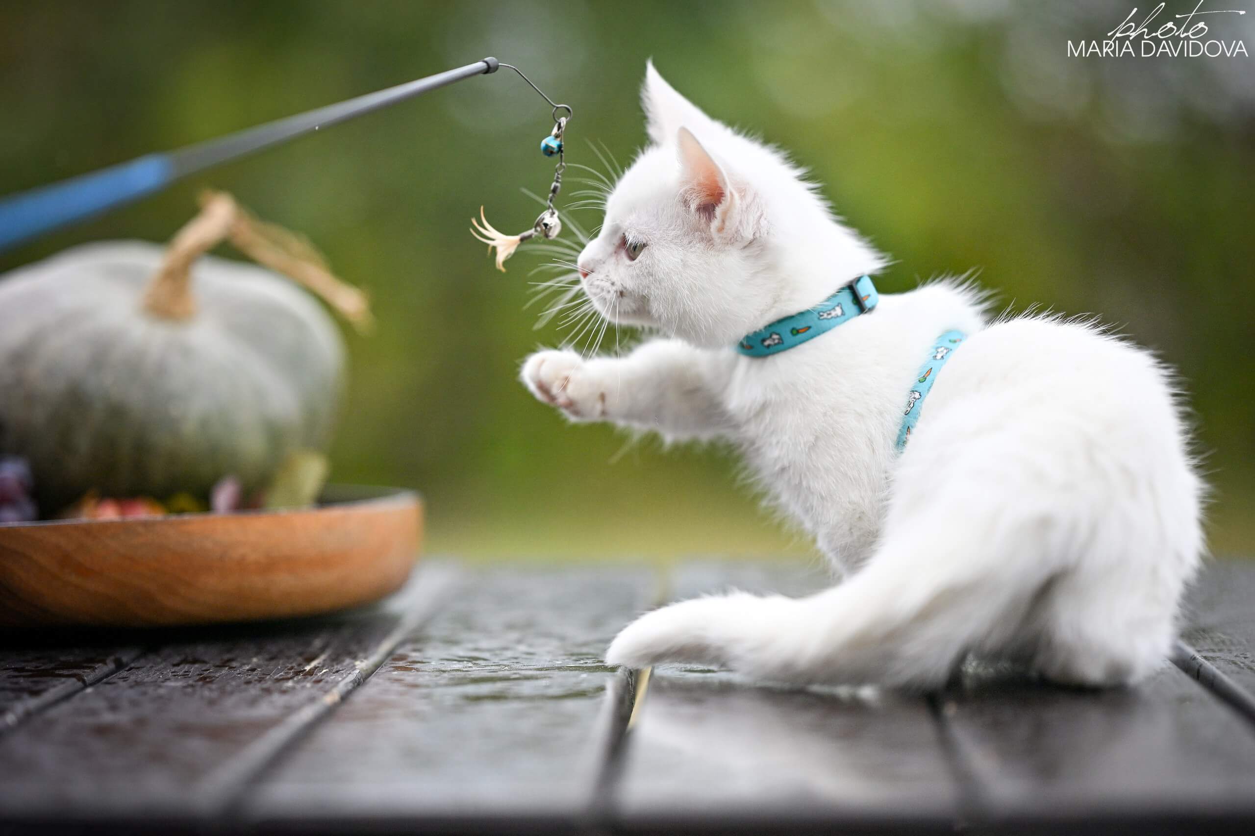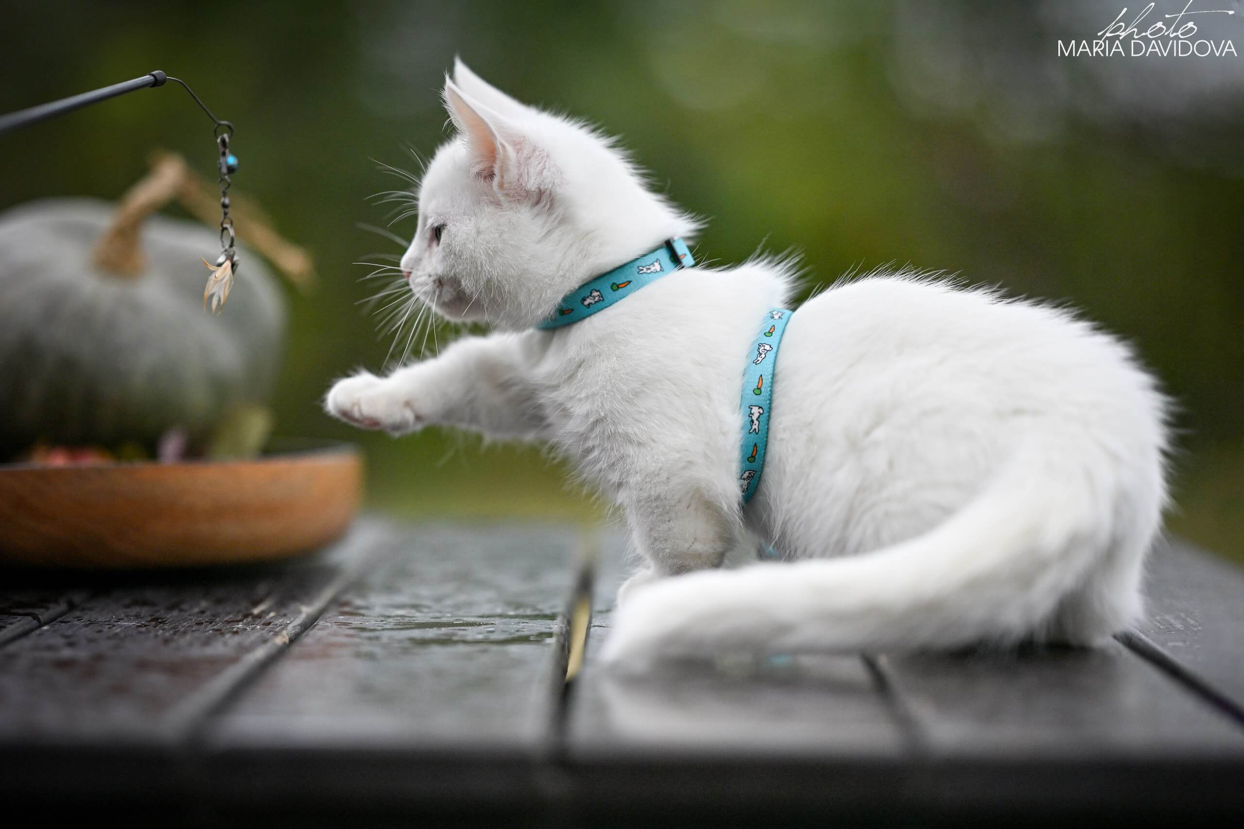 Meet Kalista, our snow-white Munchkin princess with enchanting odd-colored eyes — one sapphire, one amber — that will melt your heart the moment you meet her. She’s a gentle daydreamer who loves to curl up in your arms, her tiny paws kneading your shoulder as she greets you with the softest purrs. With her plush, silky fur and playful Munchkin strut, Kalista brings pure joy and warmth to every moment.