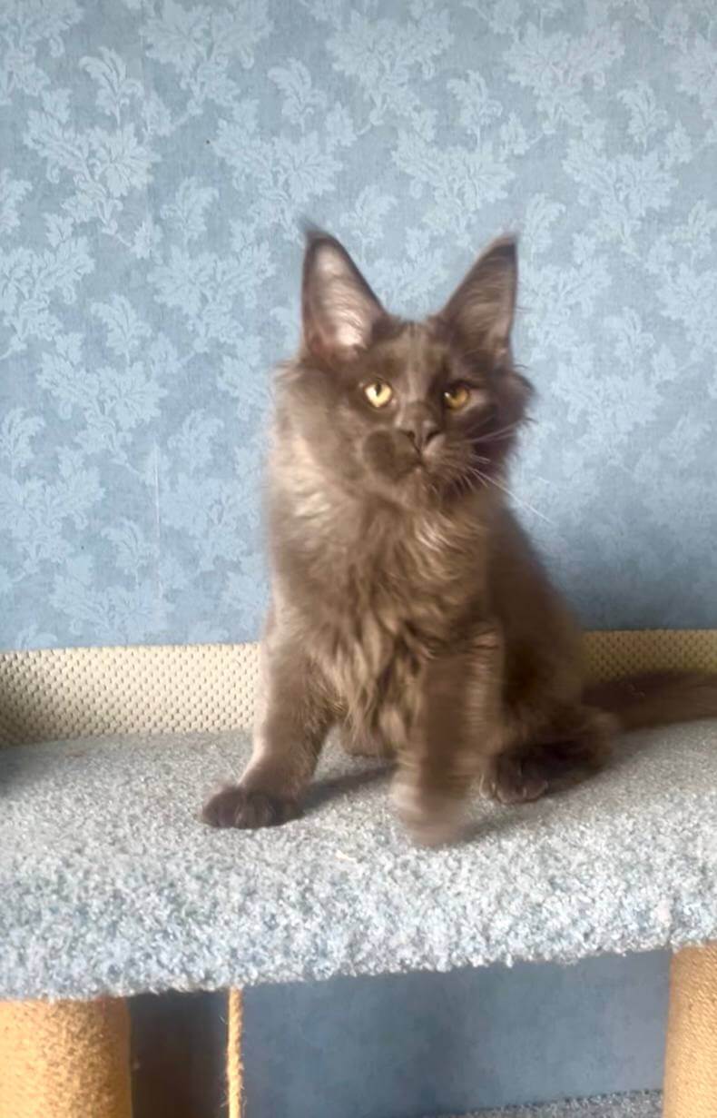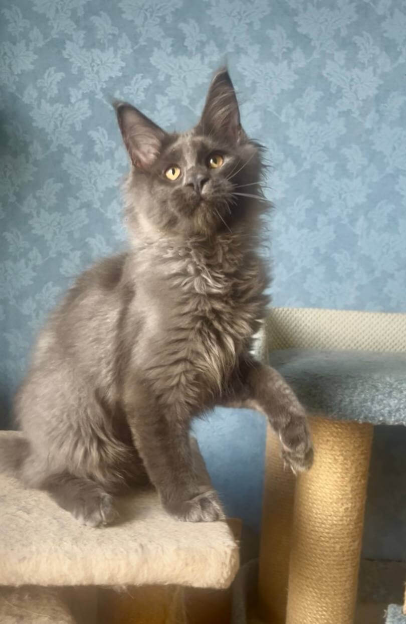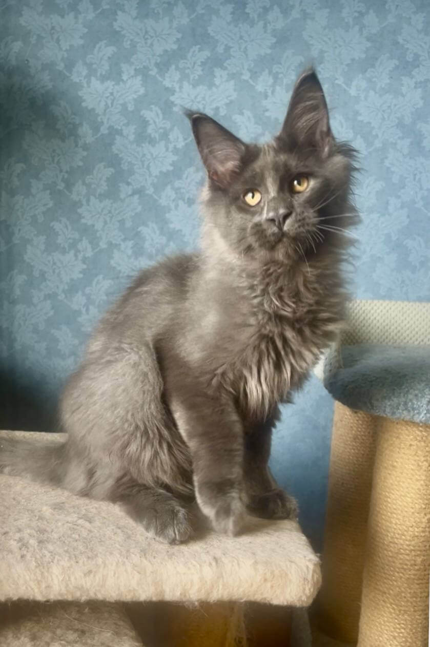 Meet Karat, a magnificent male Maine Coon kitten with champion bloodlines, available for sale. This stunning show-quality kitten boasts a striking blue coat and captivating yellow eyes. Born on June 27, 2025, Karat will be ready to join his new family on October 27, 2025. He’s registered and comes with conditional pedigree options; details and pricing can be requested. Karat will be neutered/spayed, making him a perfect pet addition. While currently located in Europe, he is available for reservations in the USA via our website, with pick-up in Wood Dale, Illinois, or delivery to other states from Chicago. We offer 7-day support for all kitten needs, ensuring a smooth transition to his new home. Secure your reservation with a $500 non-refundable deposit. For more details or payment options, please contact us. Follow our Instagram for adorable updates of our kittens playing!