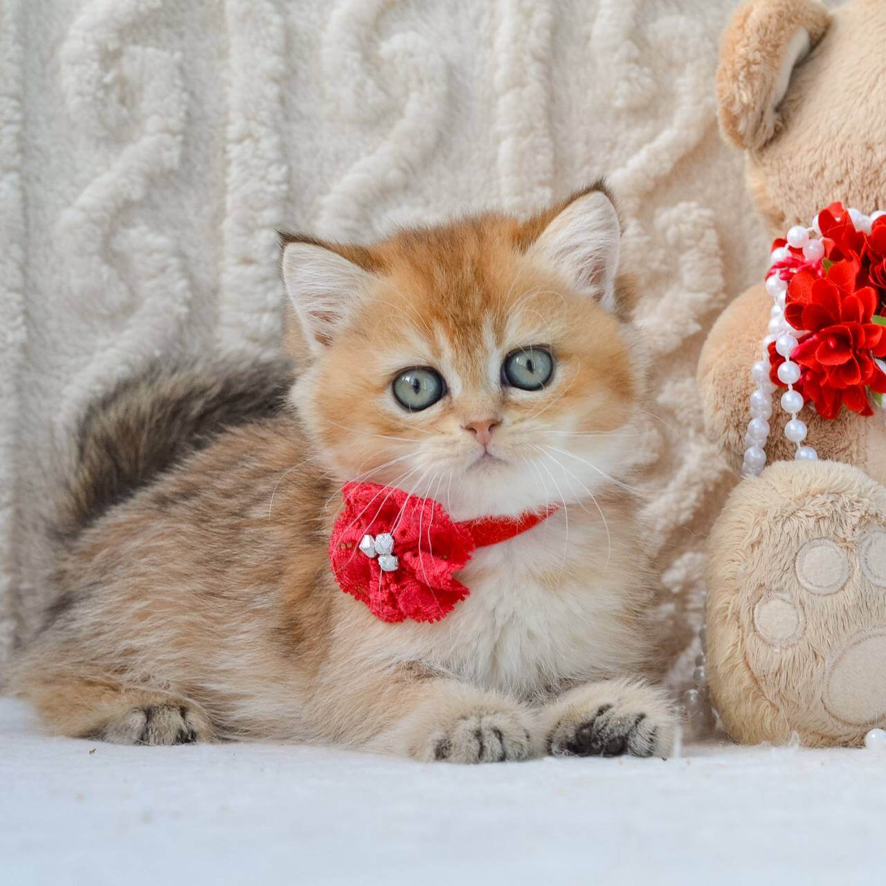 Meet Karina—the golden touch your heart has been waiting for. This enchanting British Shorthair girl is wrapped in a plush, black golden tabby ticked coat that glimmers with every gentle stroke, and her sweet green eyes sparkle with irresistible curiosity.