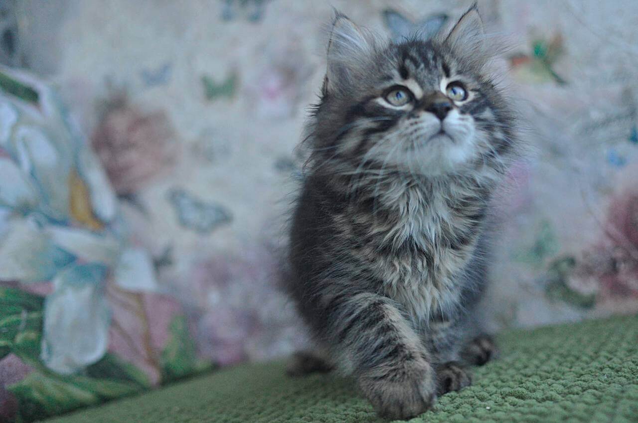 Meet Karl, a stunning male Siberian kitten with striking black spotted fur and captivating yellow eyes. Born on June 20, 2025, Karl hails from champion bloodlines and embodies show-quality standards. He is ready to join his forever home from October 20, 2025. Located in Europe, Karl is available for reservation in the USA through our website and can be picked up in Wood Dale, Illinois, or delivered to other states from Chicago.