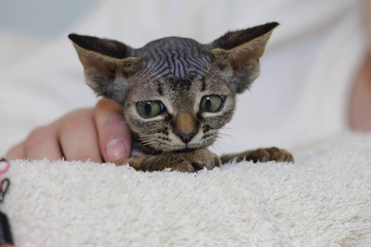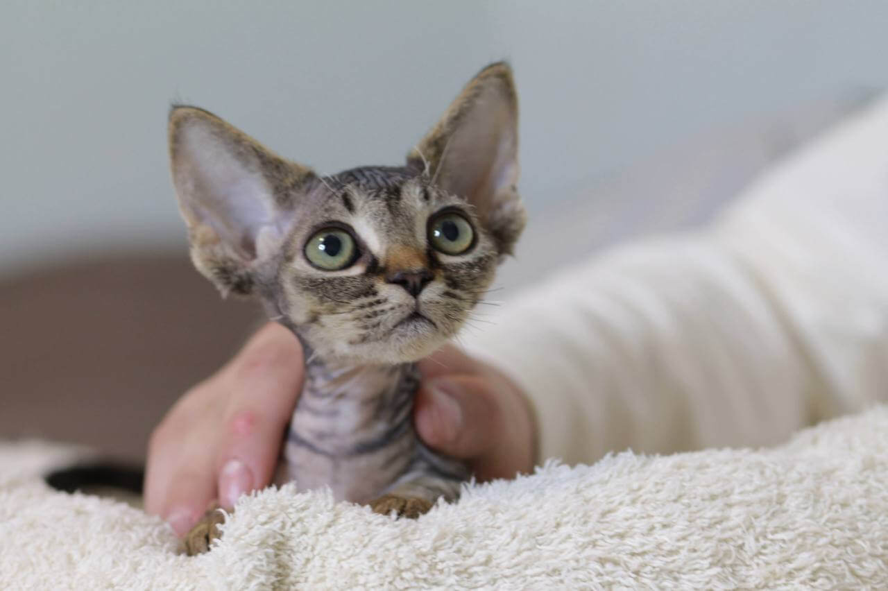 Meet Kate – your new heart-stealer! This enchanting Devon Rex kitten will melt your worries away with her velvet-soft purrs and sparkling green eyes, lighting up every room she enters.