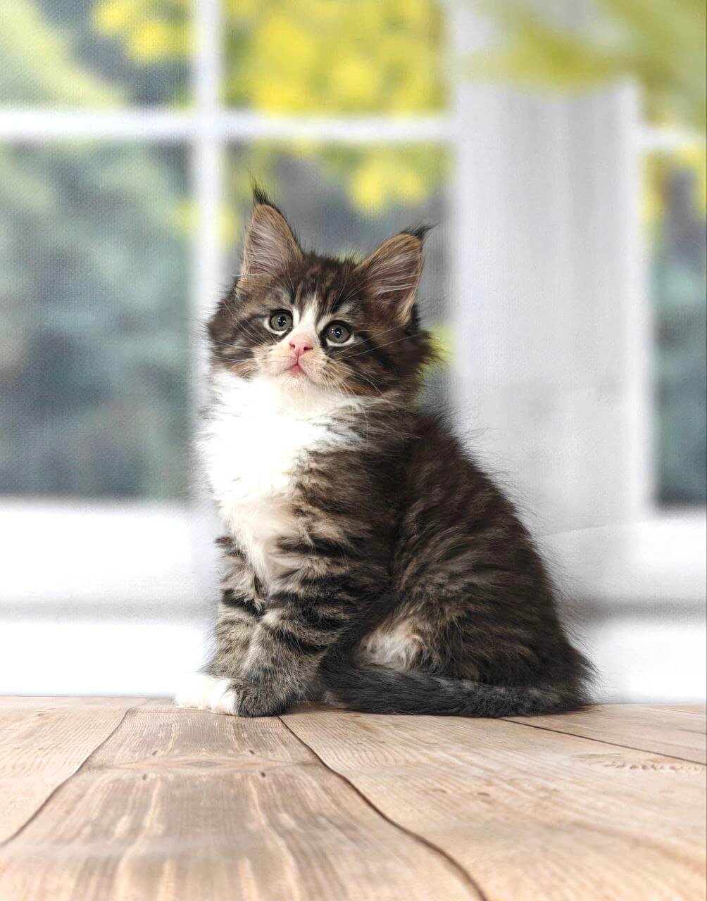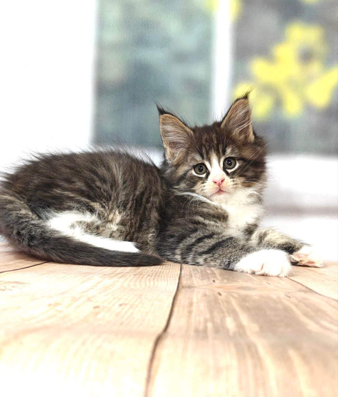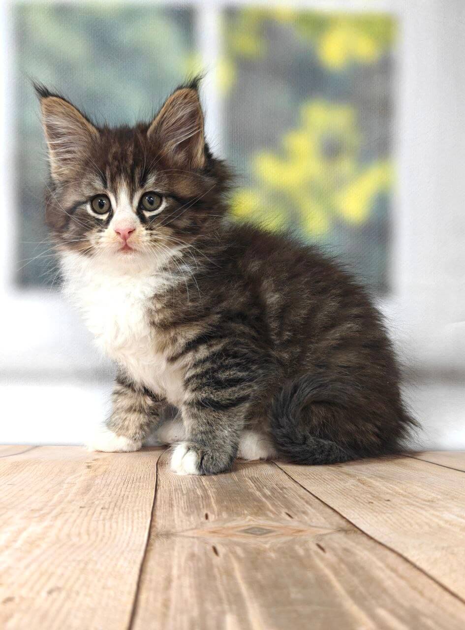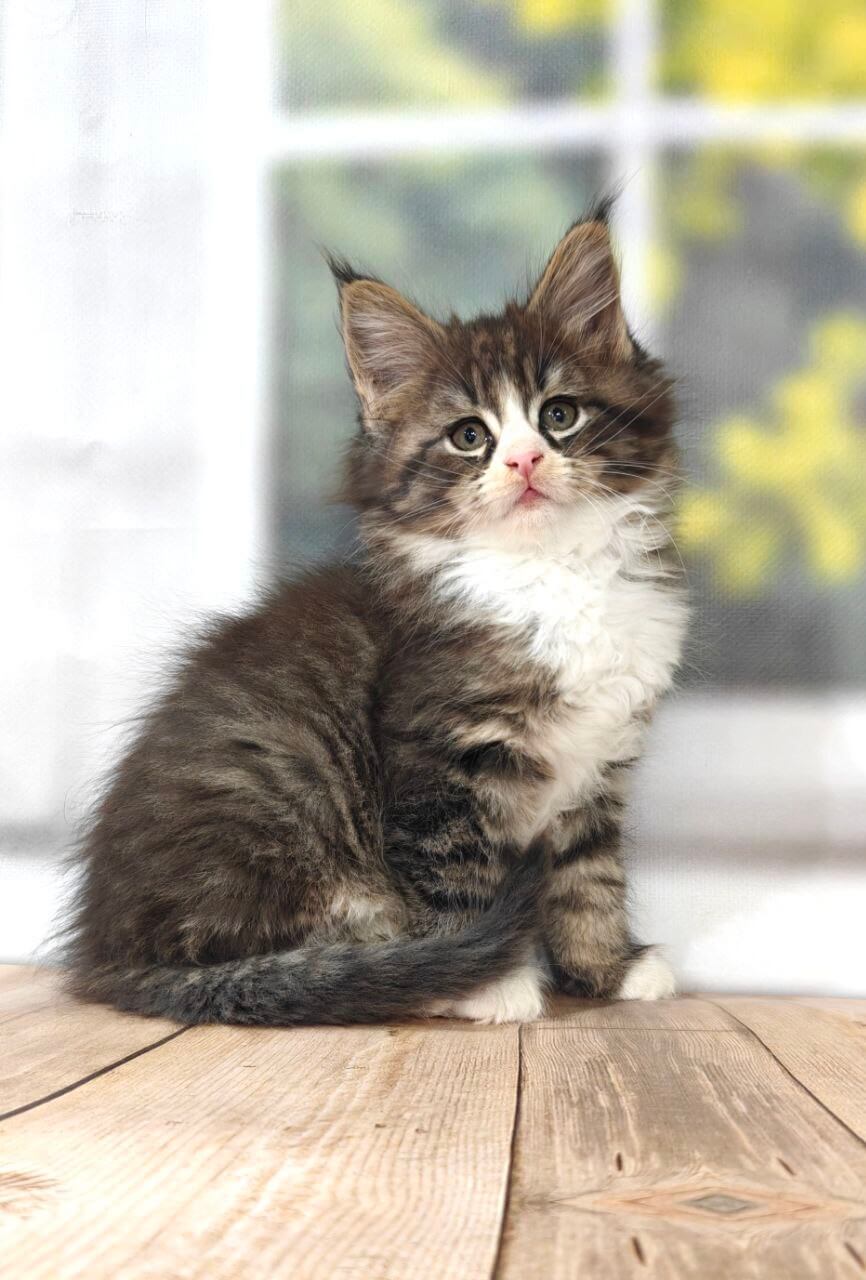 From the very first moment, Kay’s golden-yellow eyes seek yours with gentle curiosity, drawing you into a world of soft purrs and playful secrets. His sleek tabby coat, brushed with snowy white, is as inviting as a hug — the perfect balance of wild beauty and sweet innocence. Kay is a curious explorer, quick to chase a feather and just as quick to curl up in your lap, melting into your touch with a soft, rumbling gratitude.