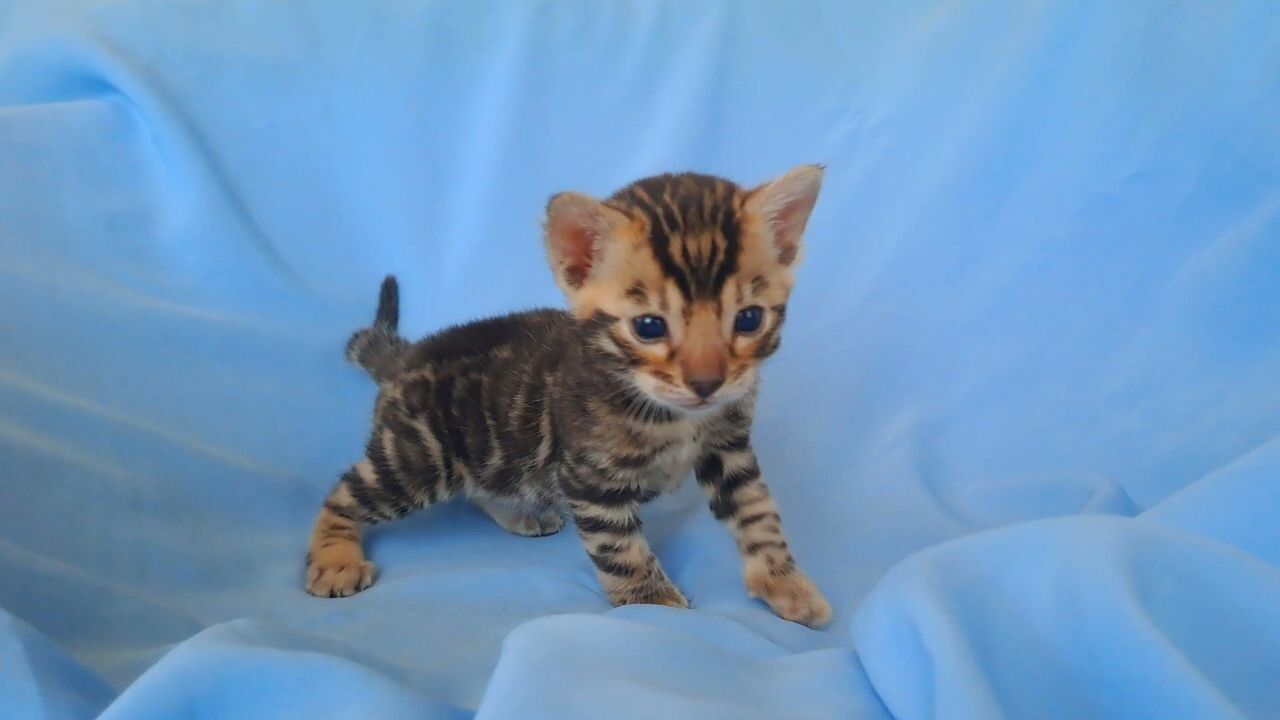 Confident and delightfully tactical, King has a way of greeting you with a gentle headbutt, winding sinuously around your ankles before launching into an acrobatic chase after his favorite feather wand. He’s drawn to high vantage points, where he surveys his world, but he always circles back, curling by your side with a loyal softness unique to Bengals. Even his naps radiate intent—one paw draped over you, yellow gaze half-open.