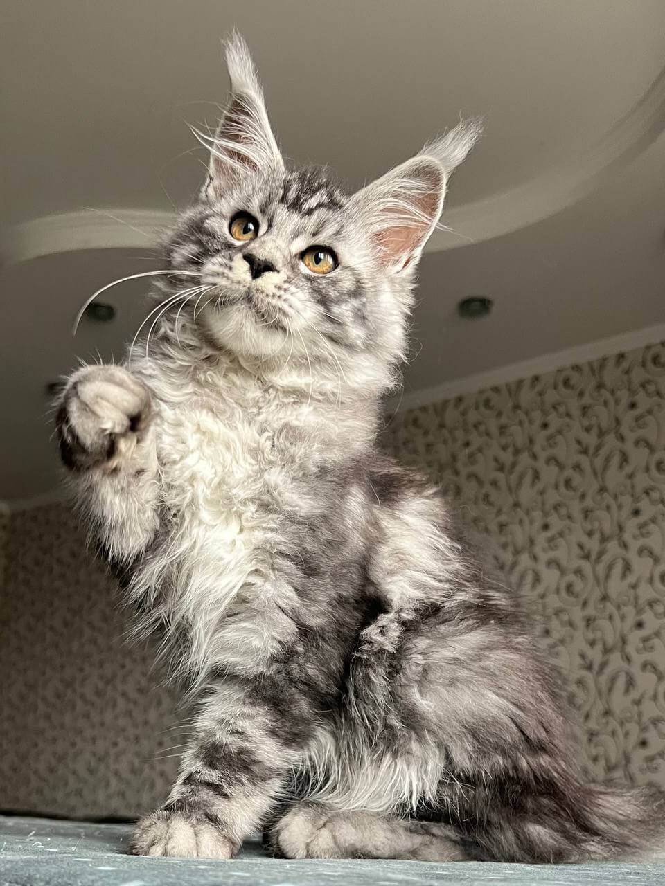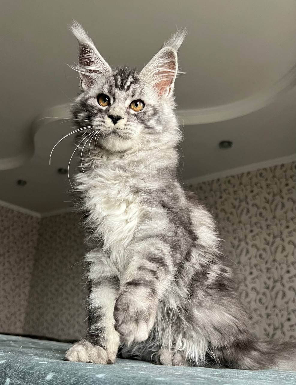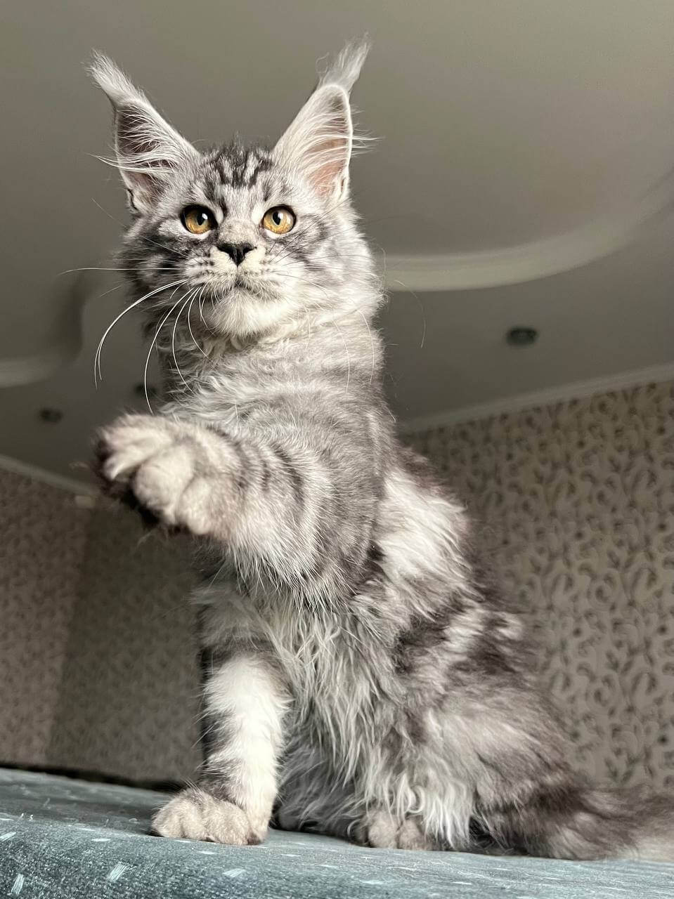Meet Kira – a Black Silver Tabby sweetheart ready to fill your home with warmth and gentle purrs. With her mesmerizing yellow eyes and unique, shimmering coat, Kira is a true show-quality beauty from champion bloodlines. Her tender spirit shines through every playful moment; she adores gentle cuddles, soft nuzzles, and lounging in the sunlight by your side.