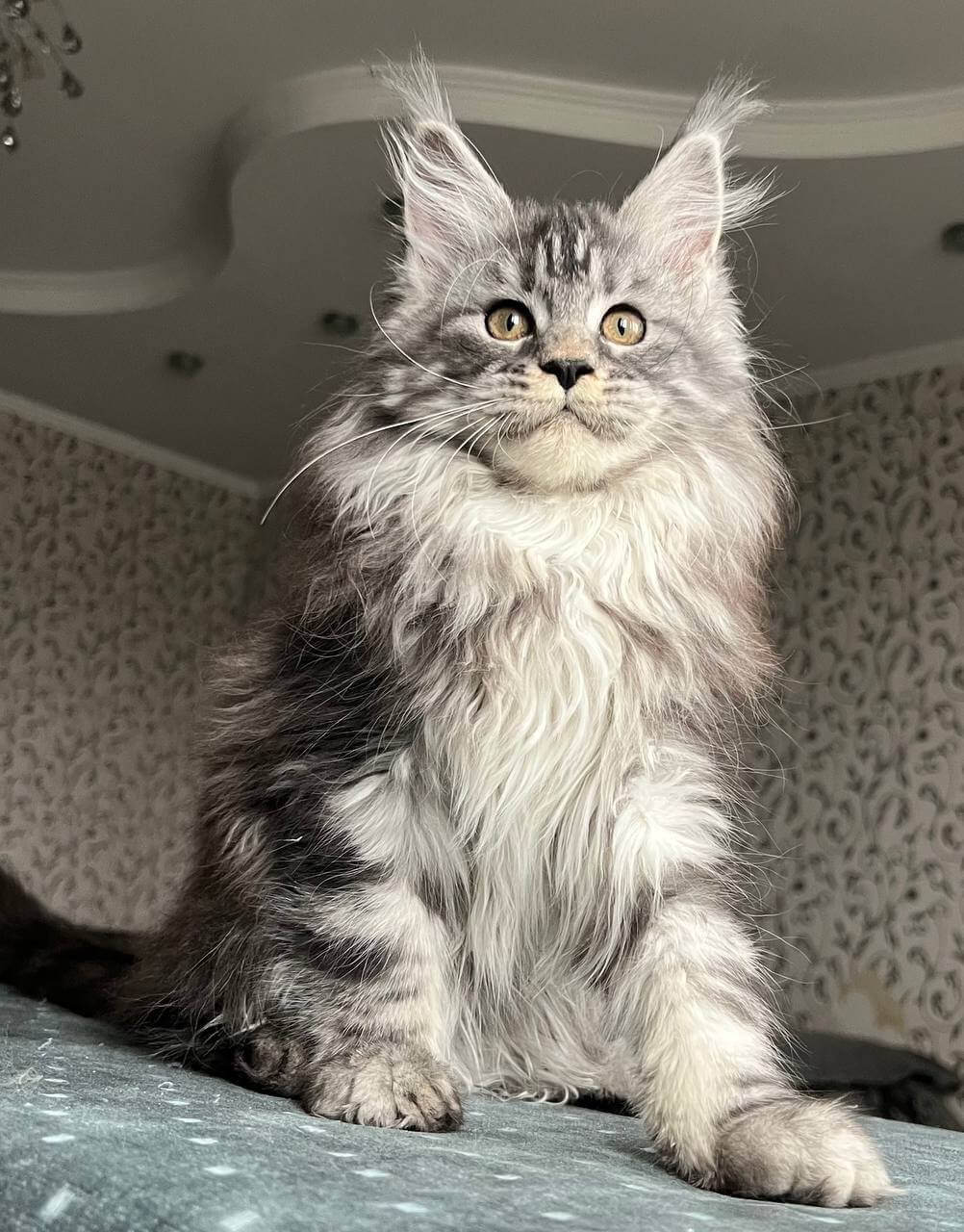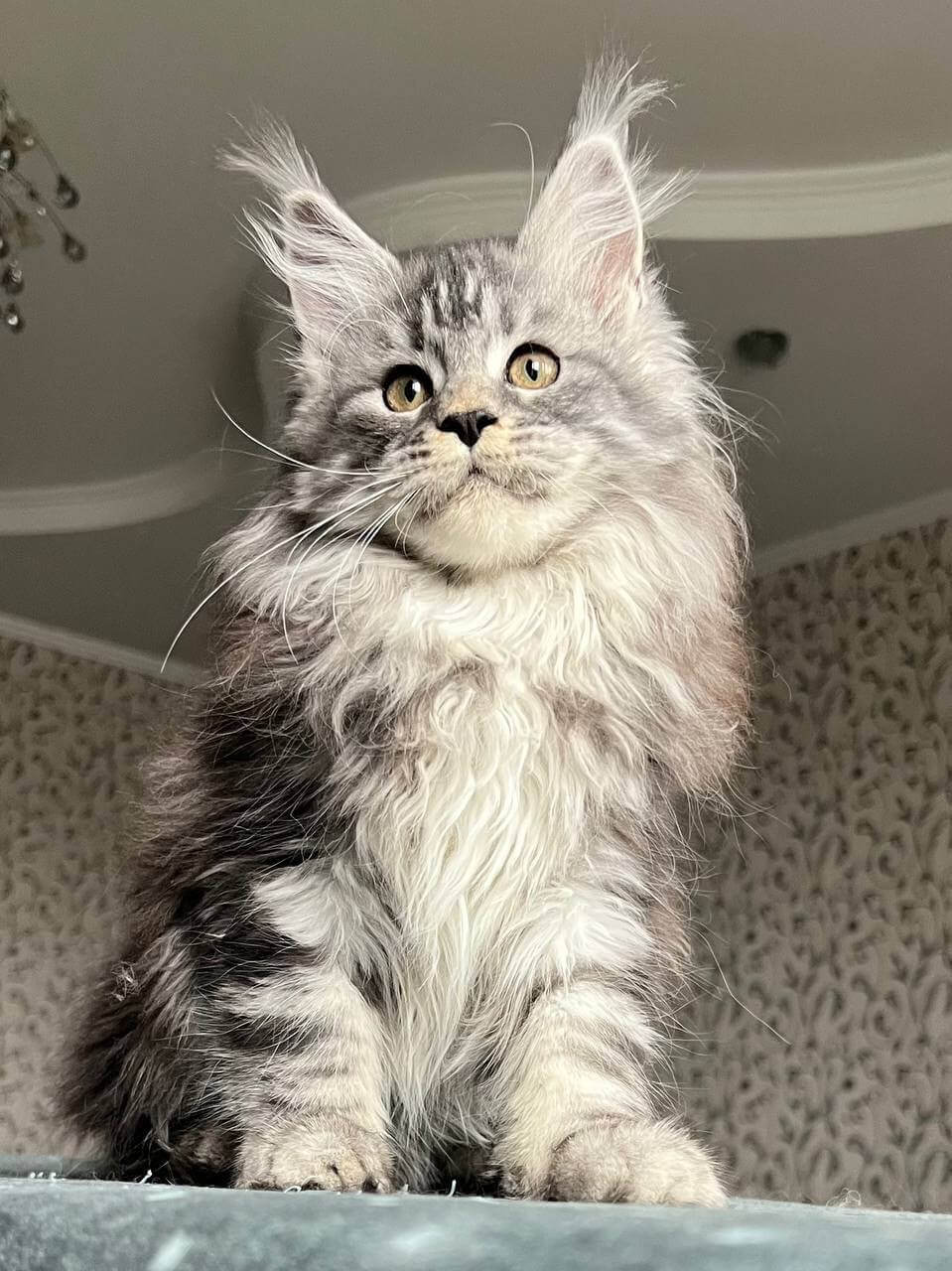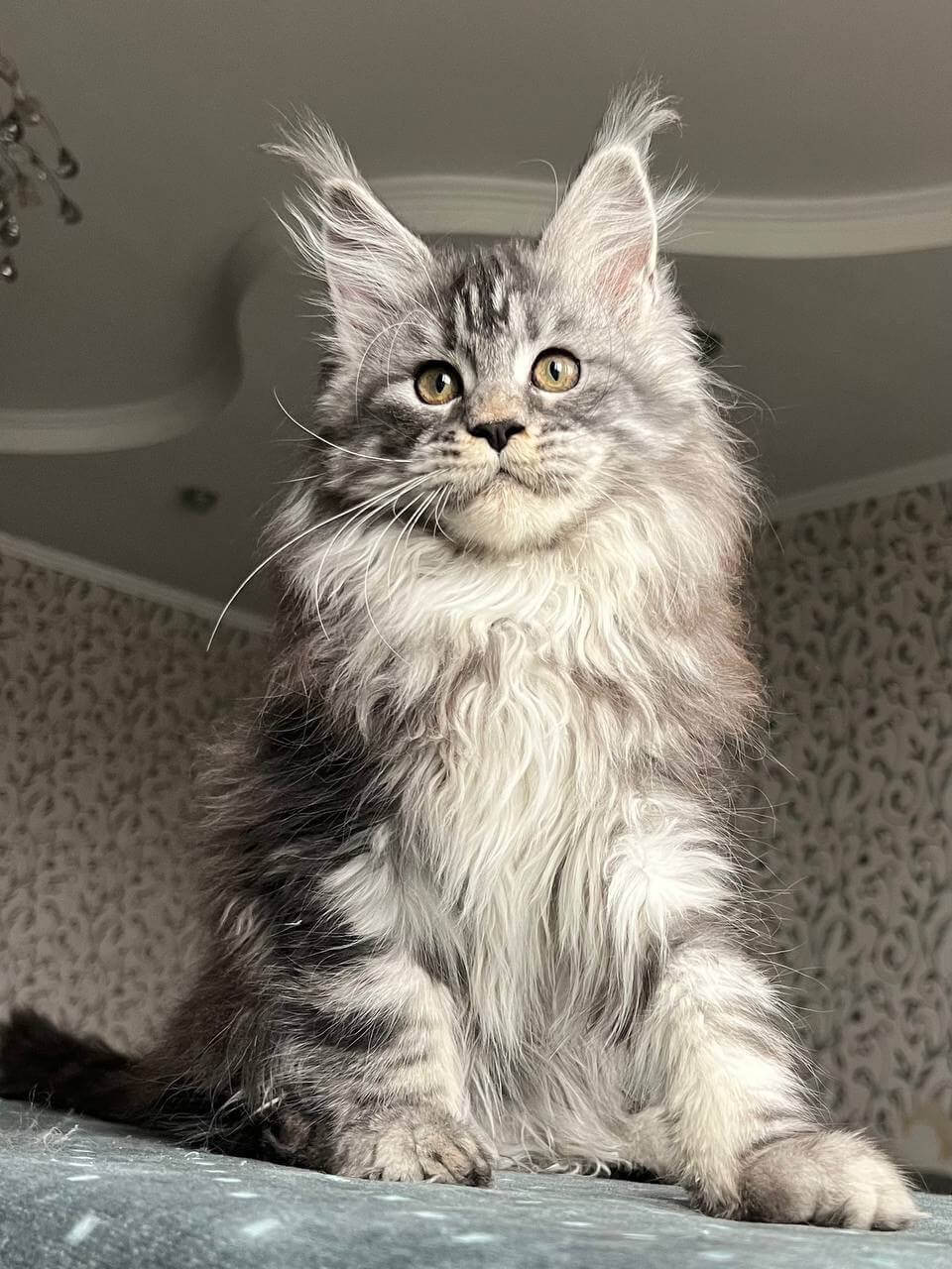 Meet Kitti, a picture-perfect Black Silver Tabby girl with dreamy yellow eyes that shimmer with gentle curiosity. From the moment you cradle her in your arms, you’ll feel her soft purrs and sweet warmth melt your heart—a lifelong companion in a silky, silver-striped coat.