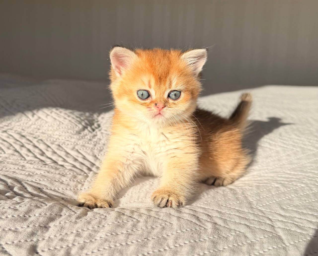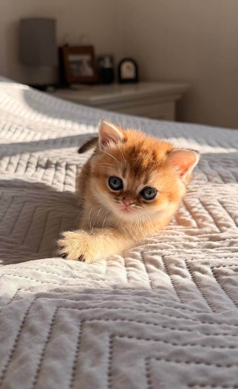 Kitty greets you at the door with a gentle tail curl, content to sit at your feet and purr herself into a nap on your lap. Curious yet composed, she inspects new toys with careful precision, often draping herself on sunny windowsills while observing the world. Scottish Straights are famously serene, and Kitty’s trusting, close companionship will make every ordinary moment special.