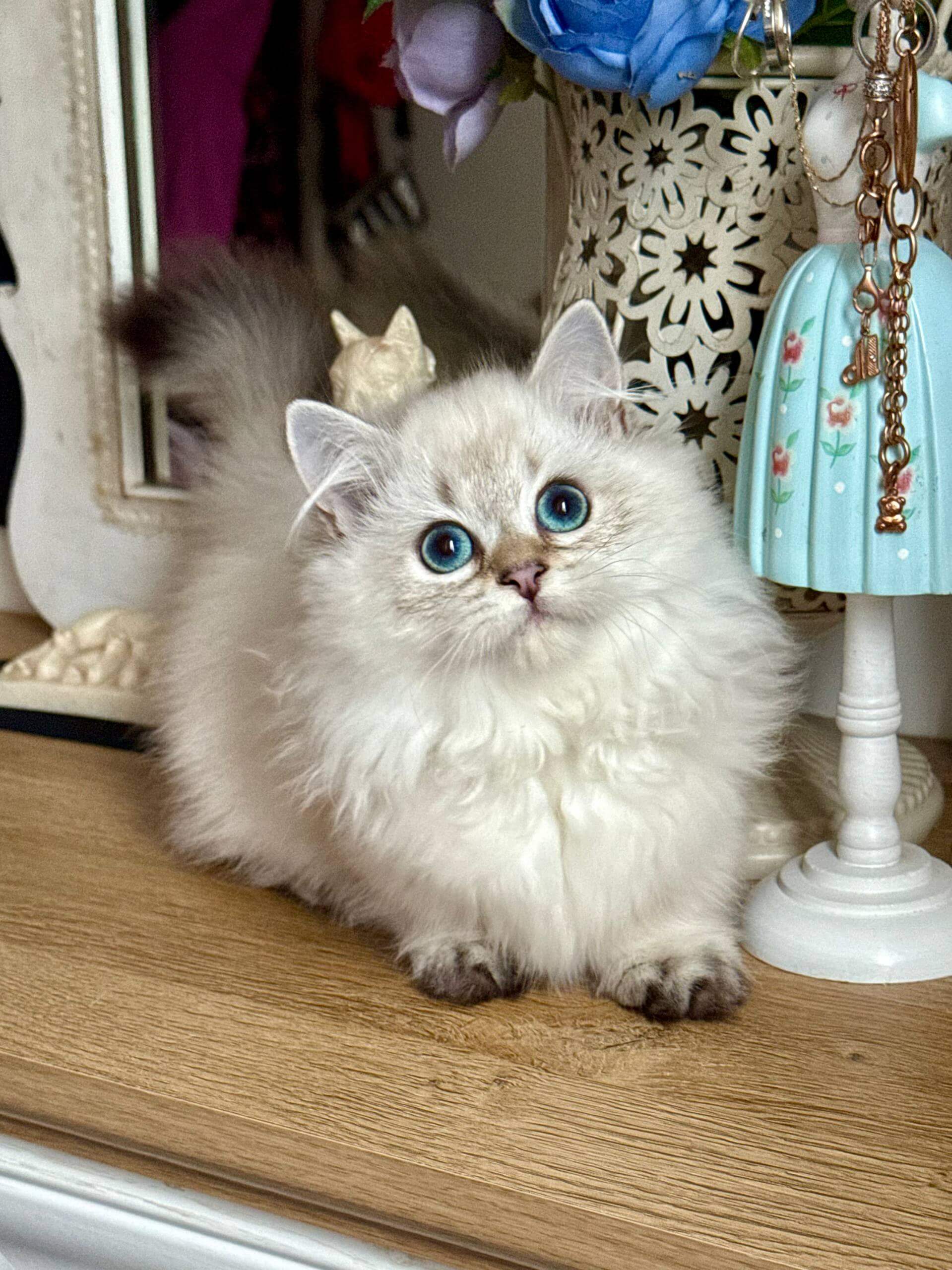 Knopa is all grace and playful sparkle. She’s a show-quality girl—elegant yet full of mischief, with a curious streak and cozy love for laps and feather toys. Her sweet nature and soft touch make every day brighter.