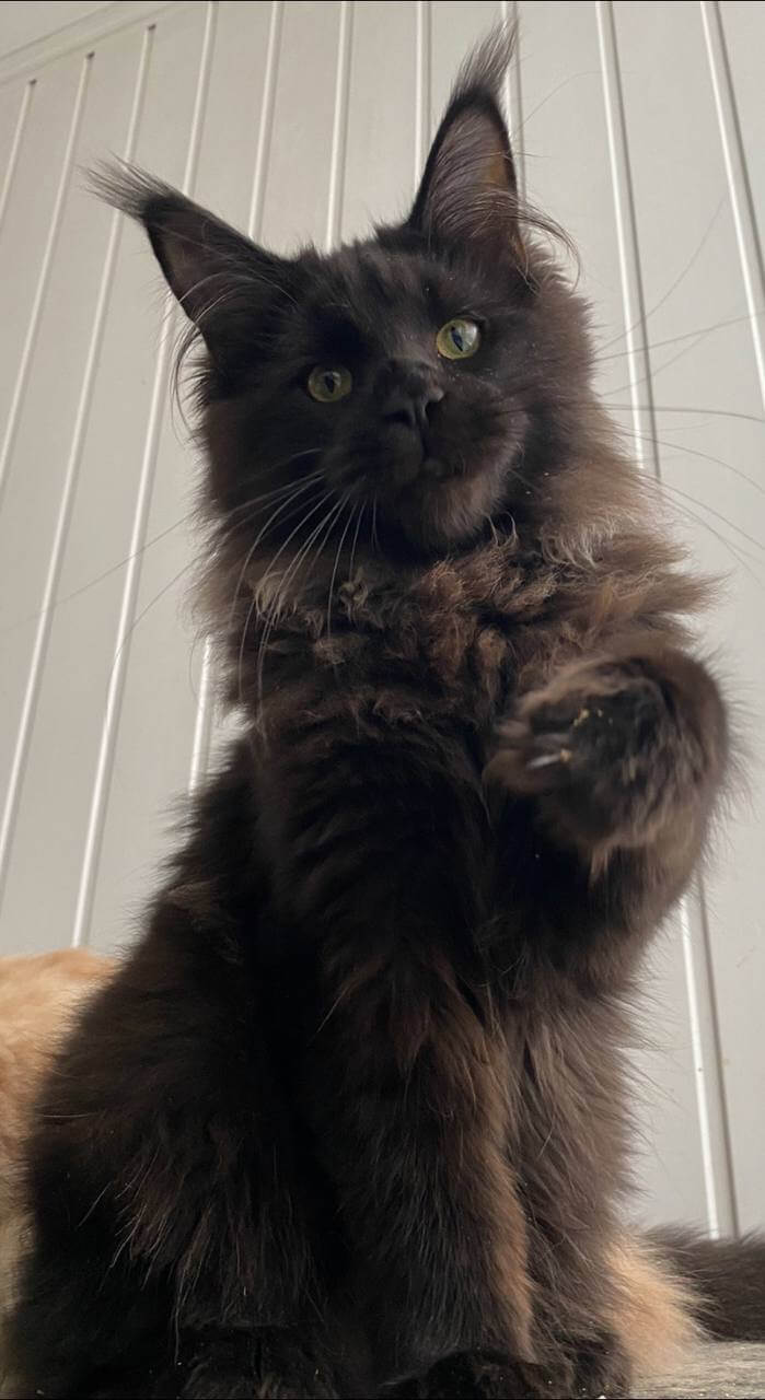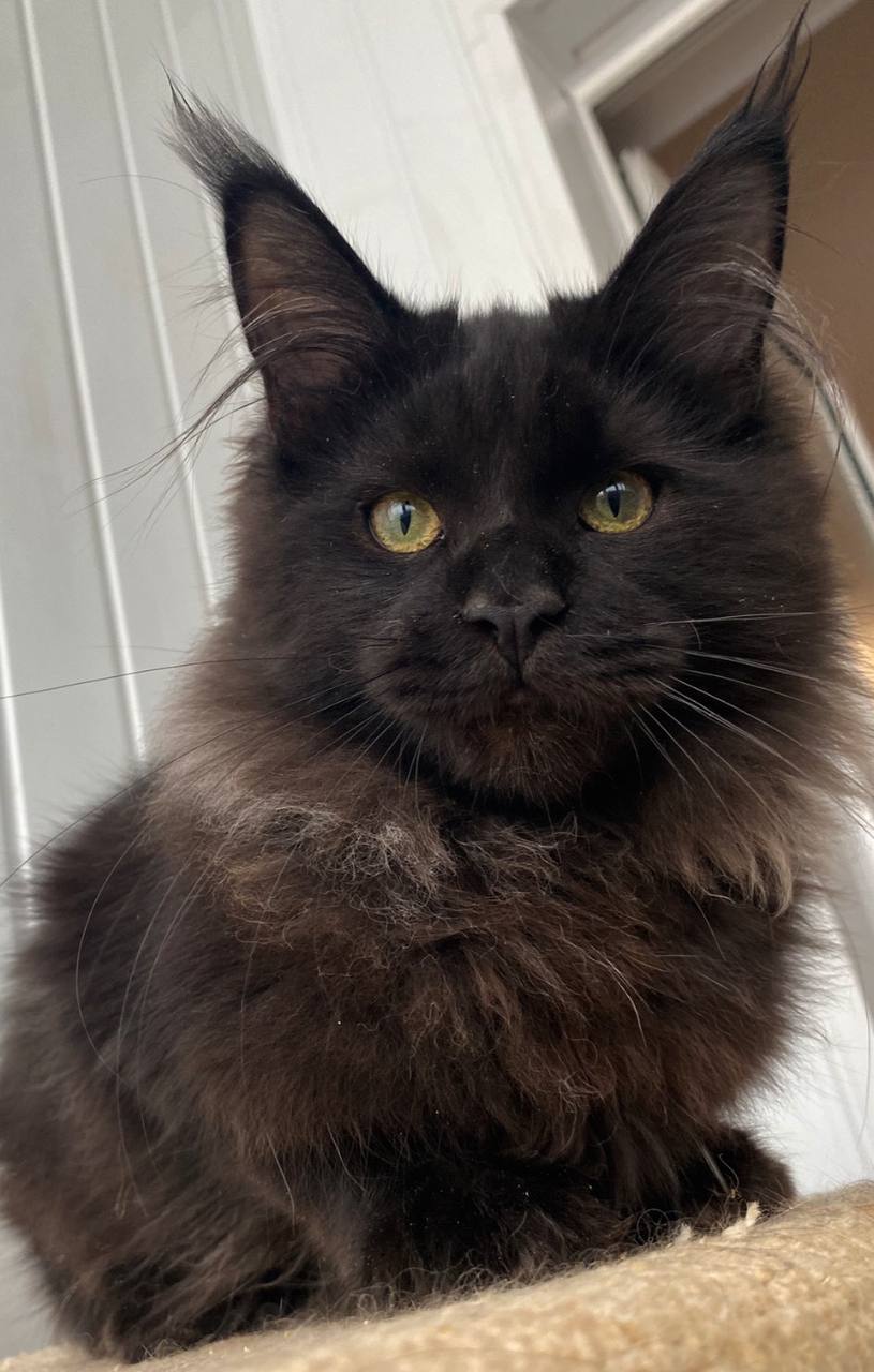 Meet Kosmos – your new bundle of pure velvet joy, ready to fill your arms and home with warmth and wonder. This striking black male kitten, with soulful yellow eyes that shine like sunrise, is eager to charm his way into your heart and become your loyal companion.