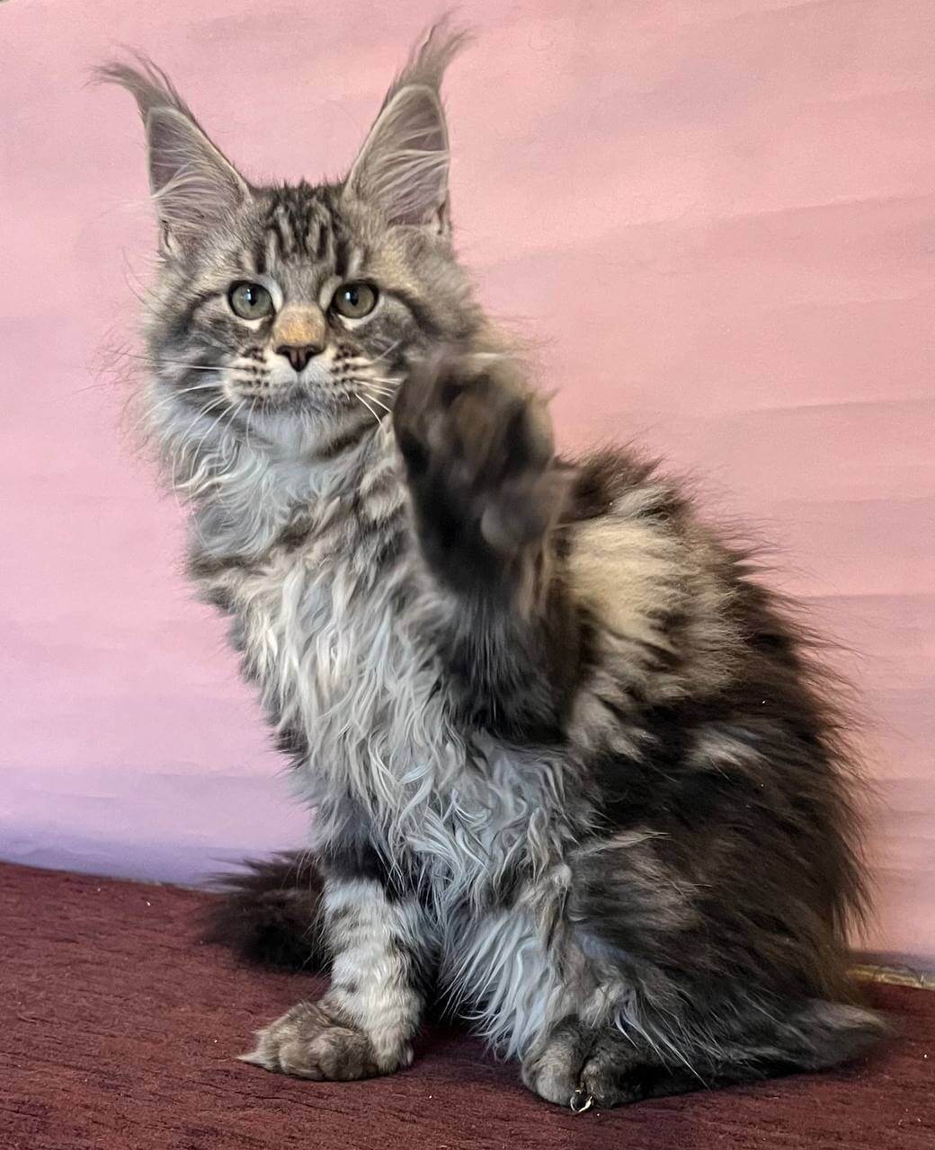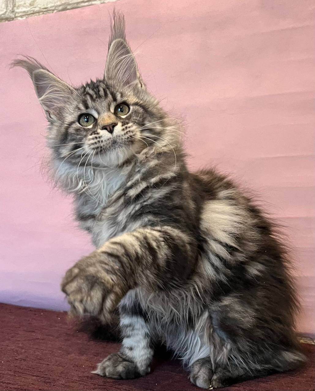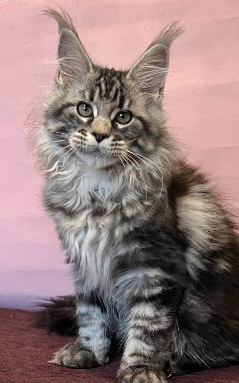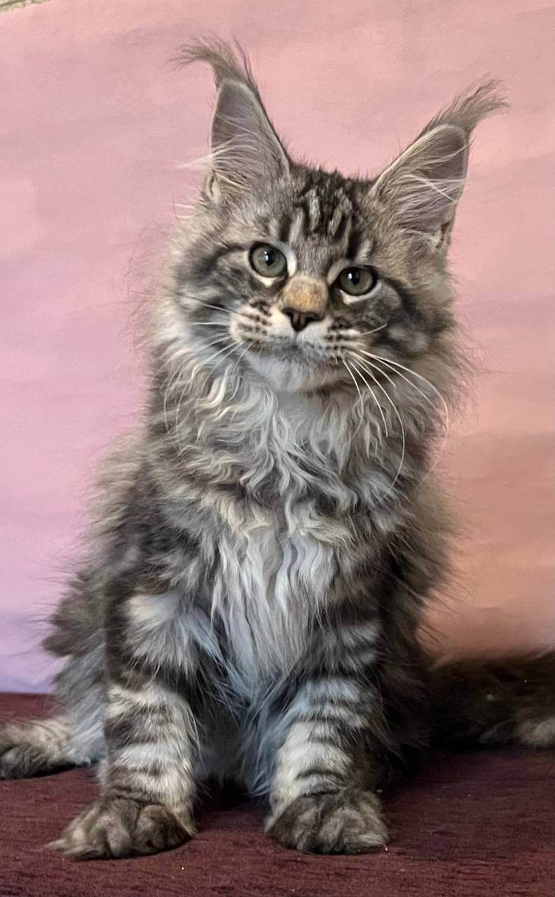 Meet Kris—your future heart-stealer, waiting to curl up in your arms and fill your days with gentle purrs and golden-eyed wonder. This precious Black Silver Tabby Blotched girl is more than a kitten; she’s a bundle of silky warmth with a gaze that seems to understand your every emotion.