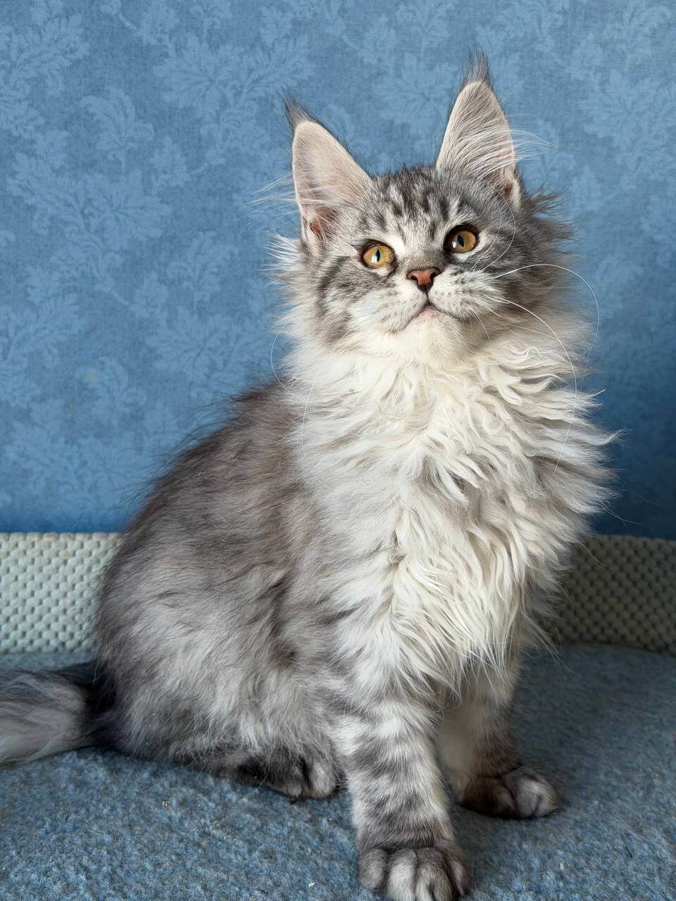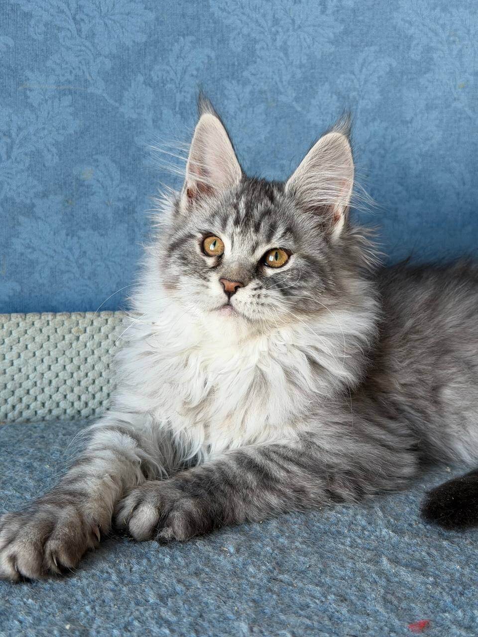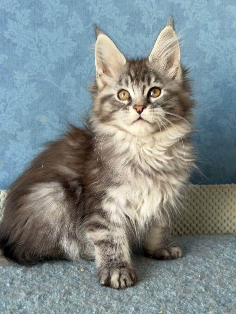 Meet La Luna, our gentle girl with a silvery dreamcoat and brilliant golden-yellow eyes that will melt your heart at first glance. Wrapped in plush black silver tabby fur, she’s a purring bundle of affection who adores warm cuddles and quiet moments in your arms. Her playful nature shines as she follows you around with featherlight paws, ready for every adventure and every soft snuggle at day’s end.