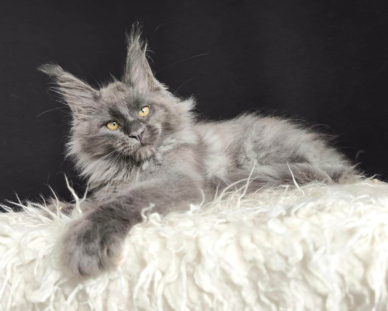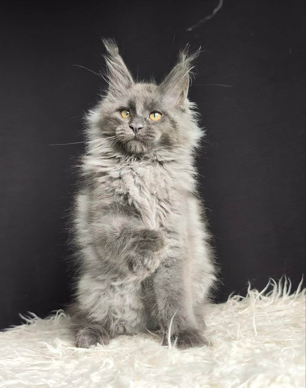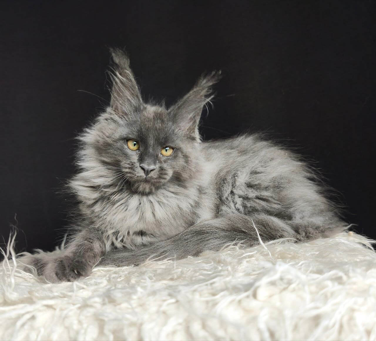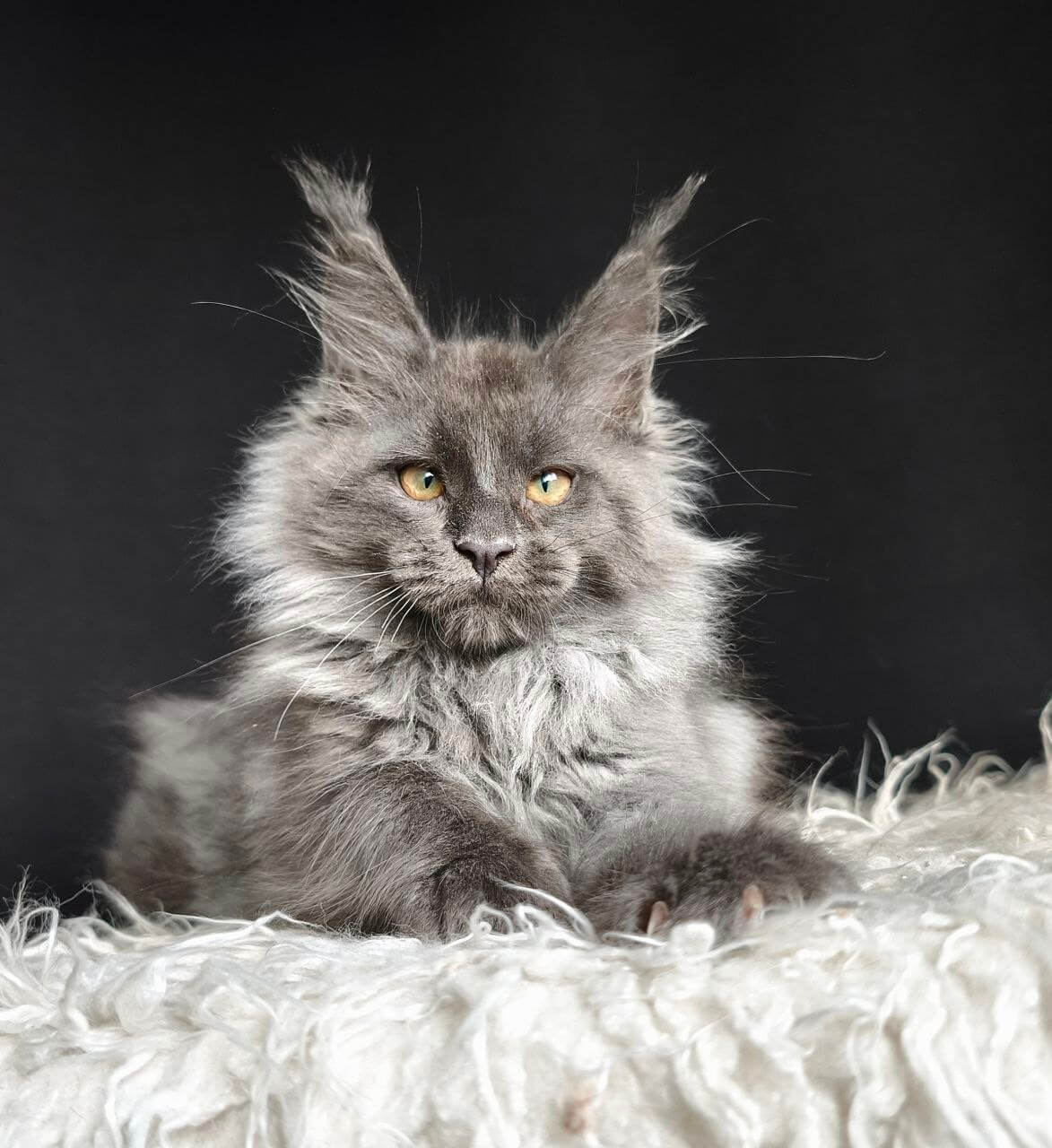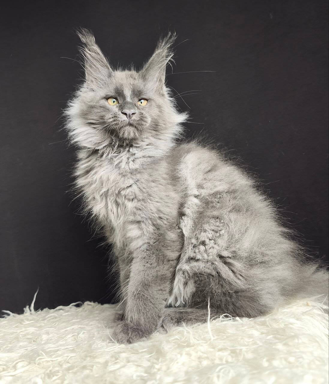 Born from champion bloodlines, Lazurite offers both show-stopping beauty and an affectionate, playful temperament—a classic Maine Coon blend of intelligence, curiosity, and devotion. Picture a loyal companion who’ll greet you with a whispering tail, follow you from room to room, and melt into your embrace. Lazurite’s gentle gaze and loving spirit are impossible to resist.
