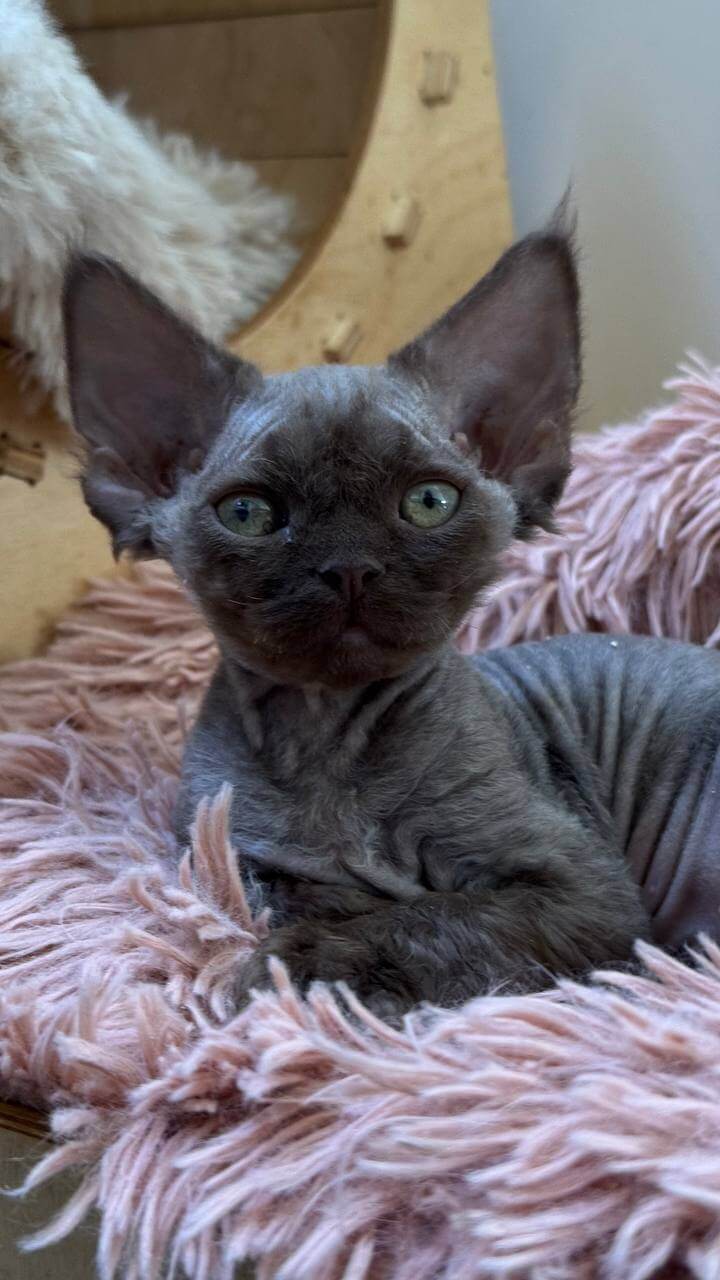 Devon Rex kittens like Linda are known for their clever curiosity and playful mischief. She’s the first to greet you at the door, chirping her welcome, then rubs her velvet ears against your cheek before darting off in a feathered sprint. When bedtime comes, Linda curls right against your heart, her paws gently kneading the comforter as if to say she’s exactly where she belongs.