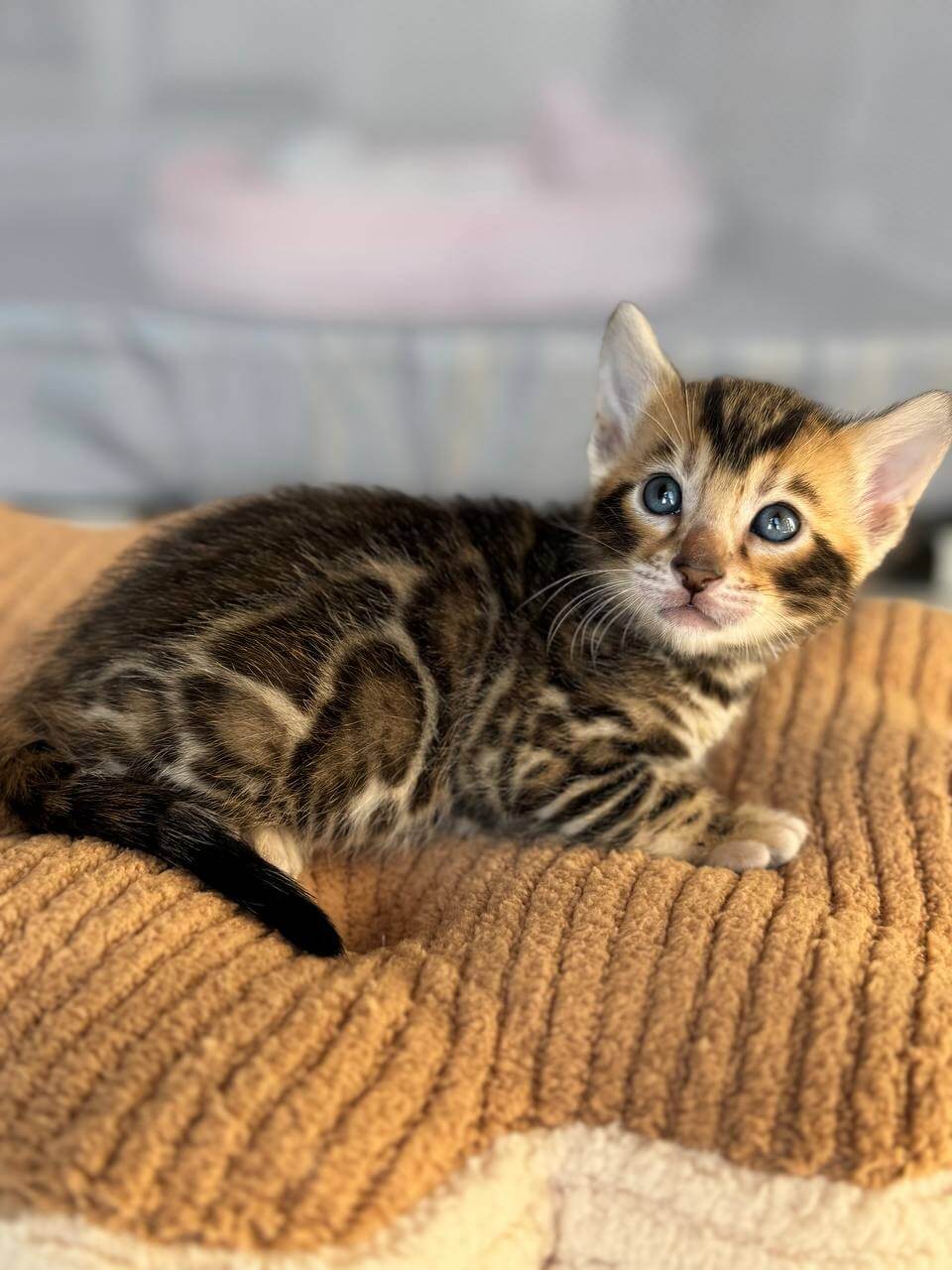 Meet Lionel—a heart-stealing brown spotted tabby boy whose golden-yellow eyes shine with endless curiosity and gentle warmth. The moment you scoop him up, you’ll feel his soft purrs melt all your worries away. Lionel is pure affection in motion—playful, loving, and always ready for a cozy cuddle or an adventure chasing sunbeams across your living room.